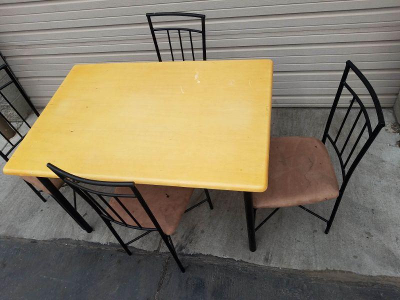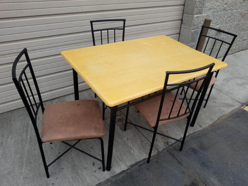 Table & 4 Chairs. Metal Legs, Wood Top, Fabric Seats. Needs Cleaning