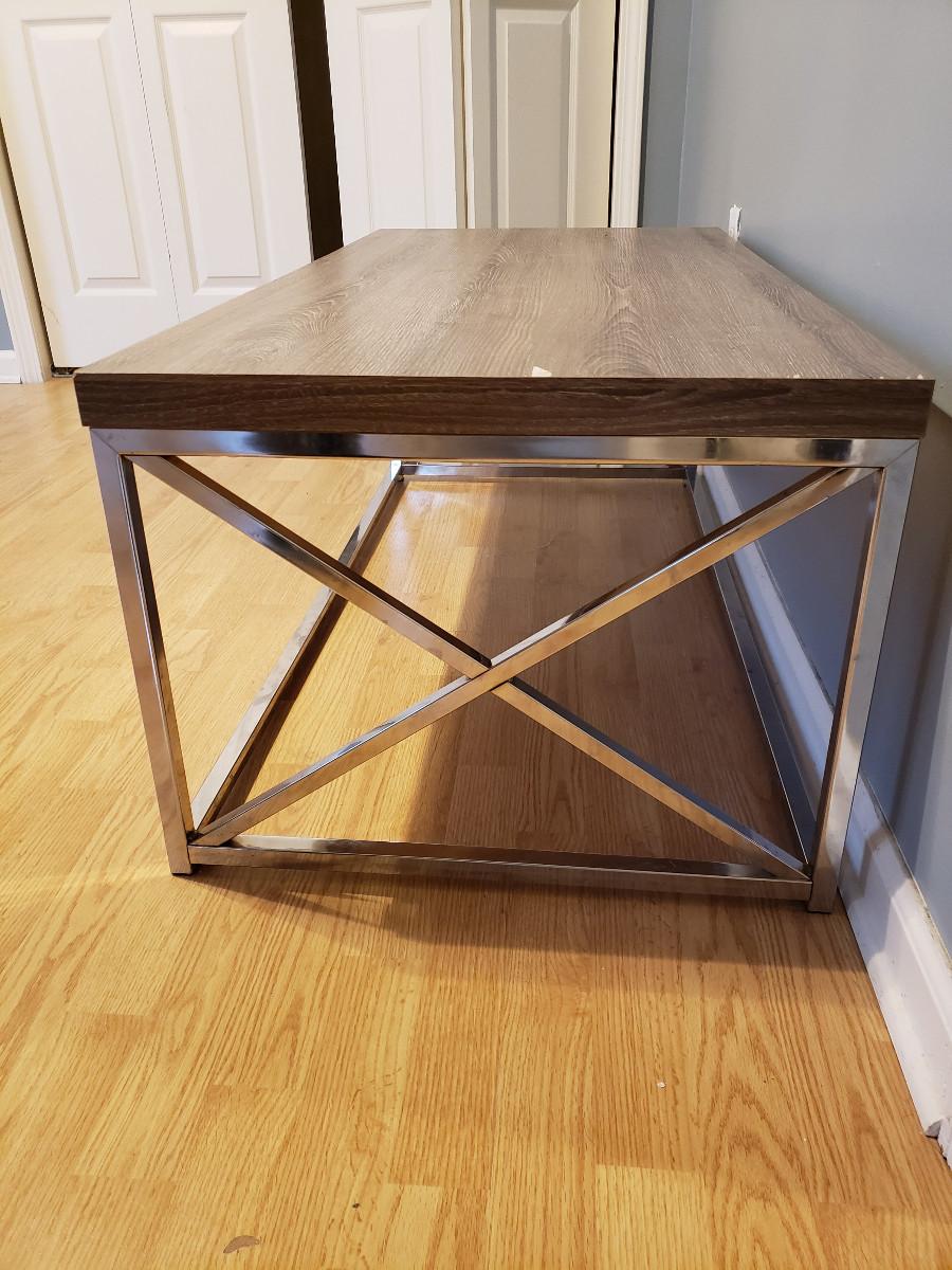 Measures 44 x 22 x 17 Metal frame with wood top. See photos for top imperfections