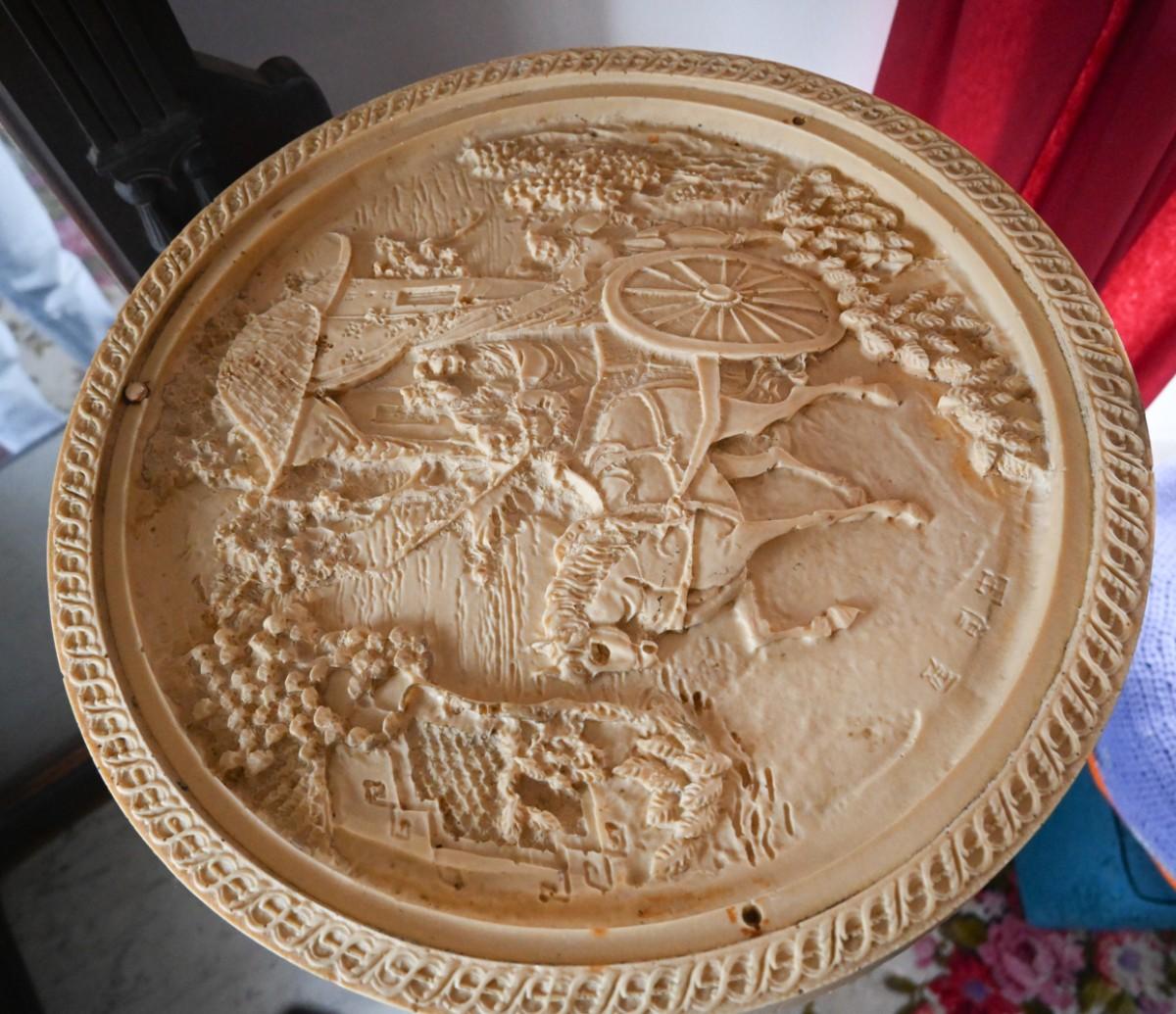 ELEPHANT AND LADIES COMPOSITE CARVED TABLE