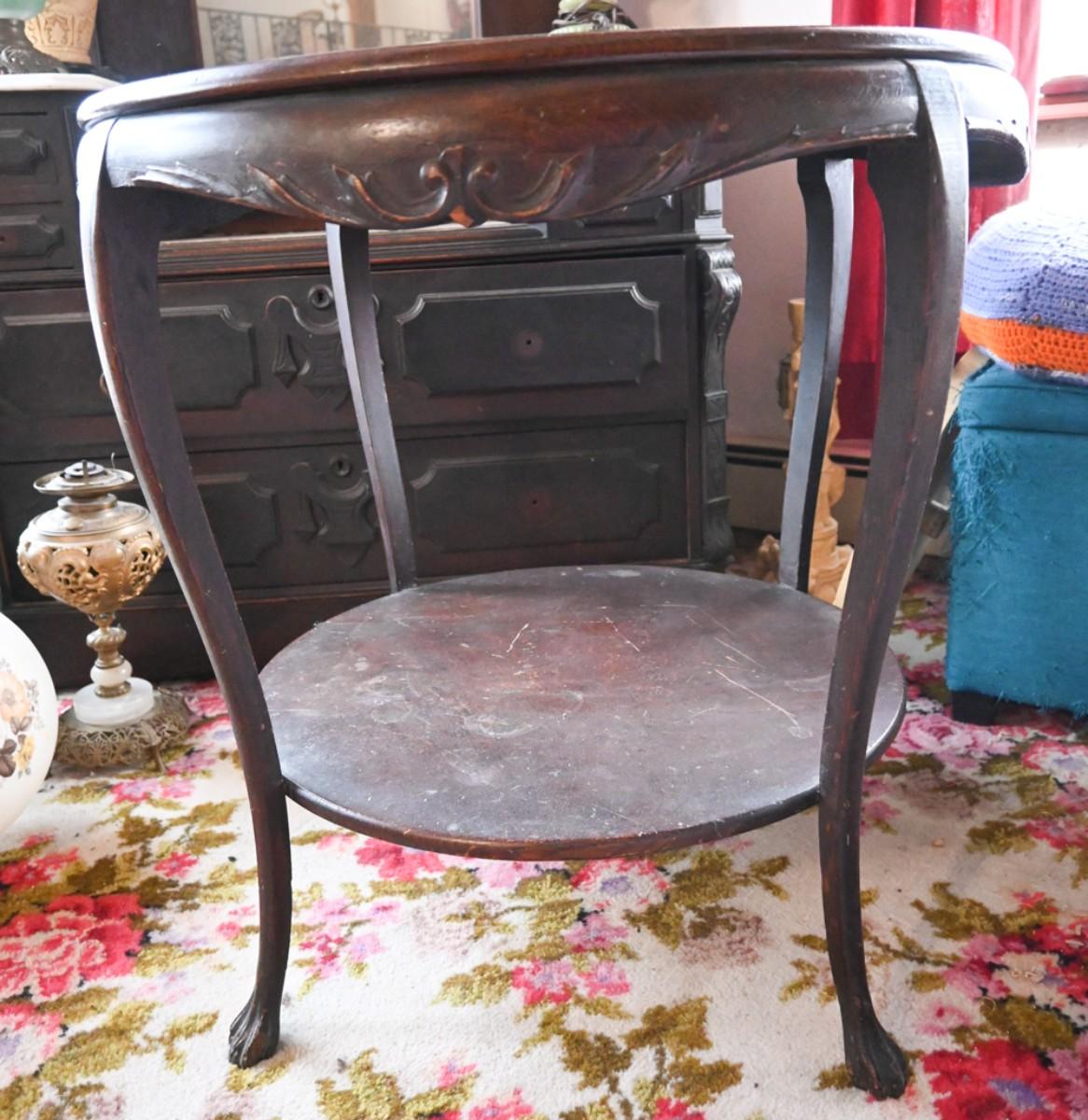 ROUND CLAWFOOT PARLOR TABLE WITH SHELF