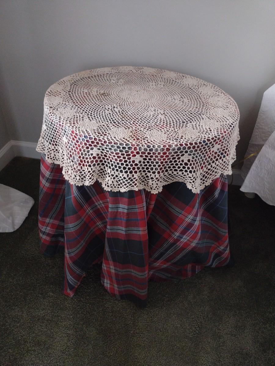 Chip Board Round Table with Second Lower Shelf upstairs item
