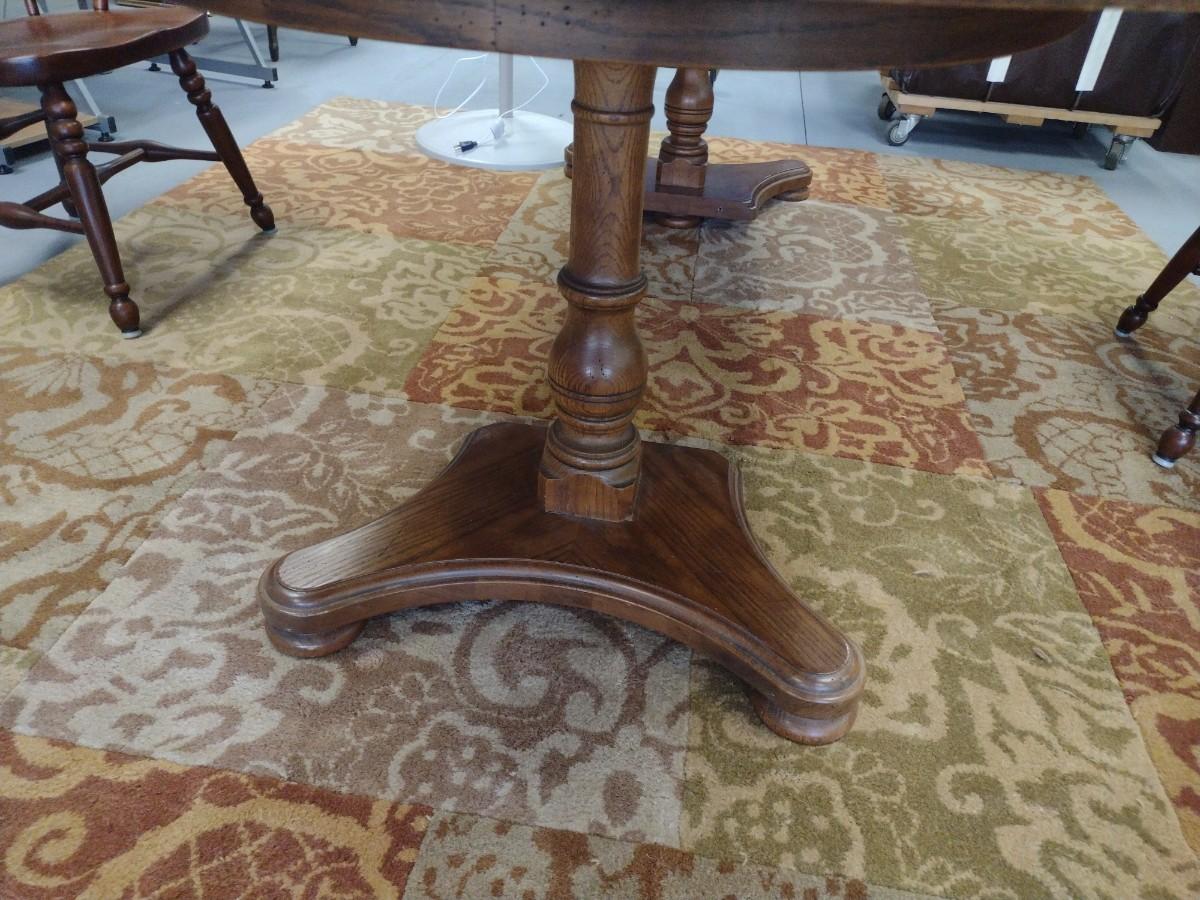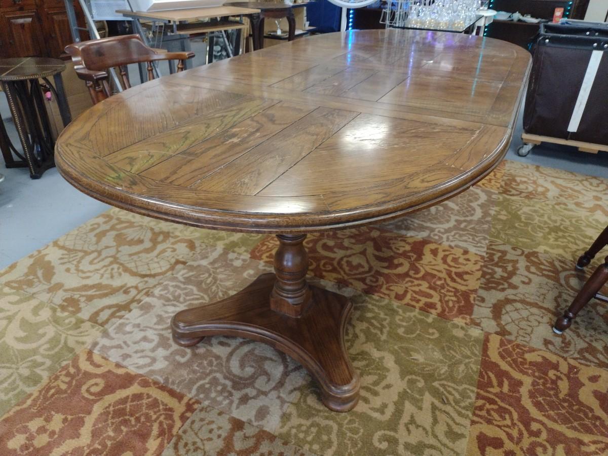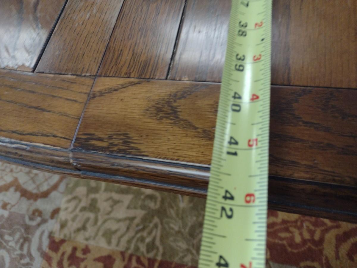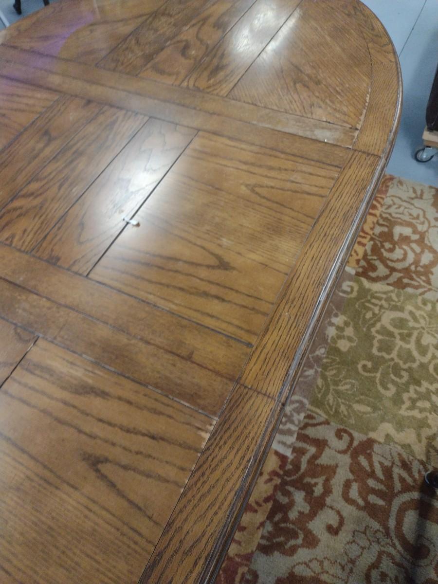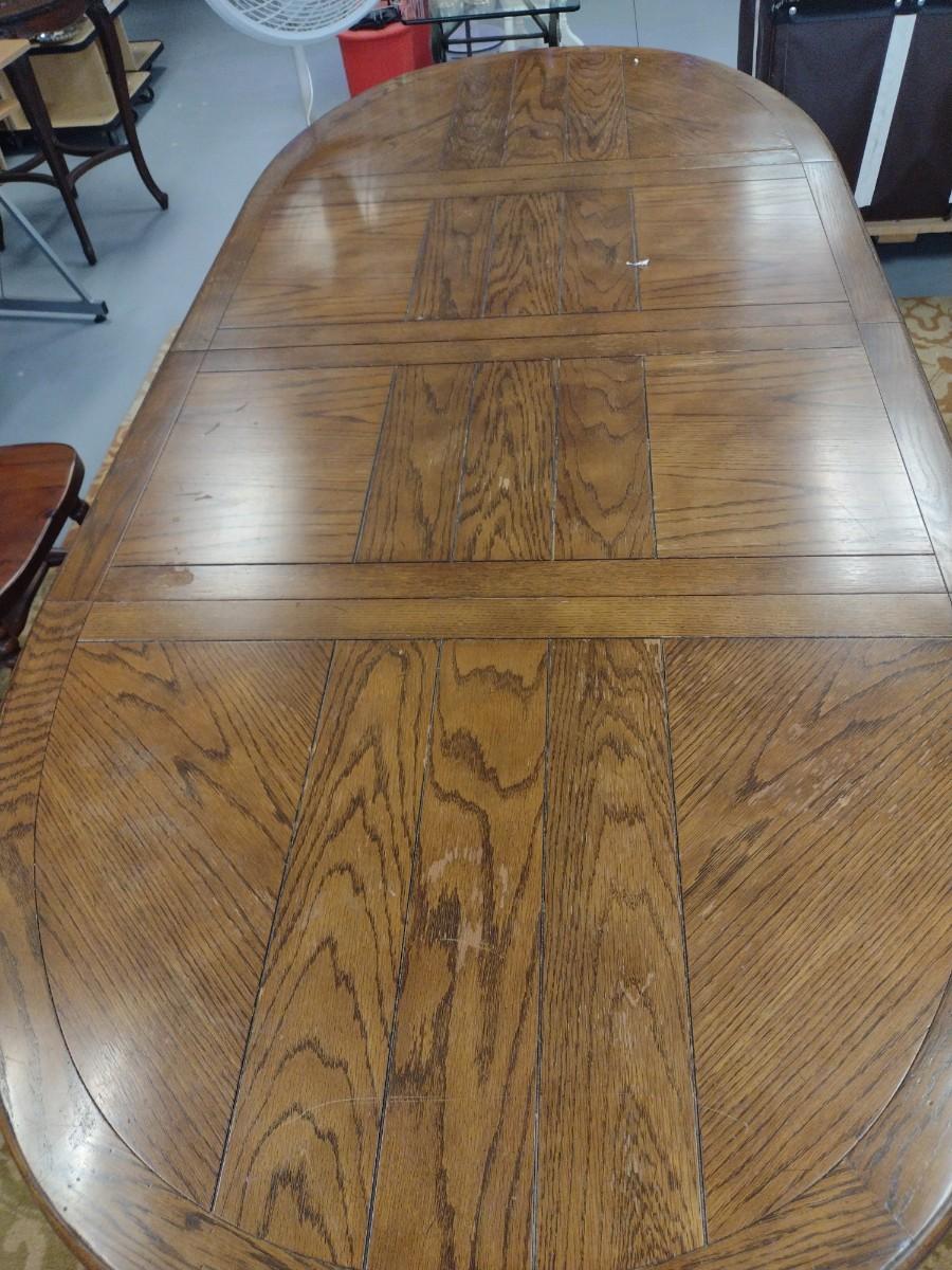 Walnut Finish Dining Table with Two Leaf Inserts may have wear of scratches to finish