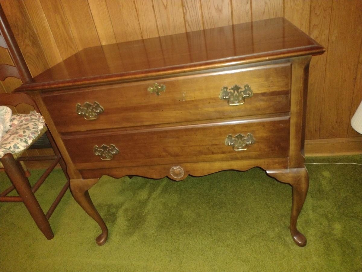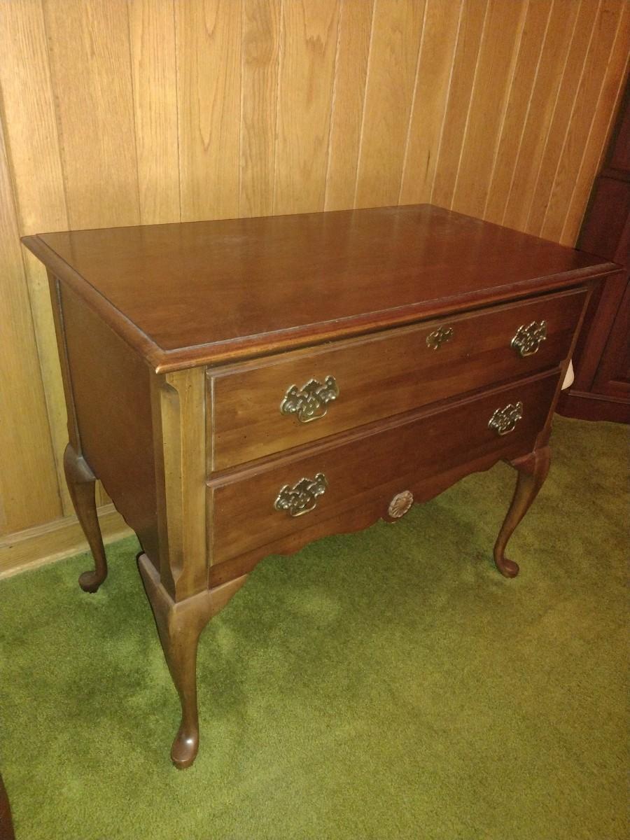 Vintage Queen Ann Style Solid Wood Cherry Double Drawer Cupboard