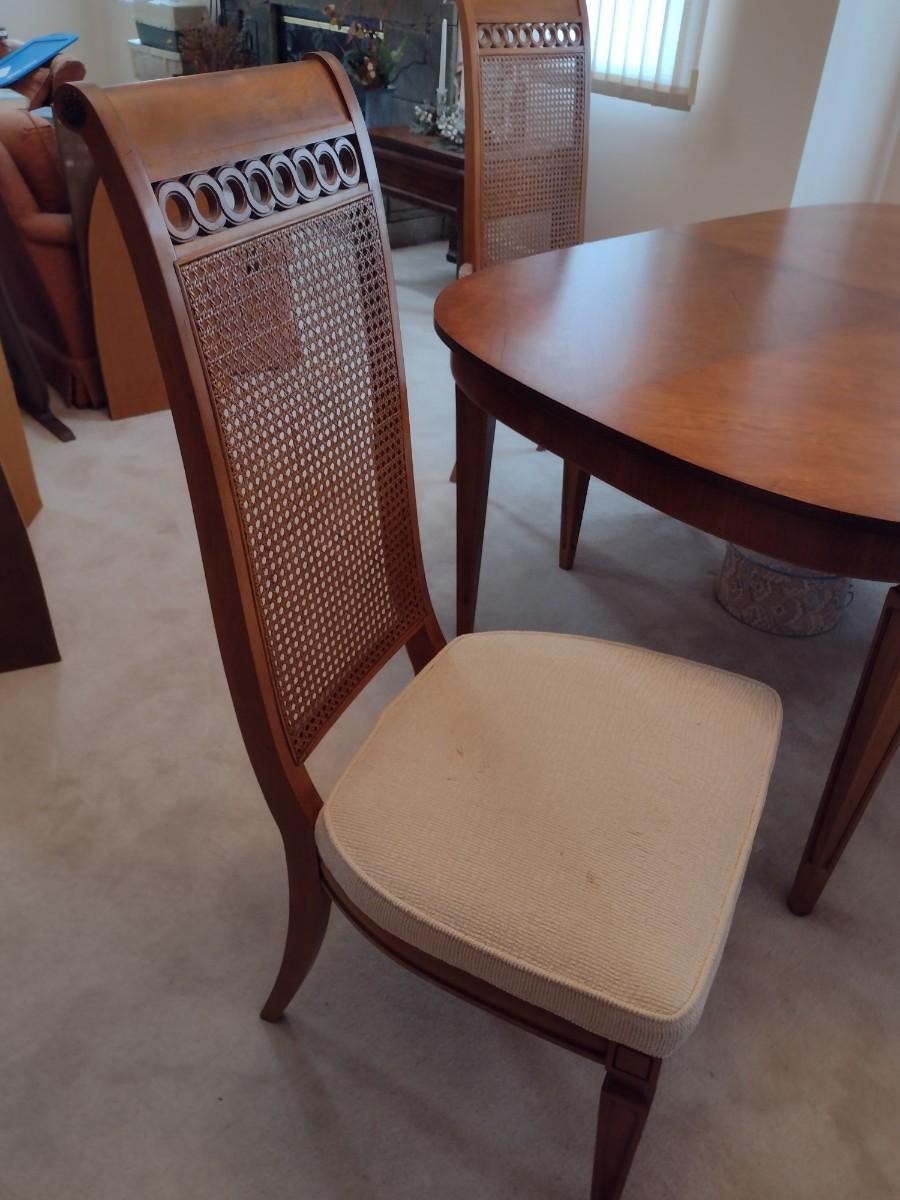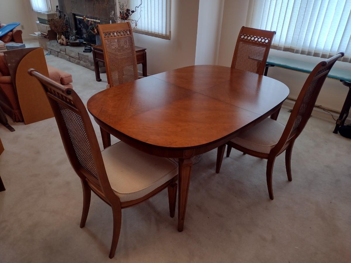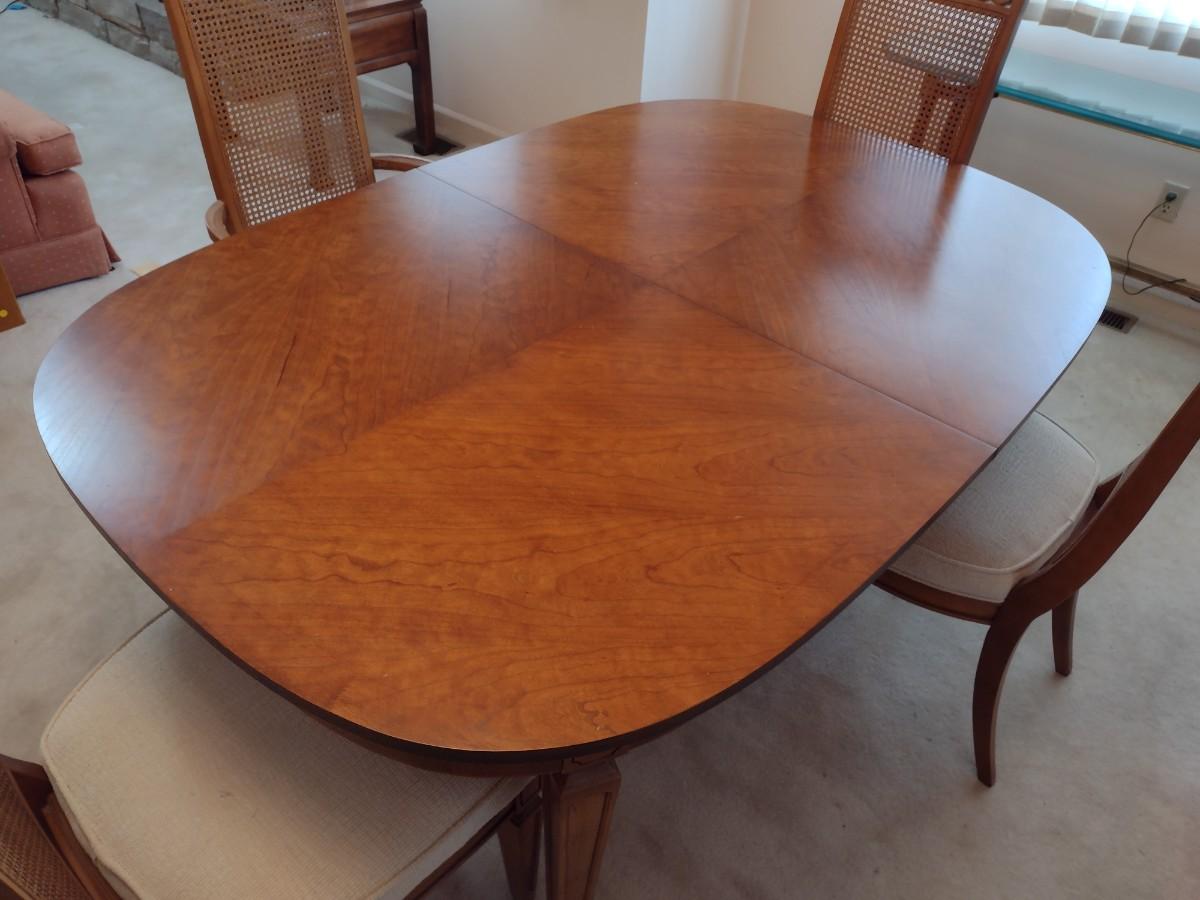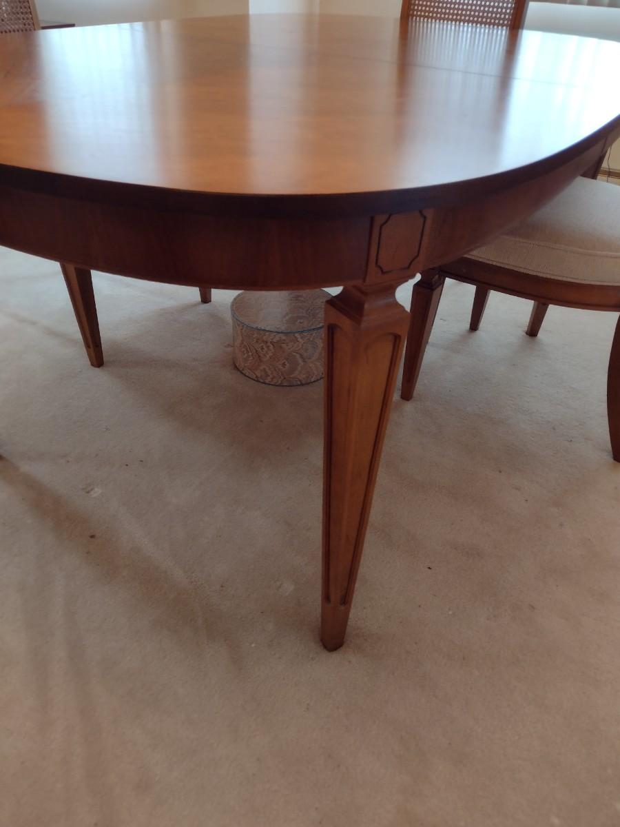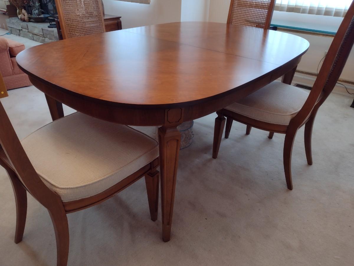 Walnut Solid Wood Thomasville Table with Six Matching Chairs includes Two Leaves
