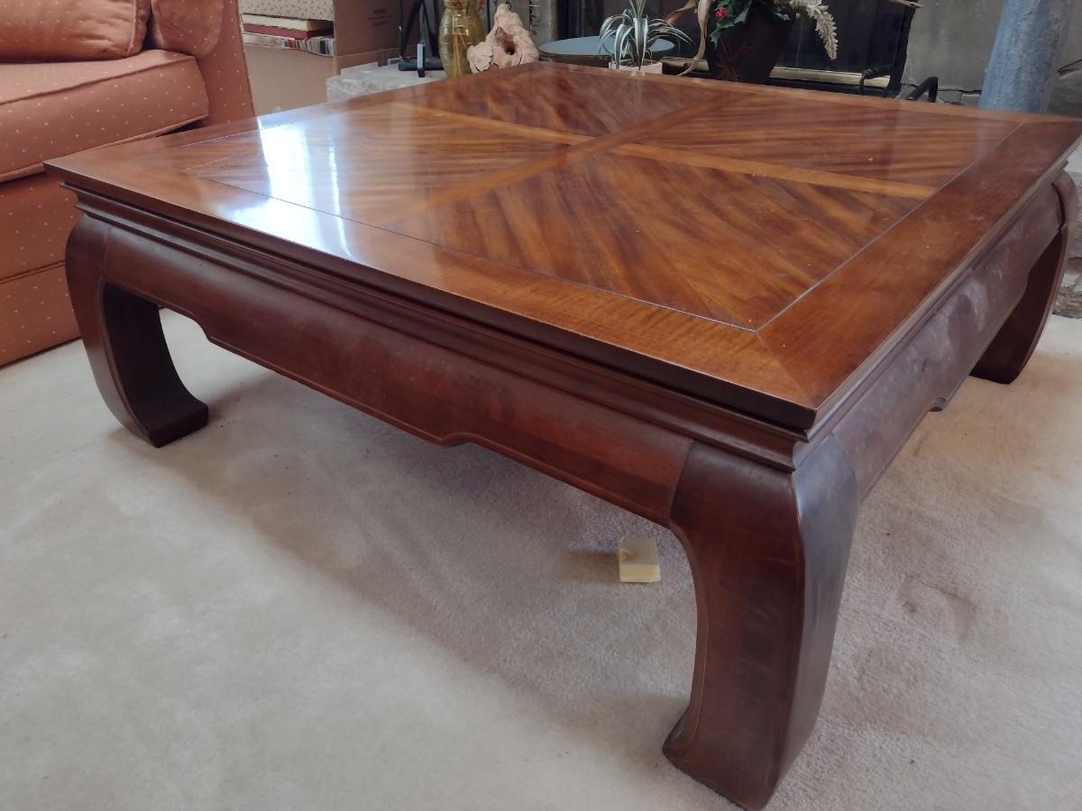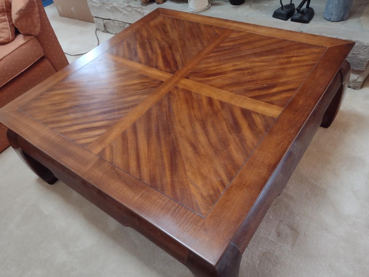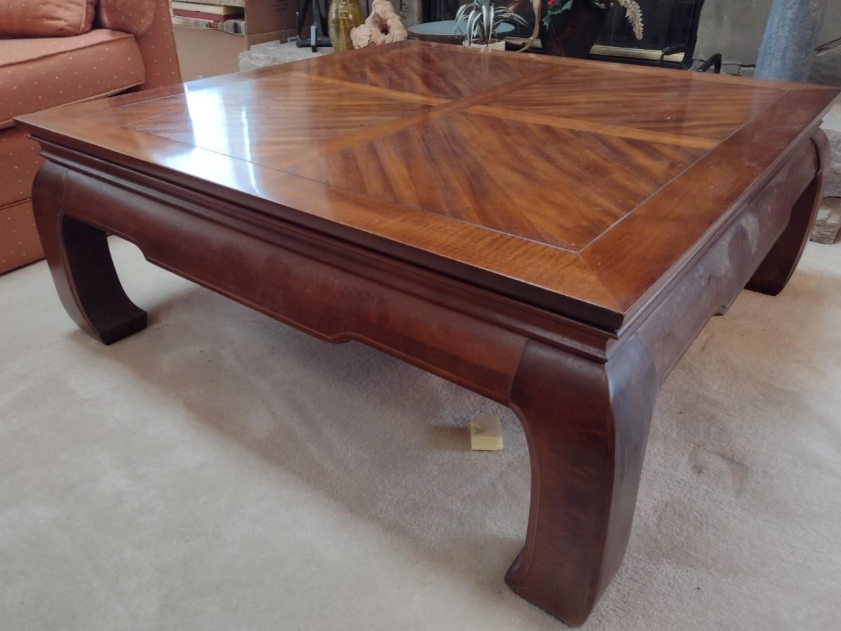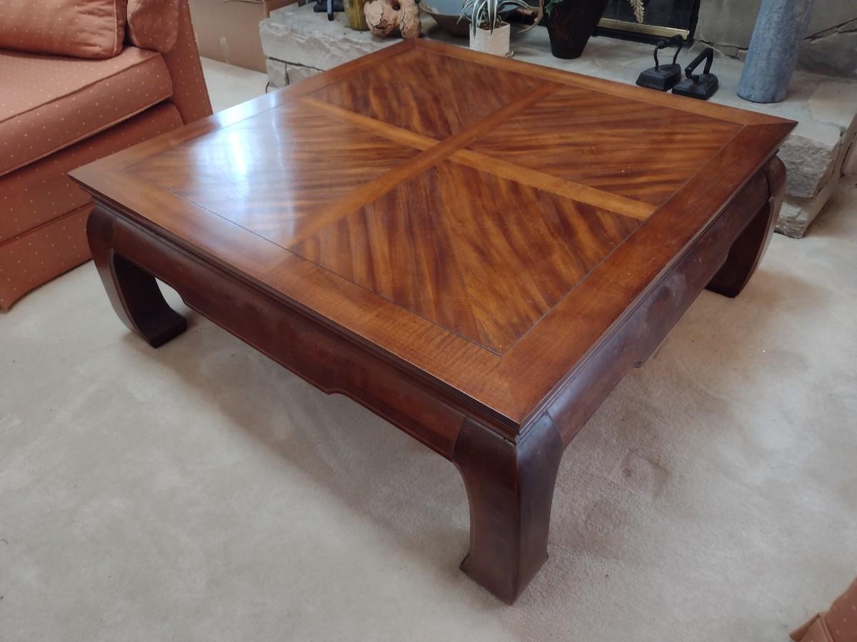 Solid Wood Coffee Table by Hammary. Measures approximately 40" square, 16" tall.