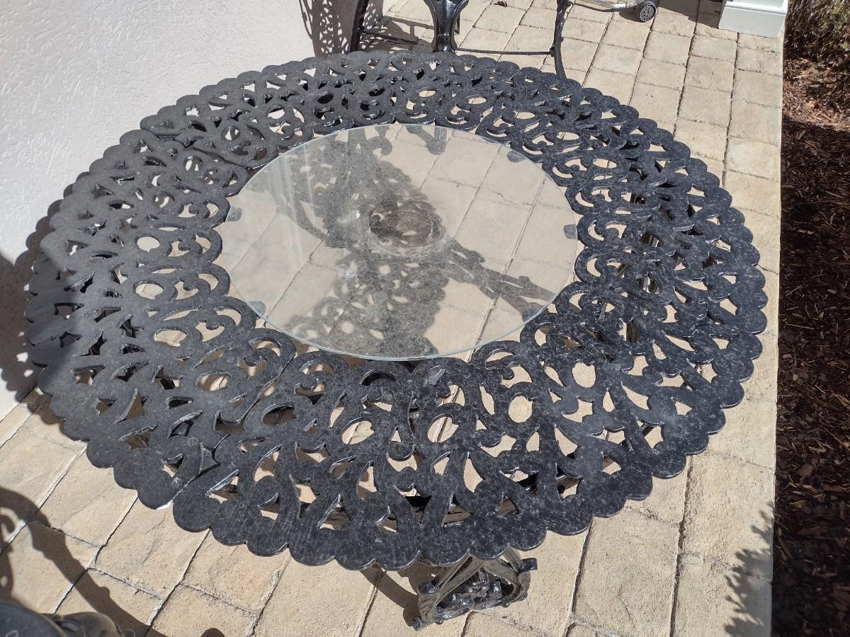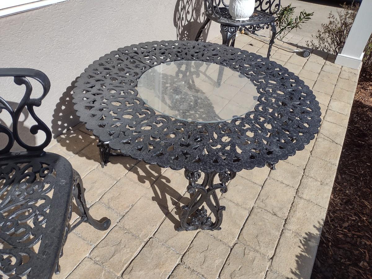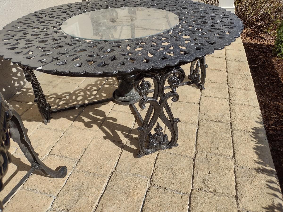 Cast Metal Patio or Garden Table with Glass Center Insert