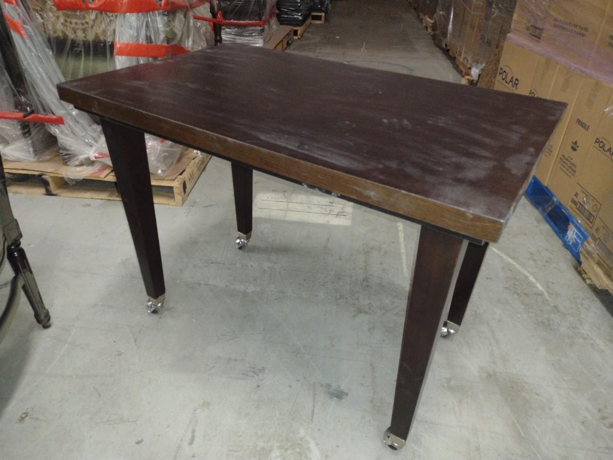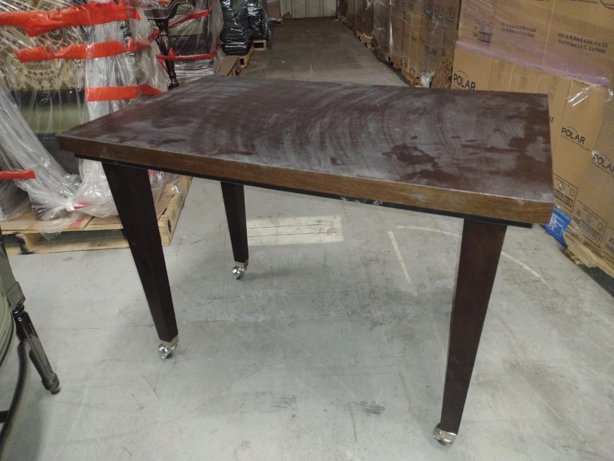 Wood Finish Table on Castors Shipping option via freight or local mover is Buyer's responsibility and expense. Buyer must have all shipping scheduled within the stated dates and times of pickup. Recommended local movers are Beaty Bros. Moving 828-201-2982 and Carolina Pack n Go 828-489-9773