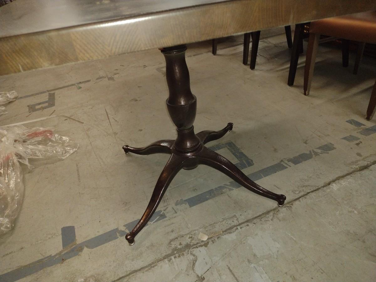 Solid Wood Four Top Dining Table with Cast Base Shipping option via freight or local mover is Buyer's responsibility and expense. Buyer must have all shipping scheduled within the stated dates and times of pickup. Recommended local movers are Beaty Bros. Moving 828-201-2982 and Carolina Pack n Go 828-489-9773.