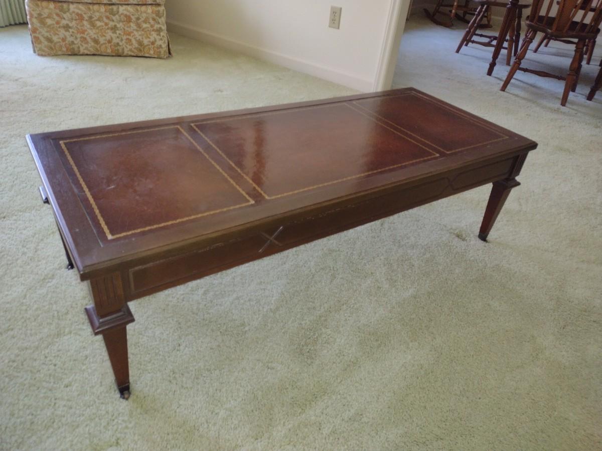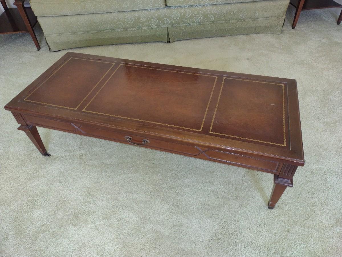 Mid Century Mersman Coffee Table with Leather Inlaid Top