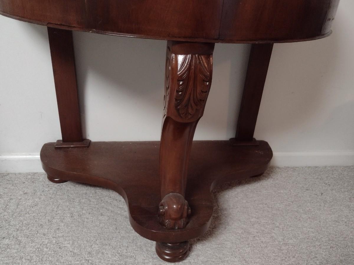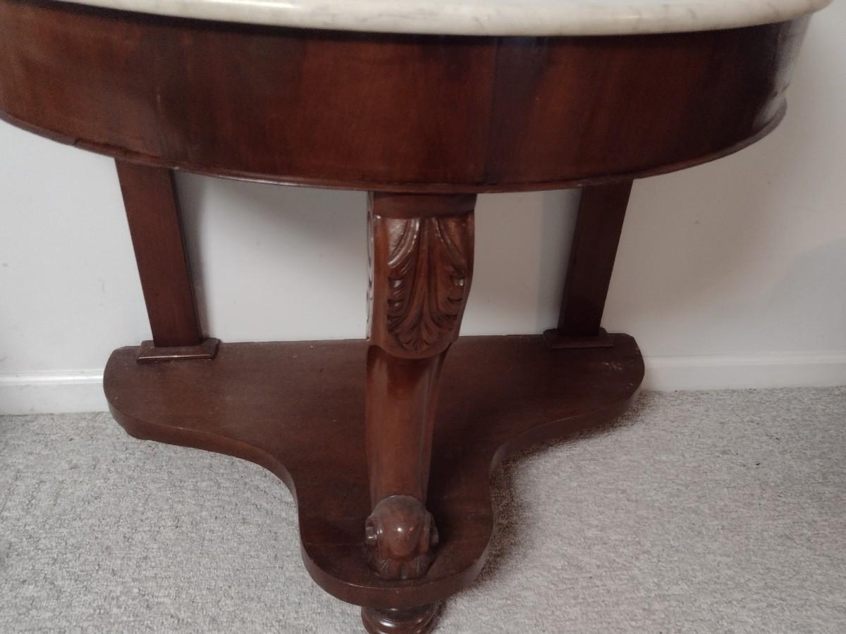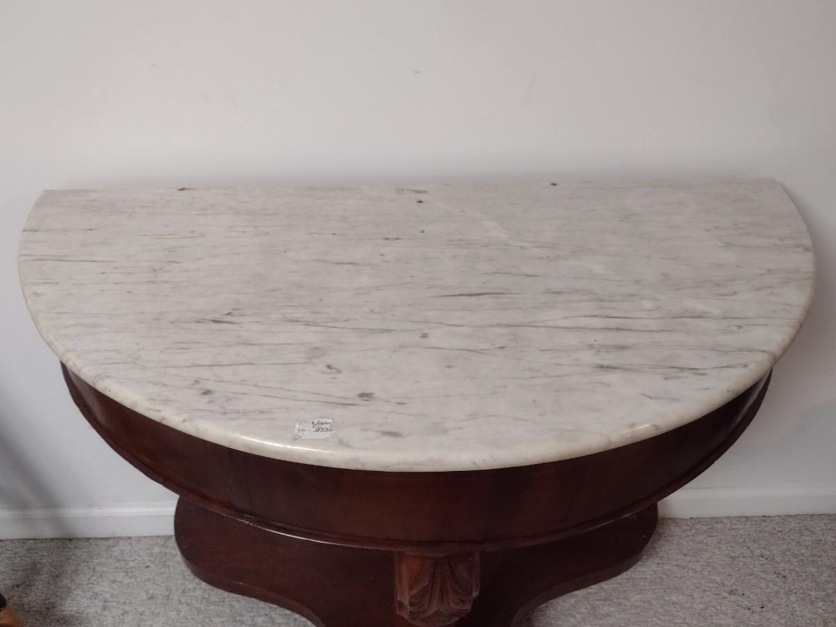 Vintage Mahogany Finish Demilune Marble Top Table