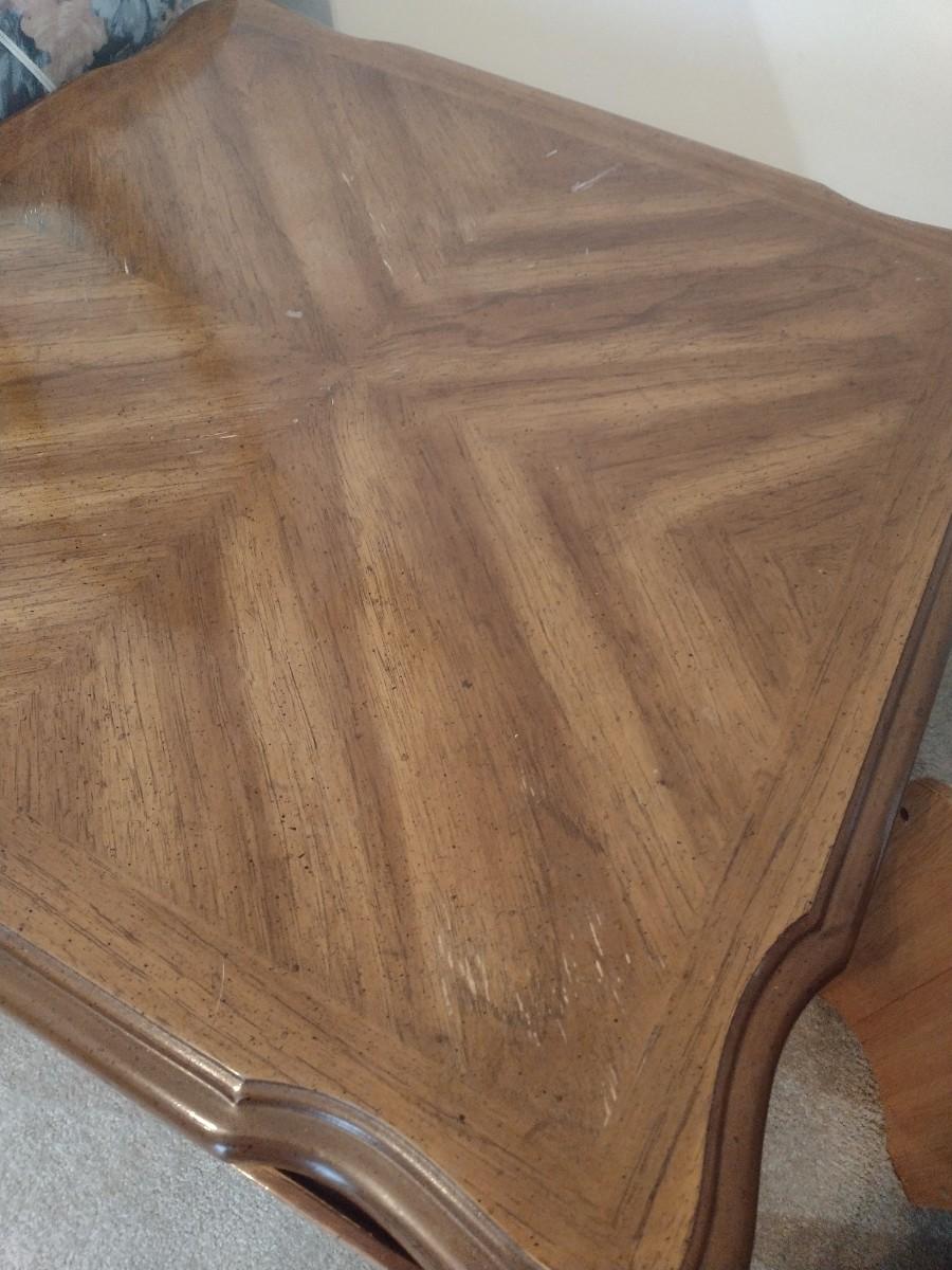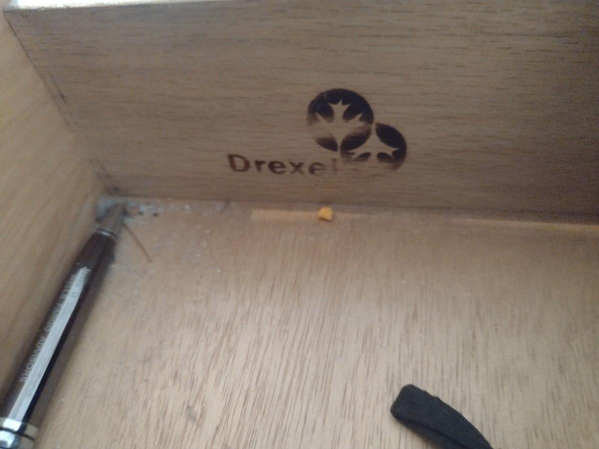 Drexel Wood Finish Single Drawer Lamp Table Choice B has some markings to the finish as shown. Main level