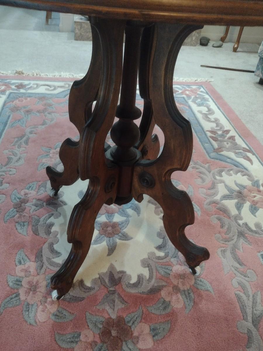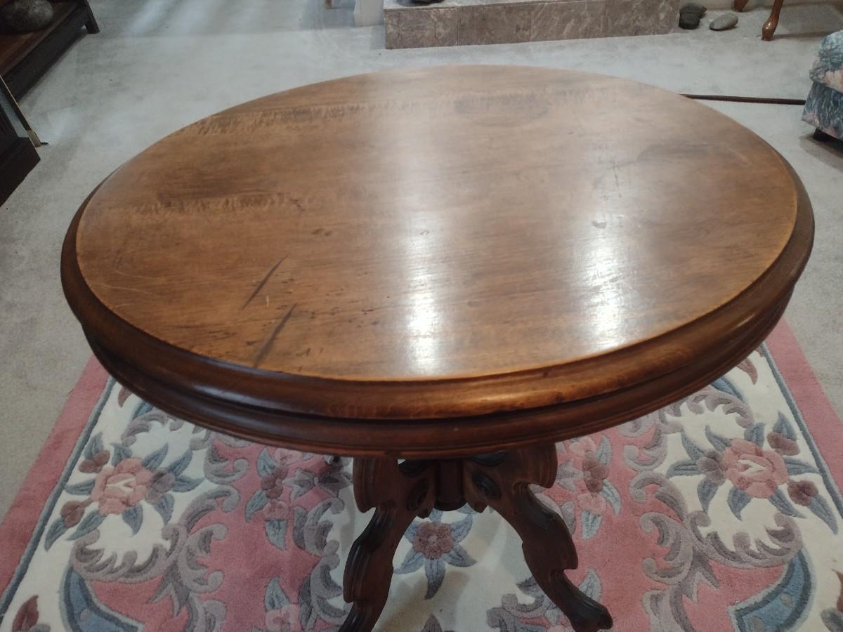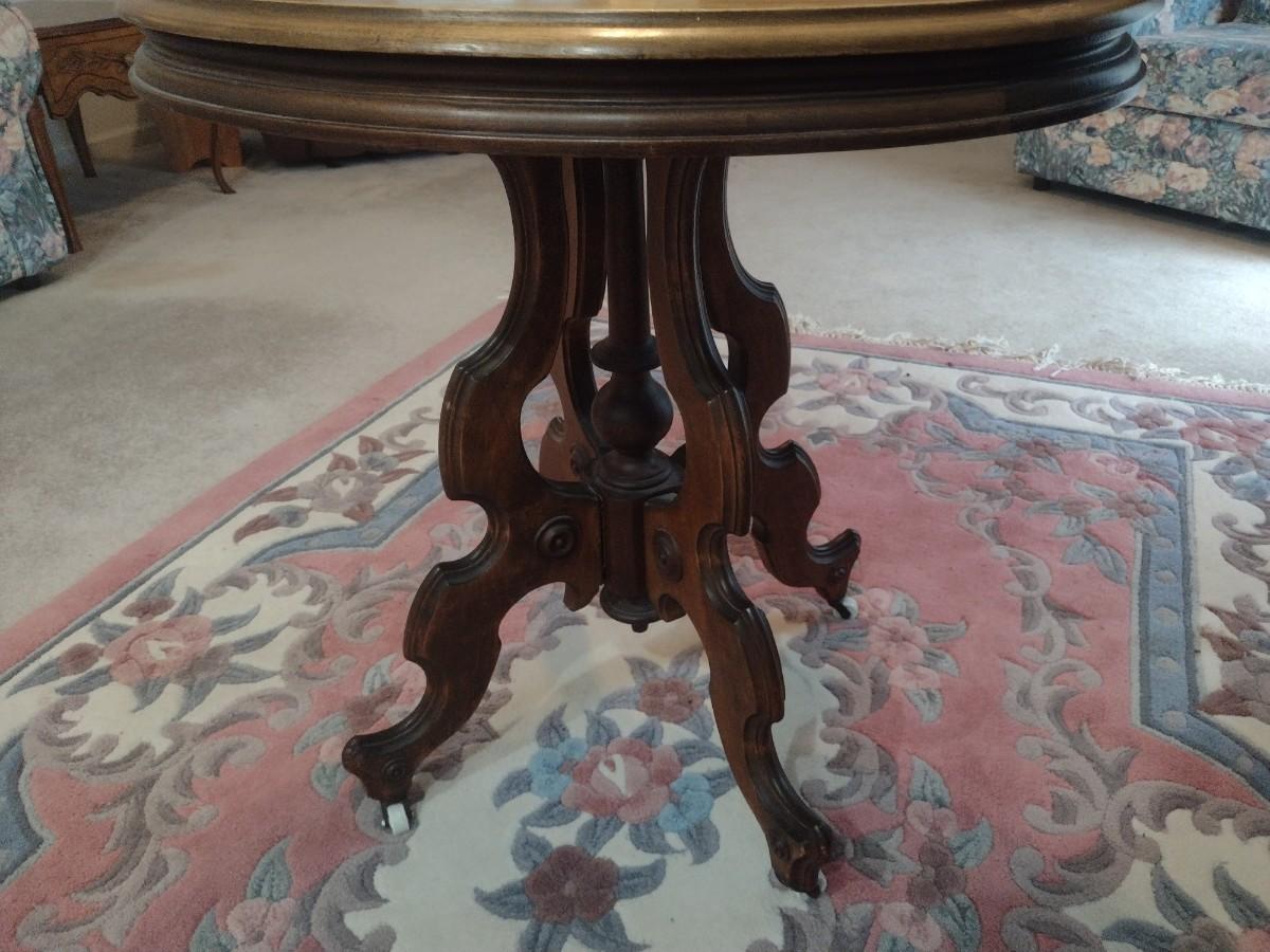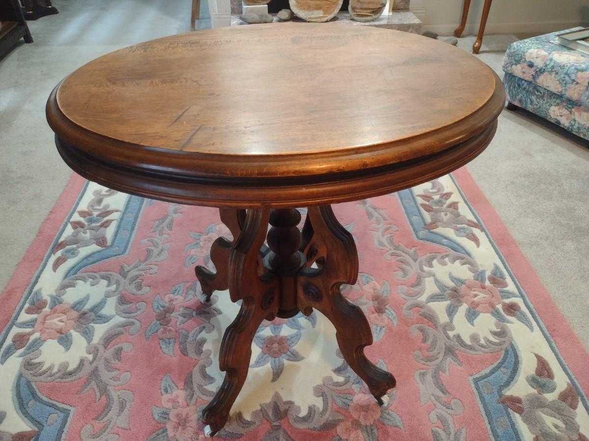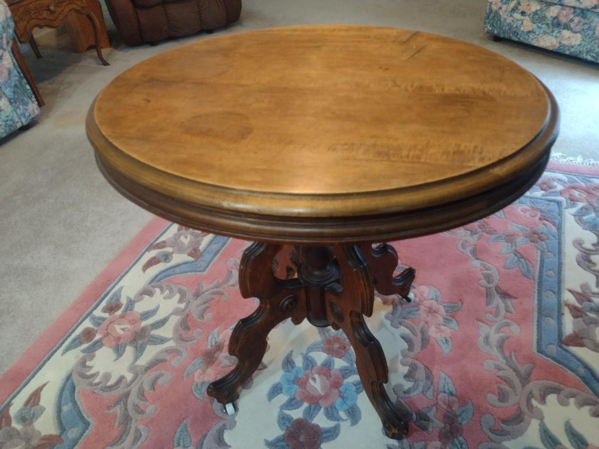 Vintage Solid Wood Walnut Eastlake Design Round Accent Table main level