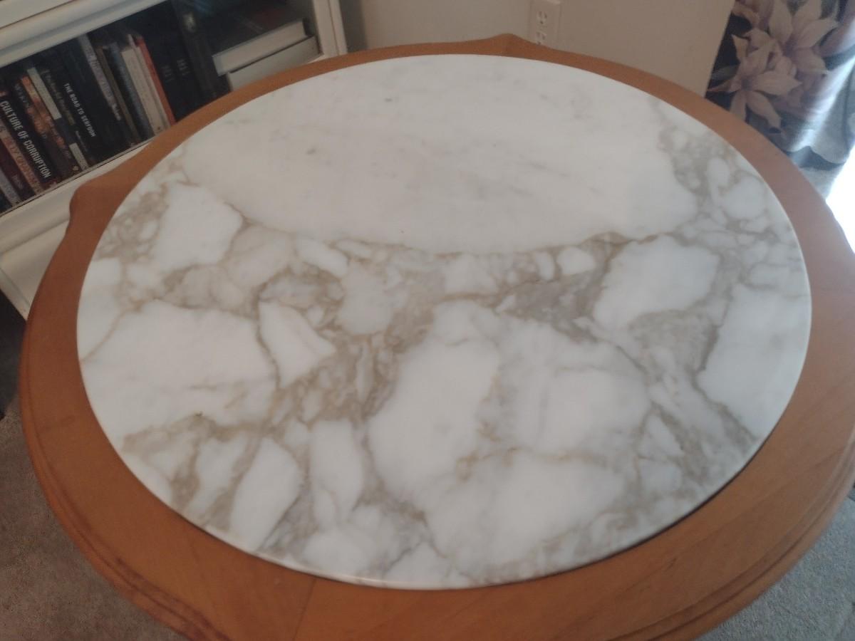 Walnut Finish Solid Wood Marble Top Side Table
