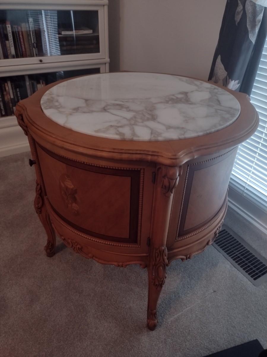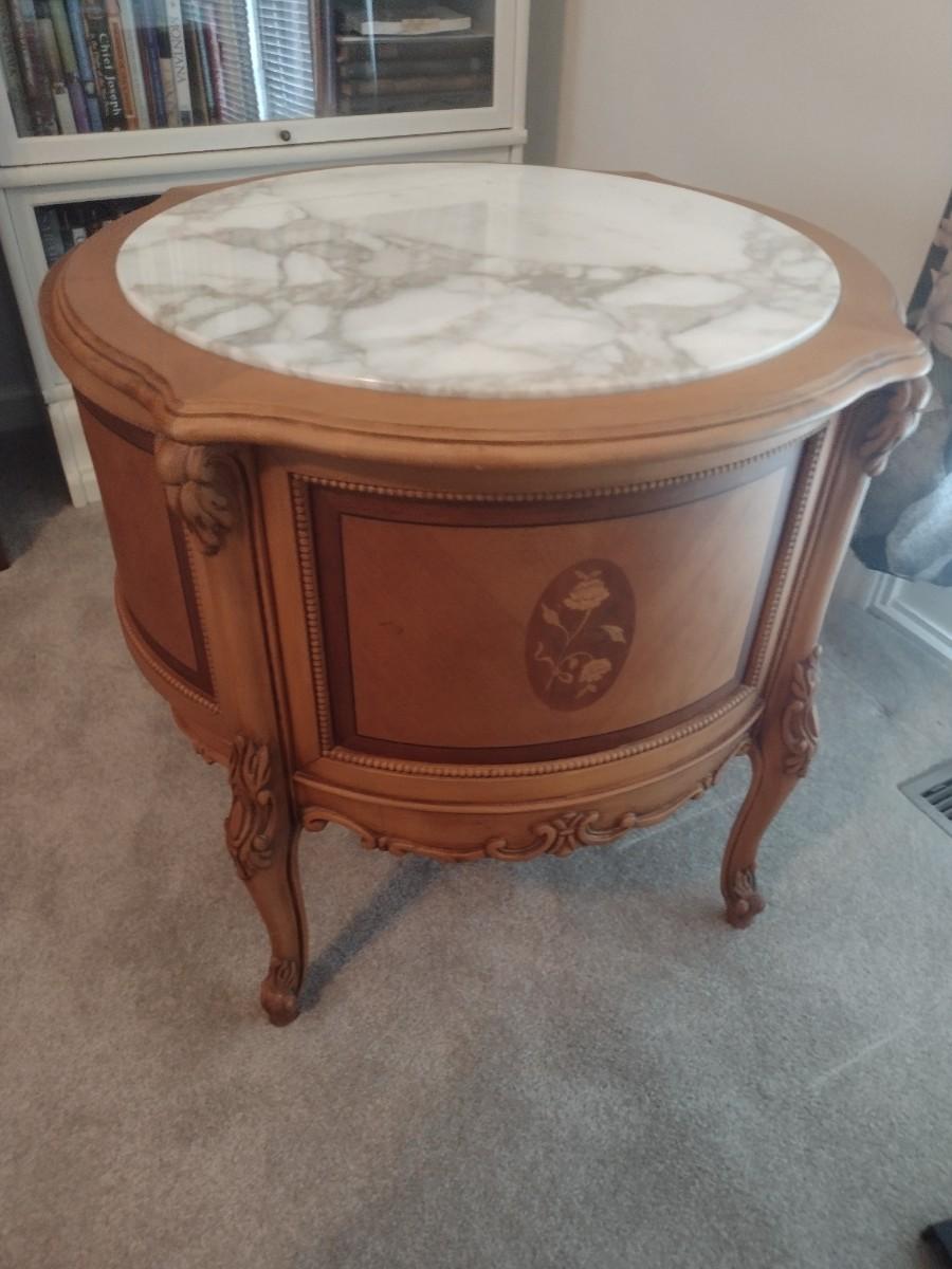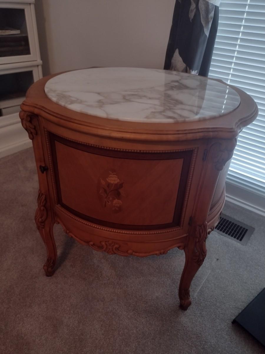 Walnut Finish Solid Wood Marble Top Side Table main level