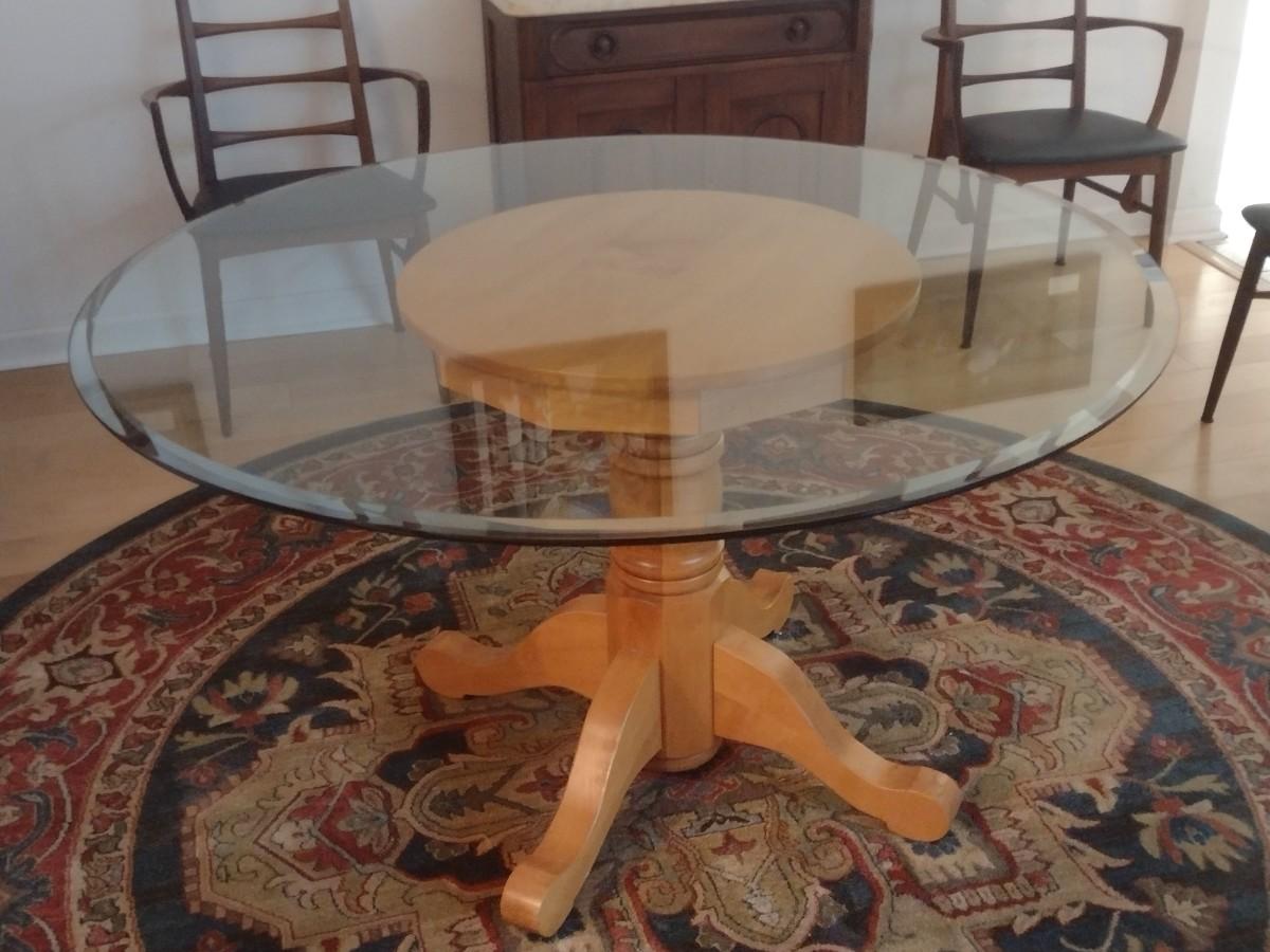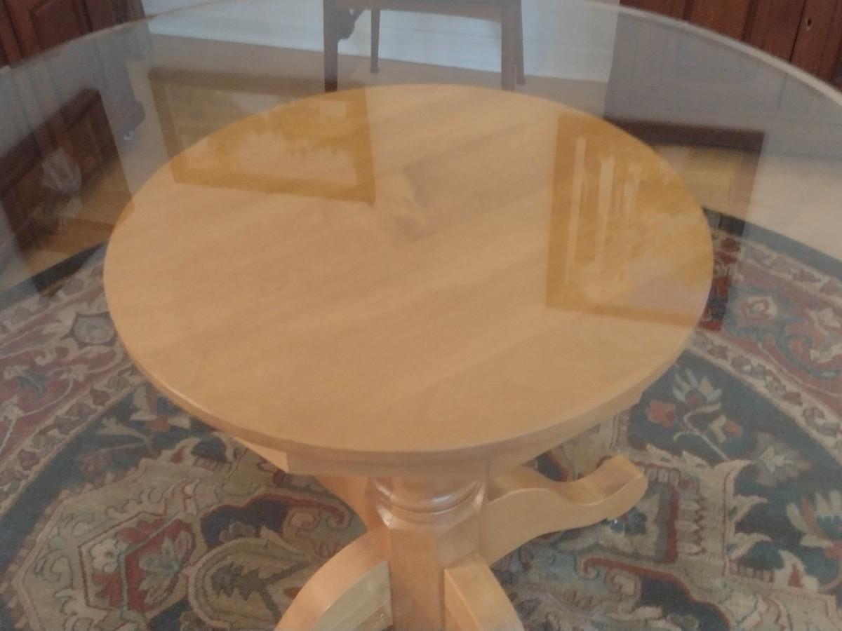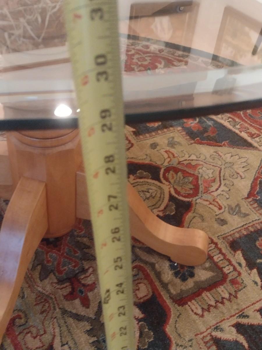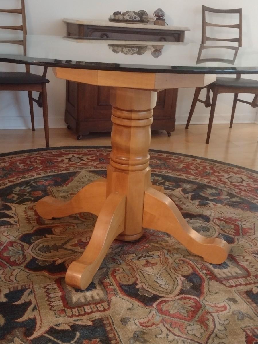 Wooden Pedestal Table with Glass Top