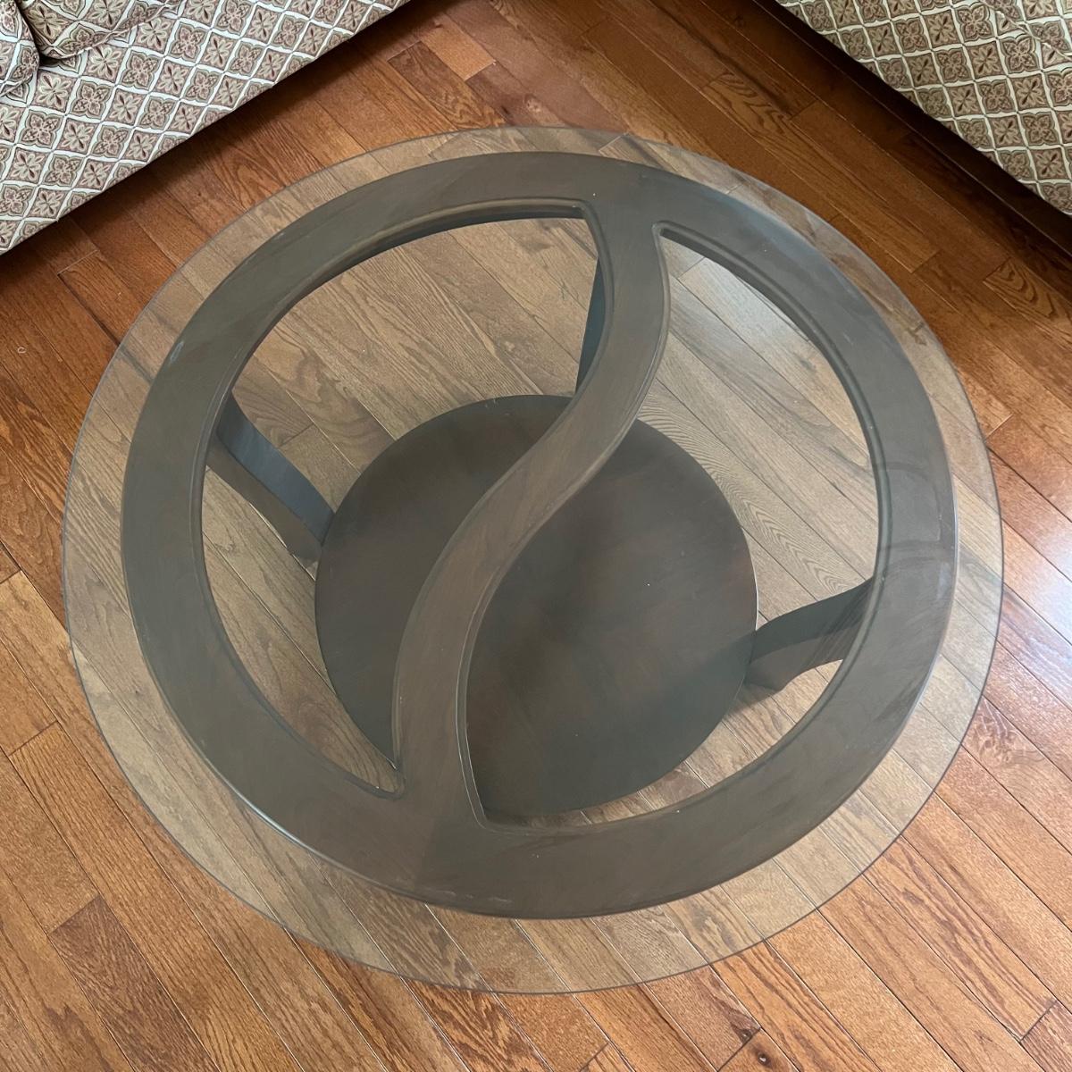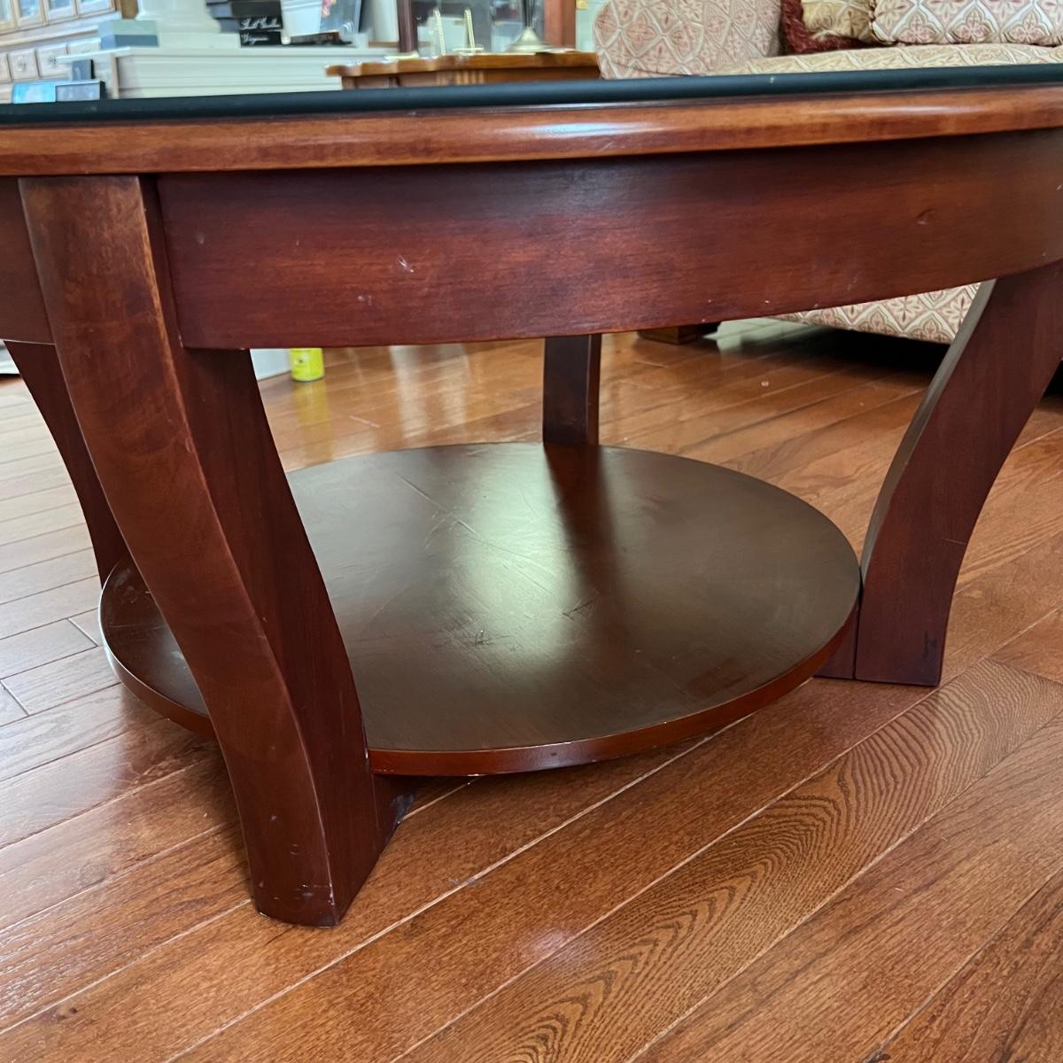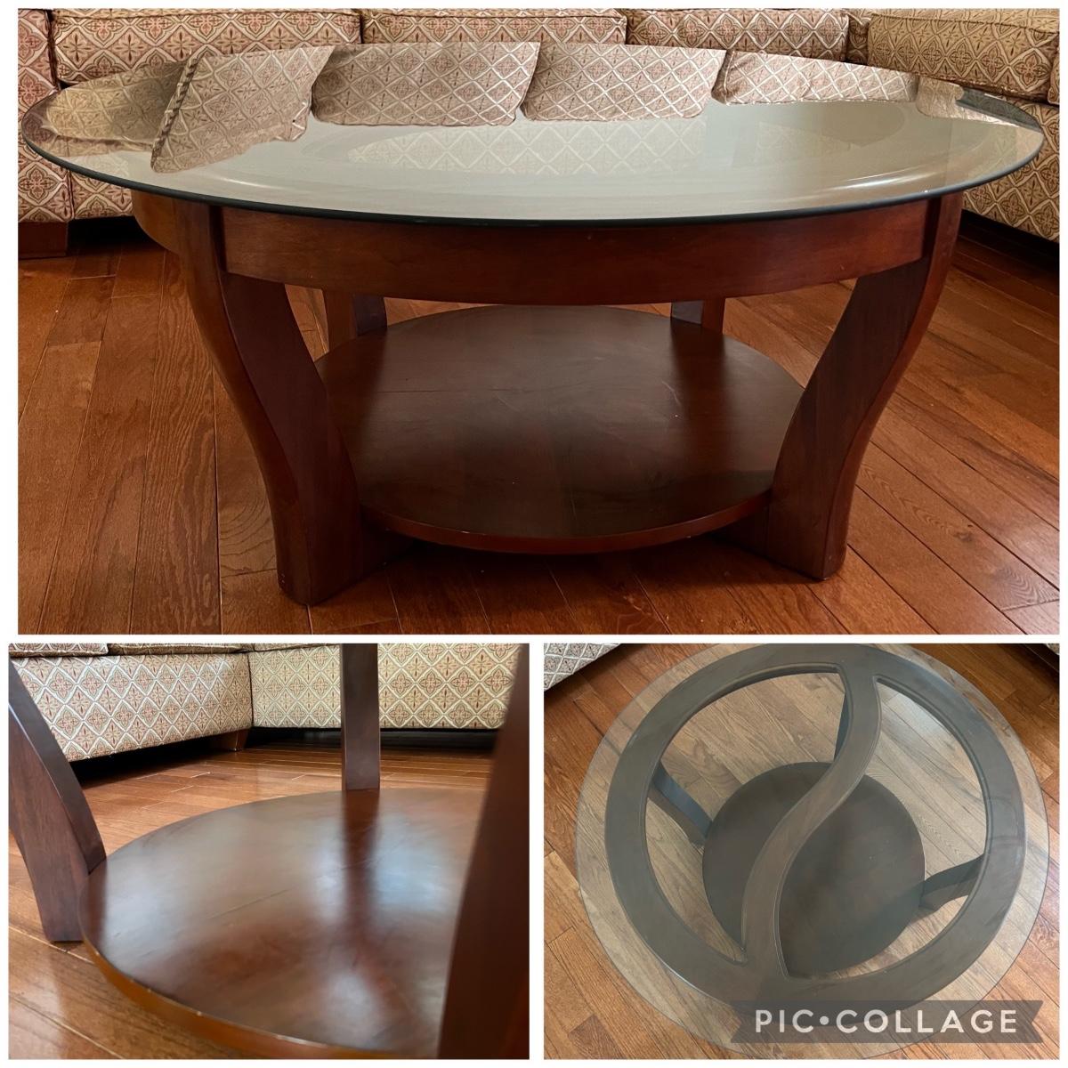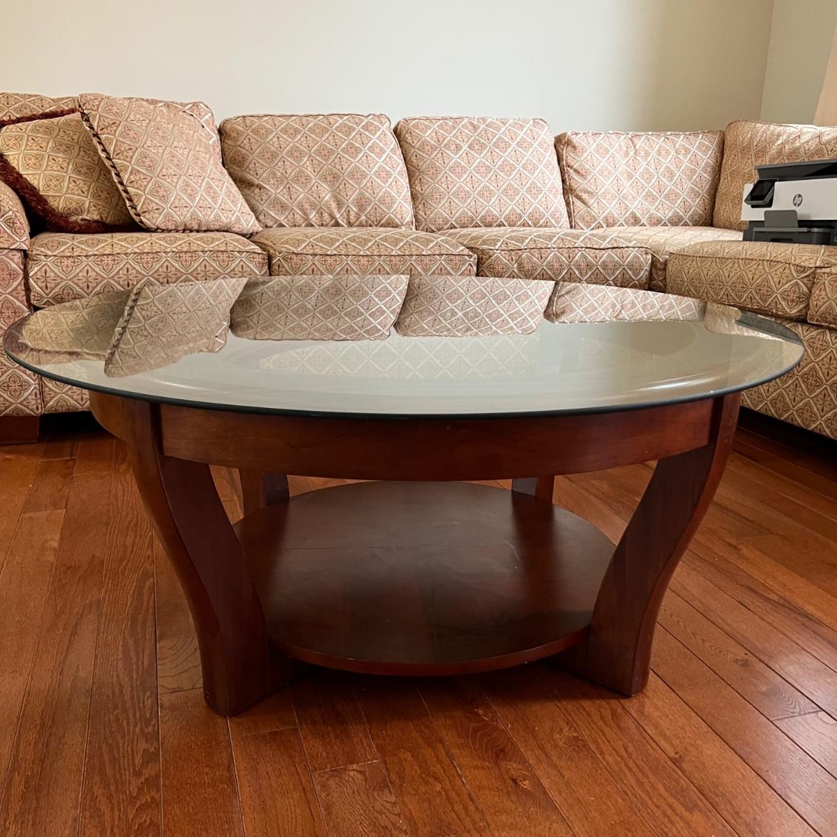 Round Glass Top Wooden Coffee Table