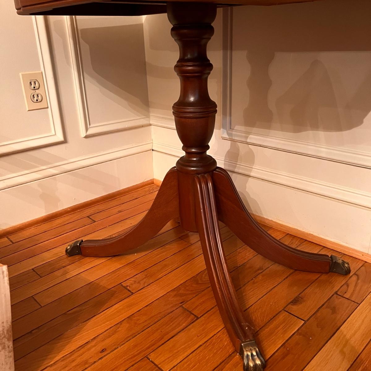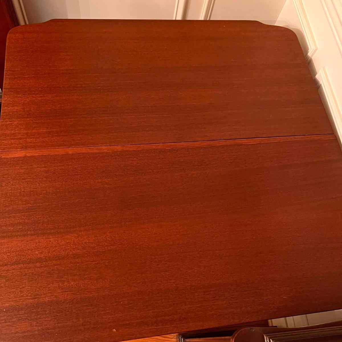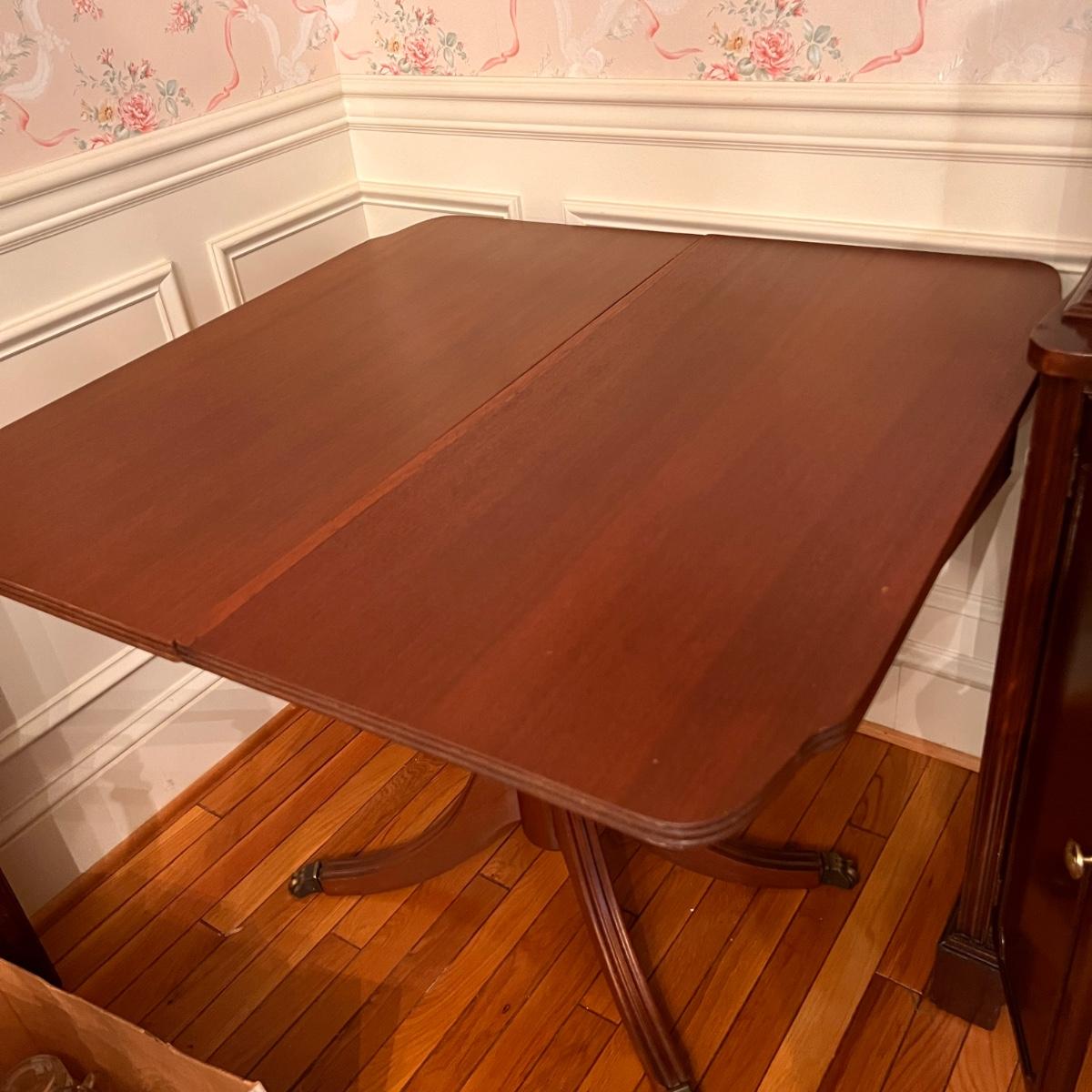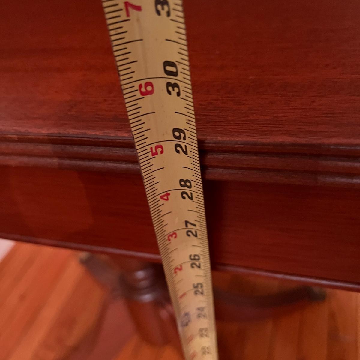 Solid wood game table / tea table with brass claw castors. It has a swivel top that opens to double its size. It measures 29" tall, is 18" deep and 36" wide when closed. Opened its a 36" diameter square. In good condition. Has a mark as shown in second to last picture.