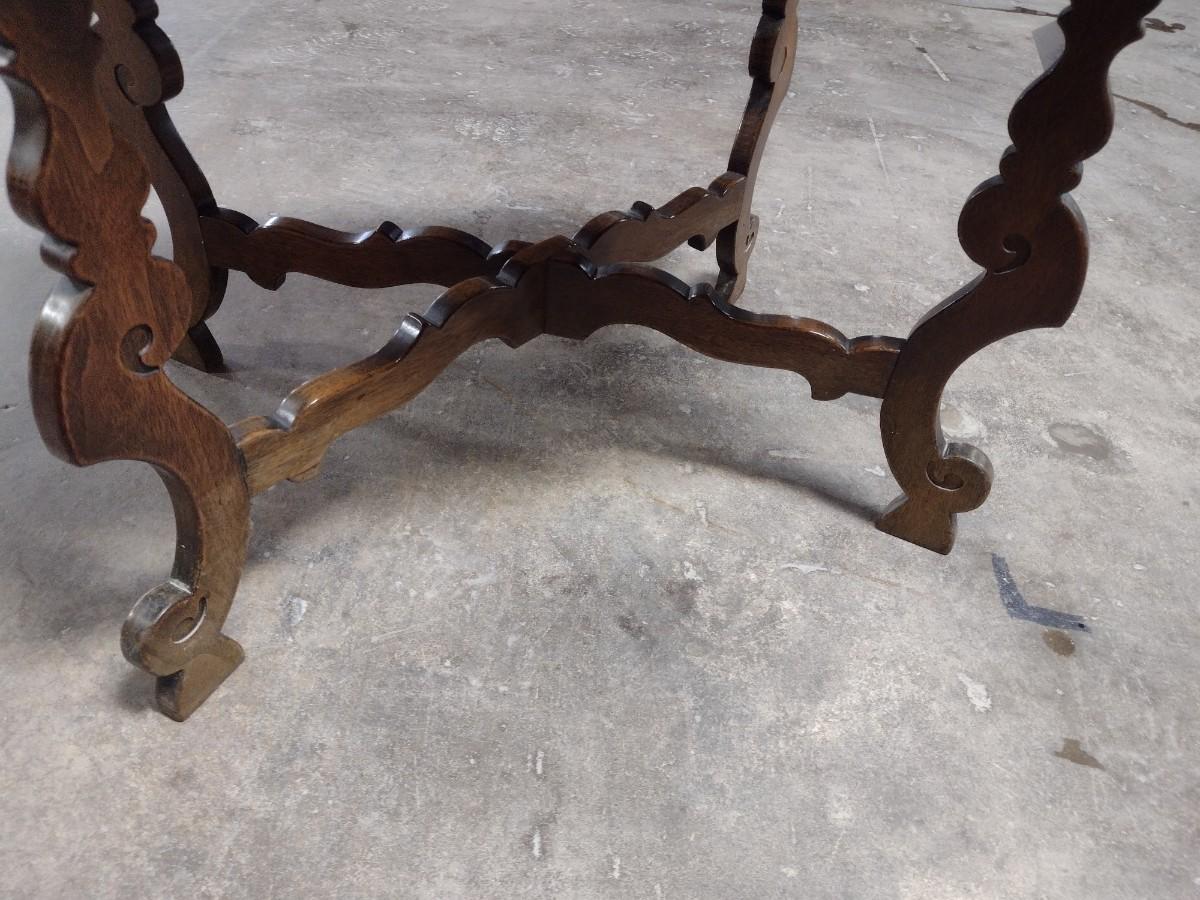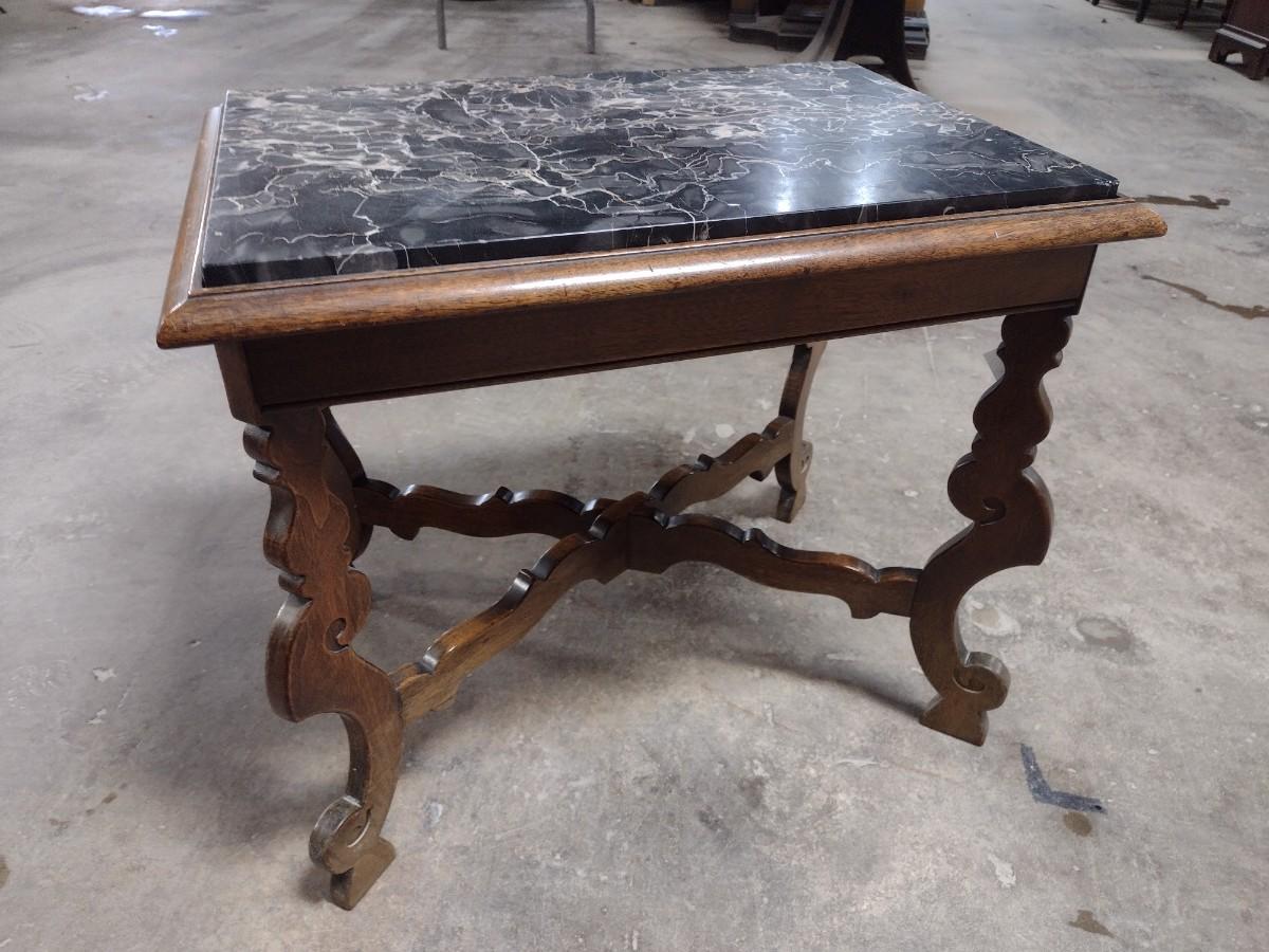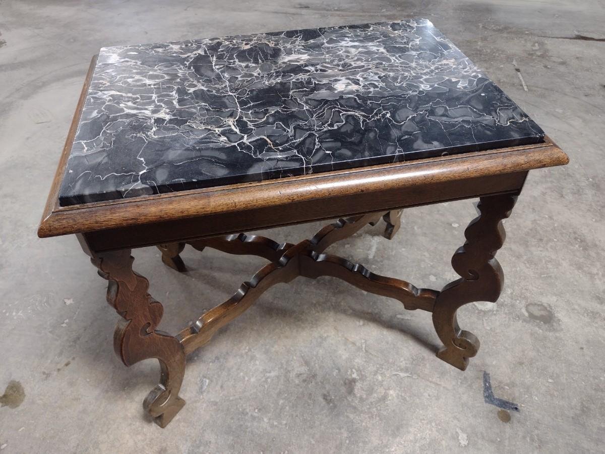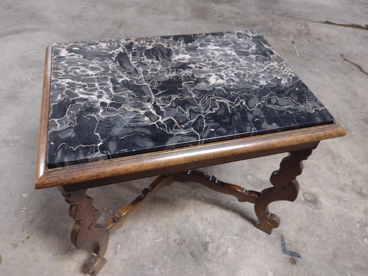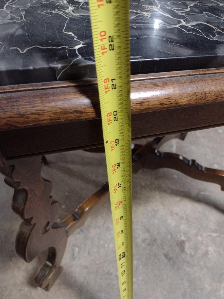 Vintage Walnut Base Side Table with Marble Insert Top