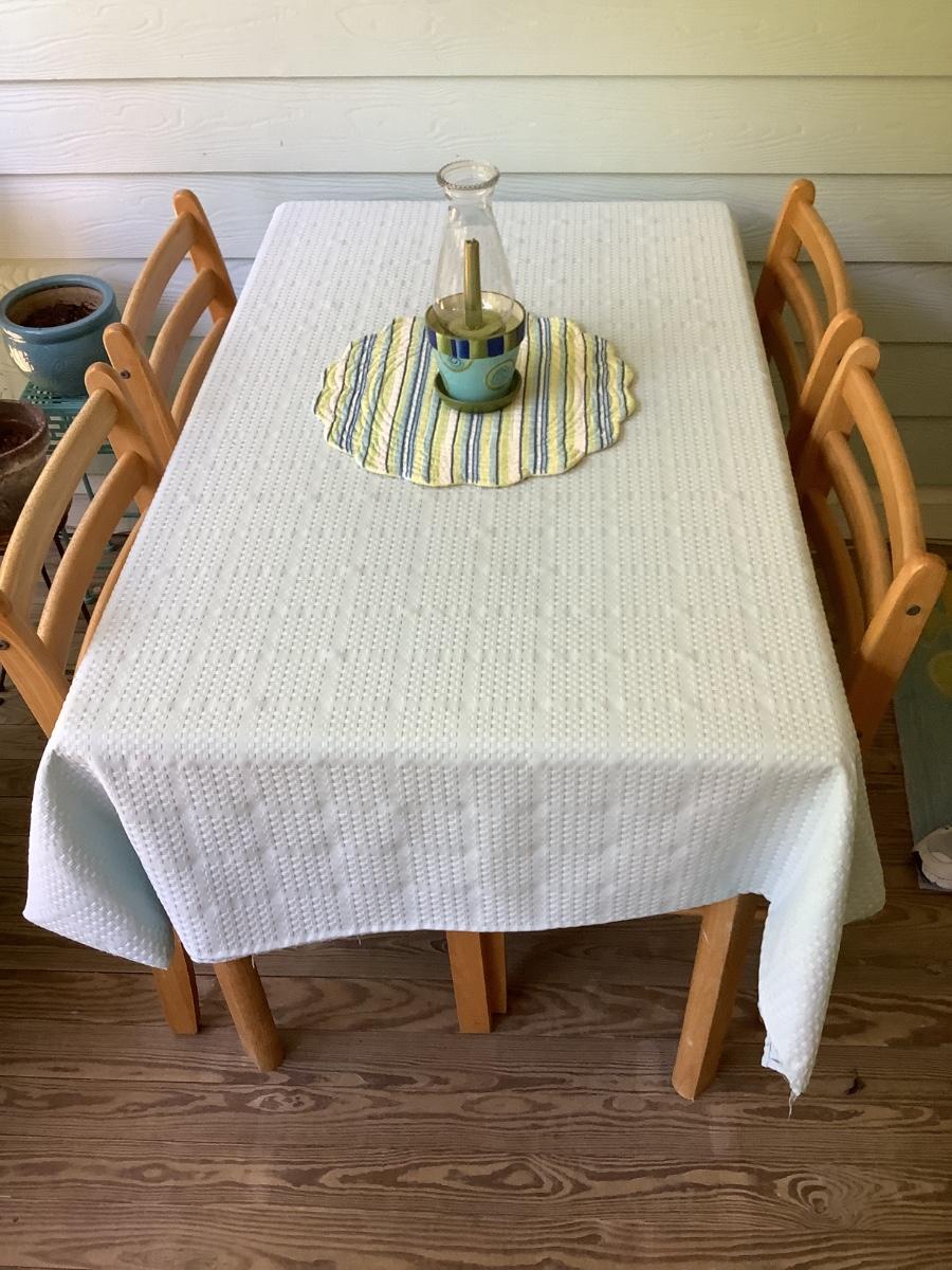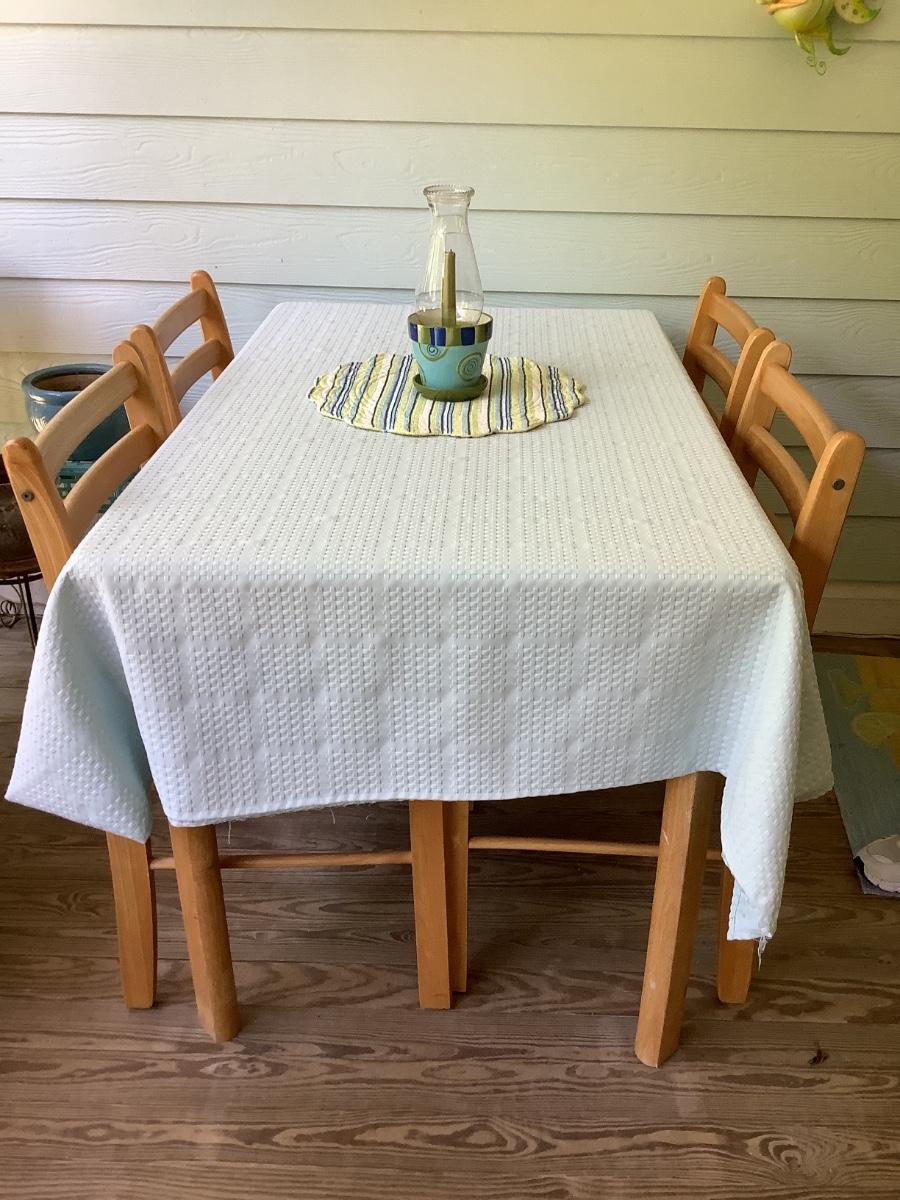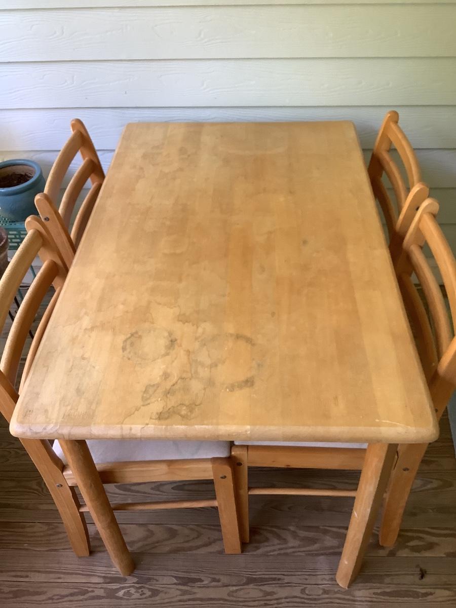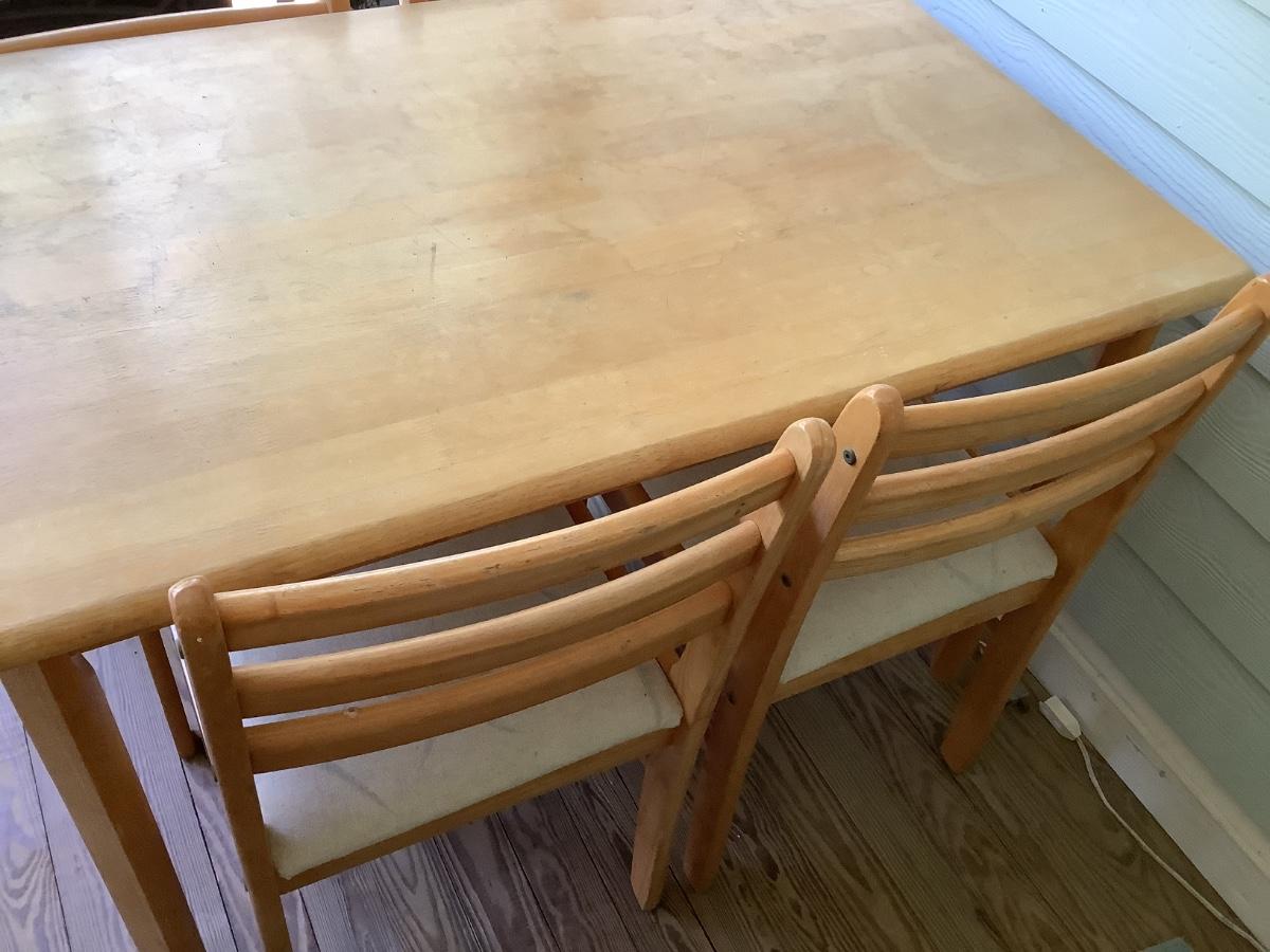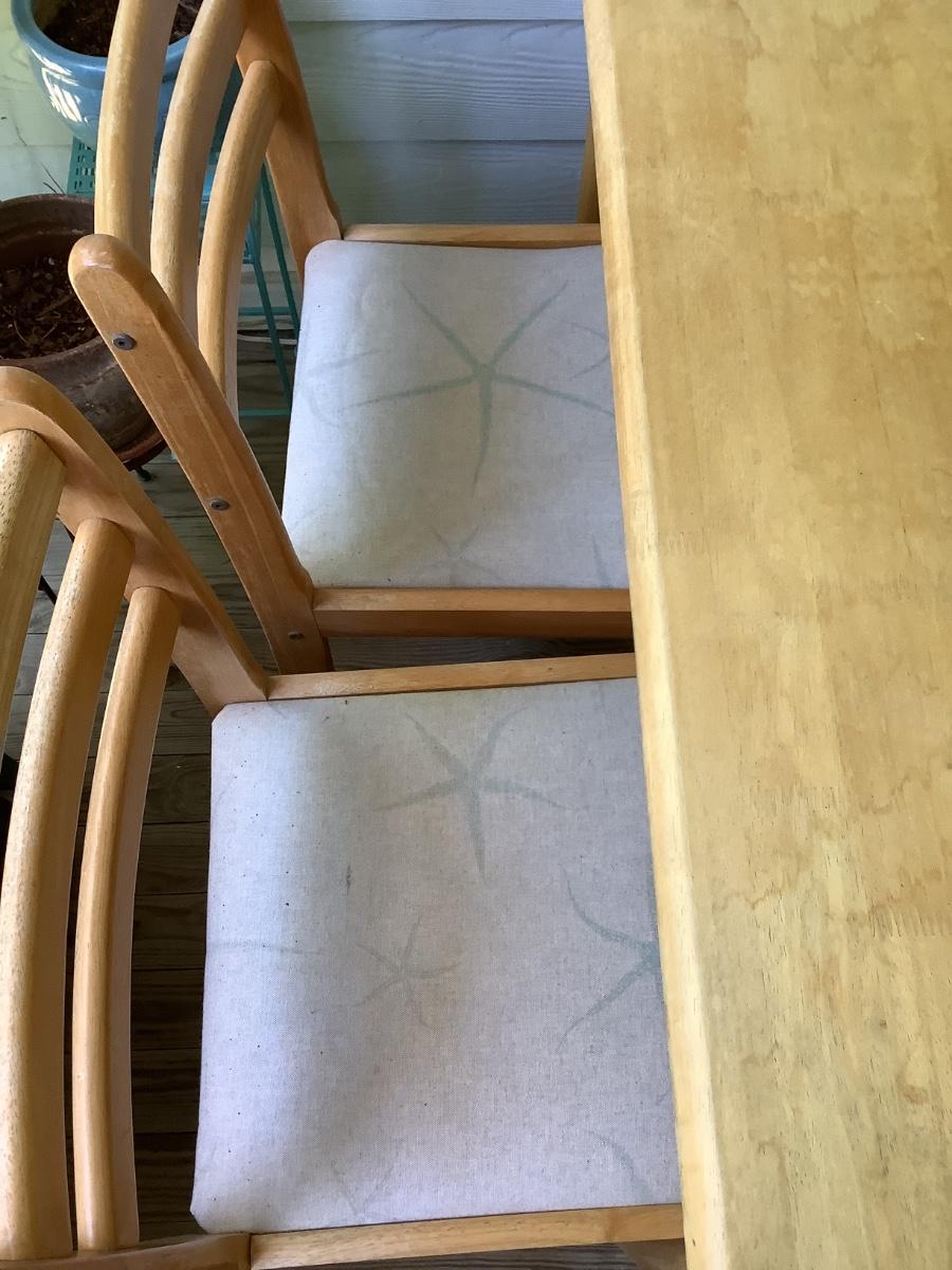 Entertain on this Table and 4 chairs -wooden with fabric seats