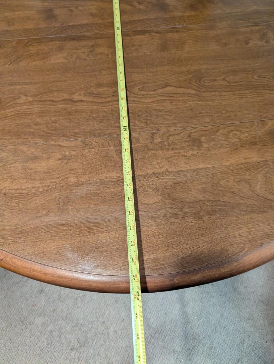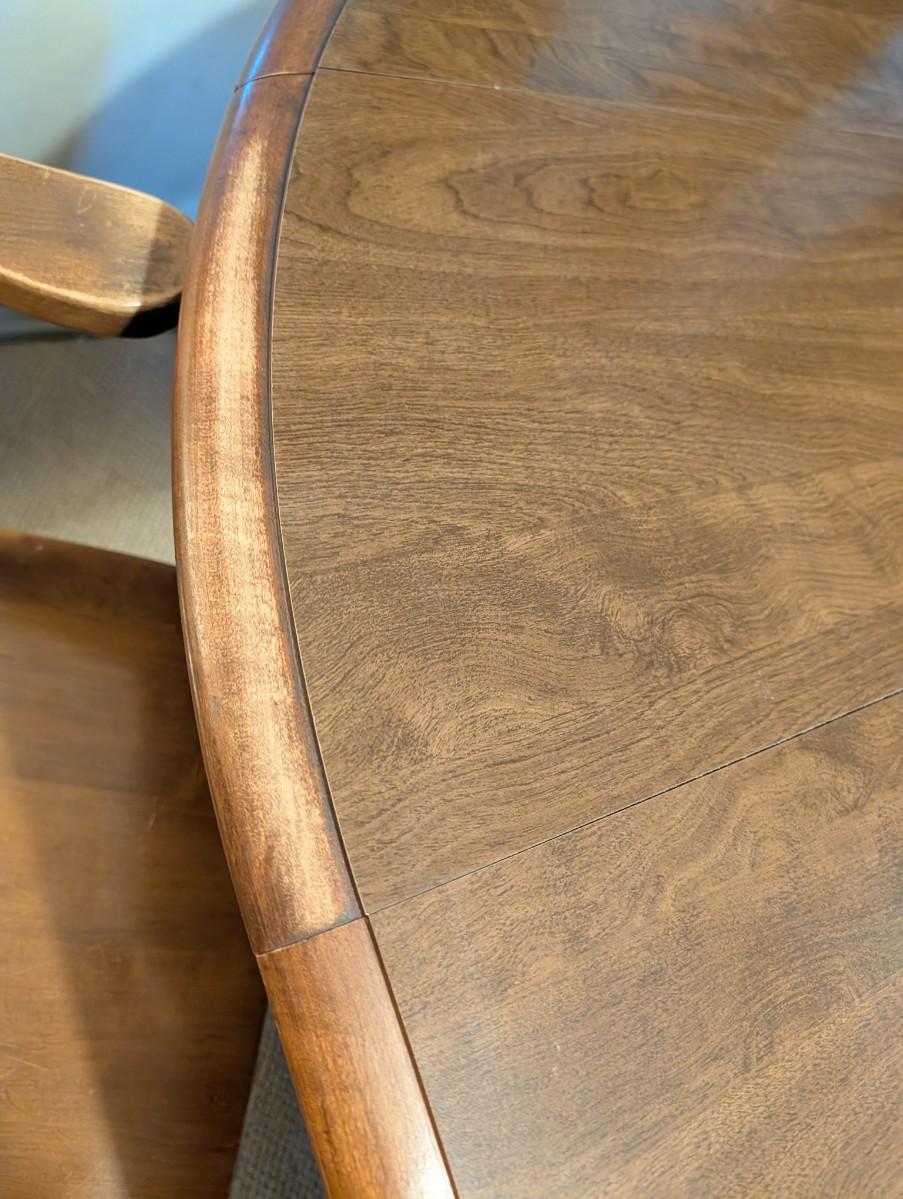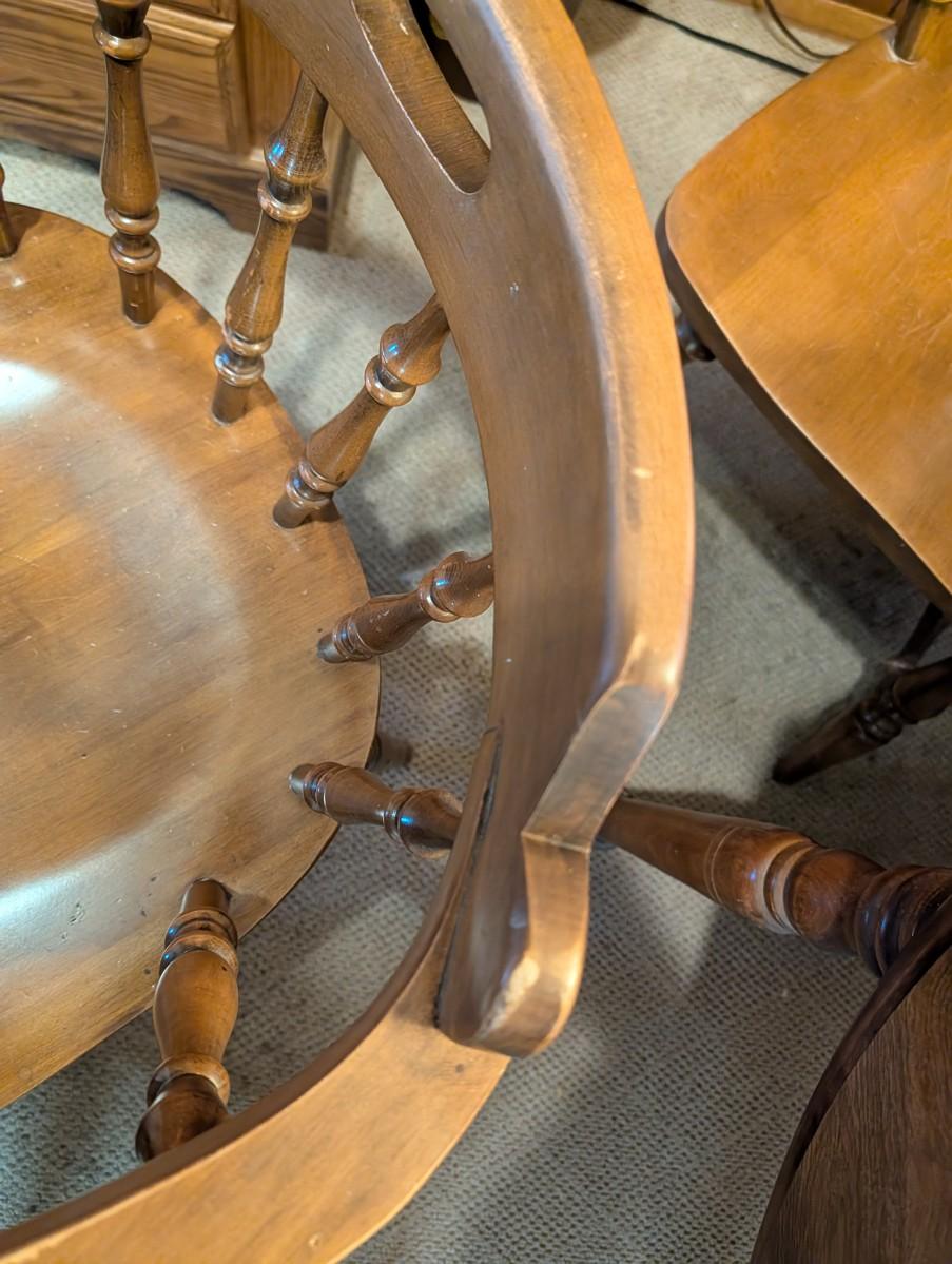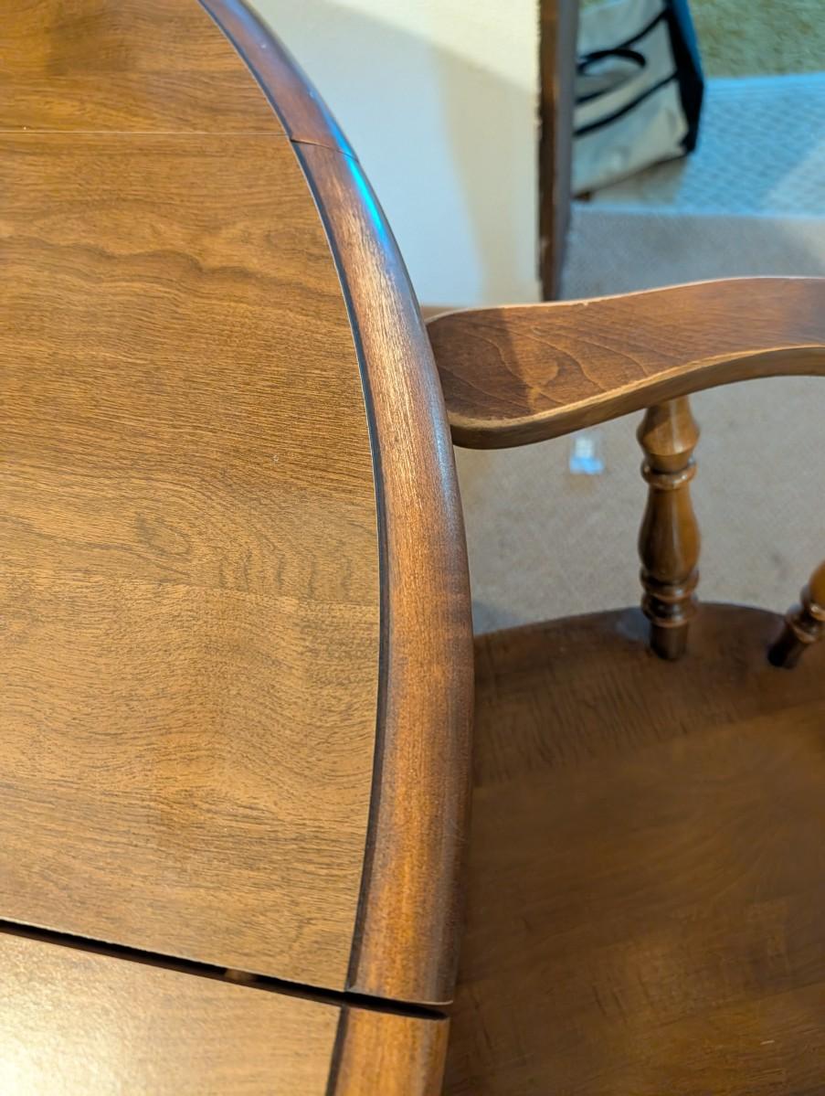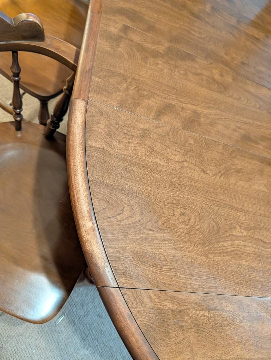 Table and chairs includes 2 leafs. Pictures show the sizes the table can be, and the places where there is wear.