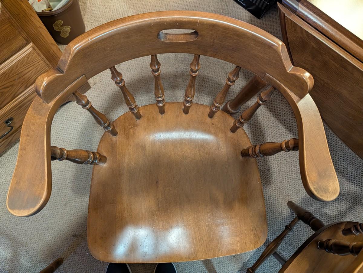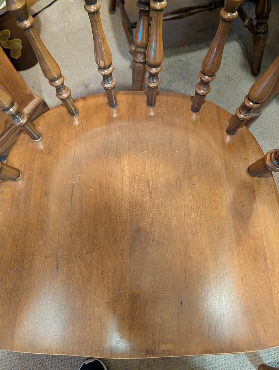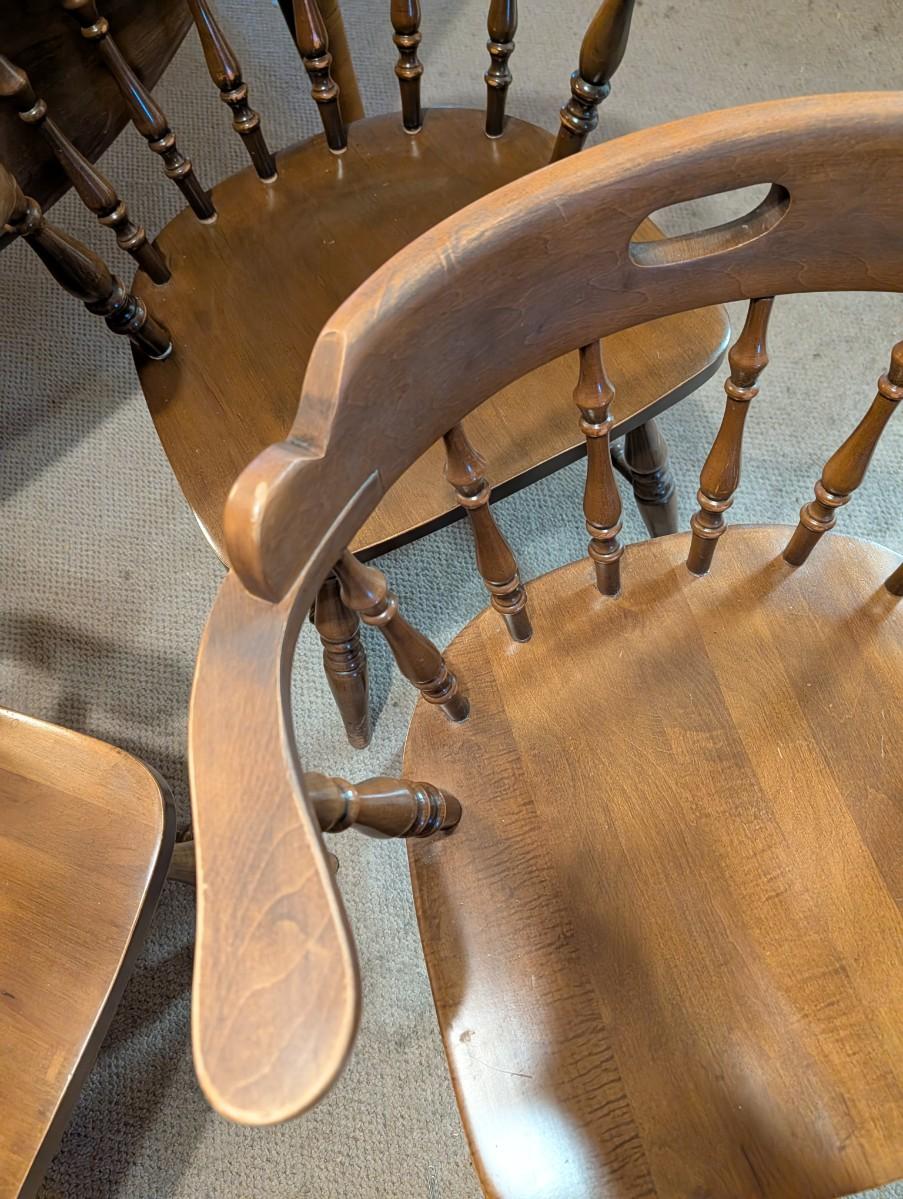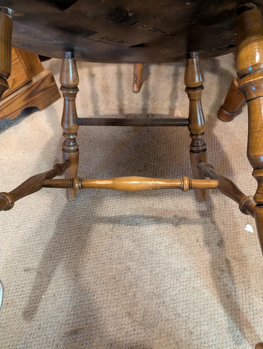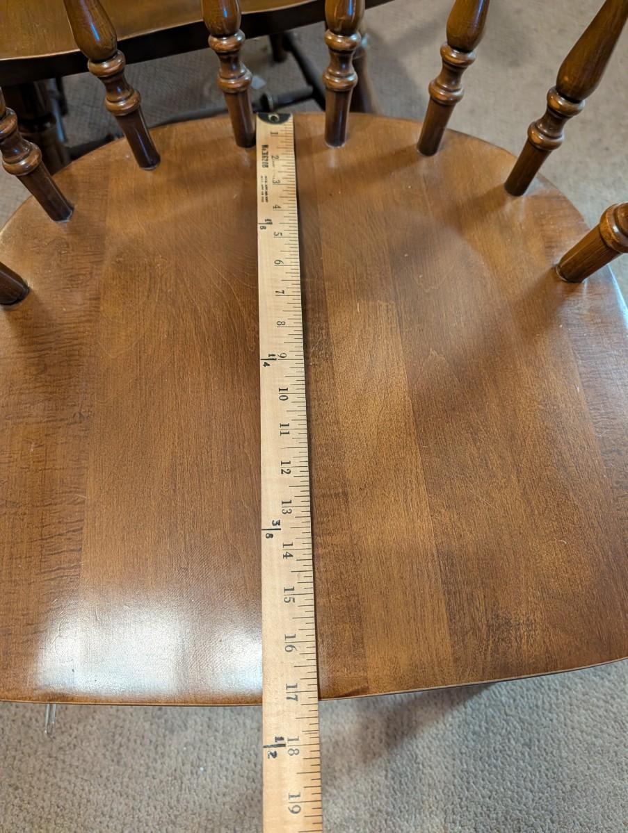 Table and chairs includes 2 leafs. Pictures show the sizes the table can be, and the places where there is wear.