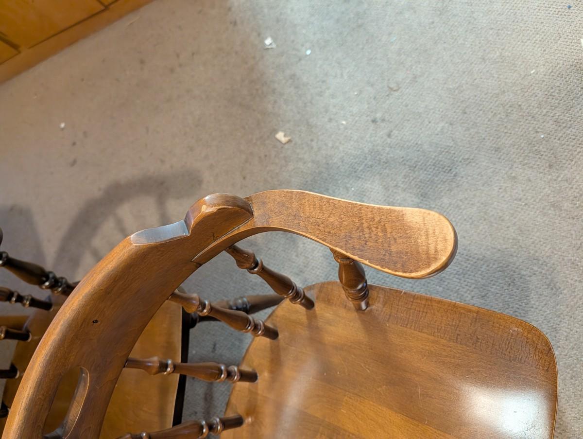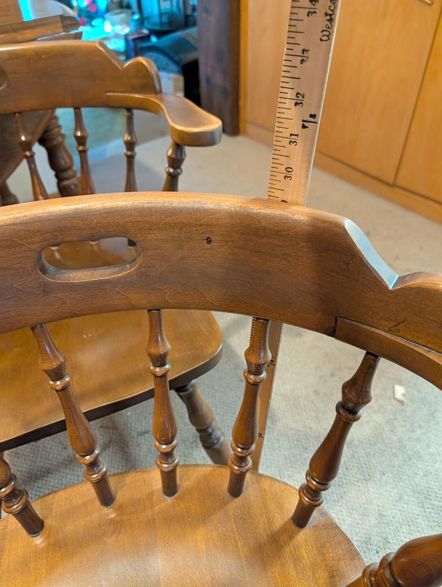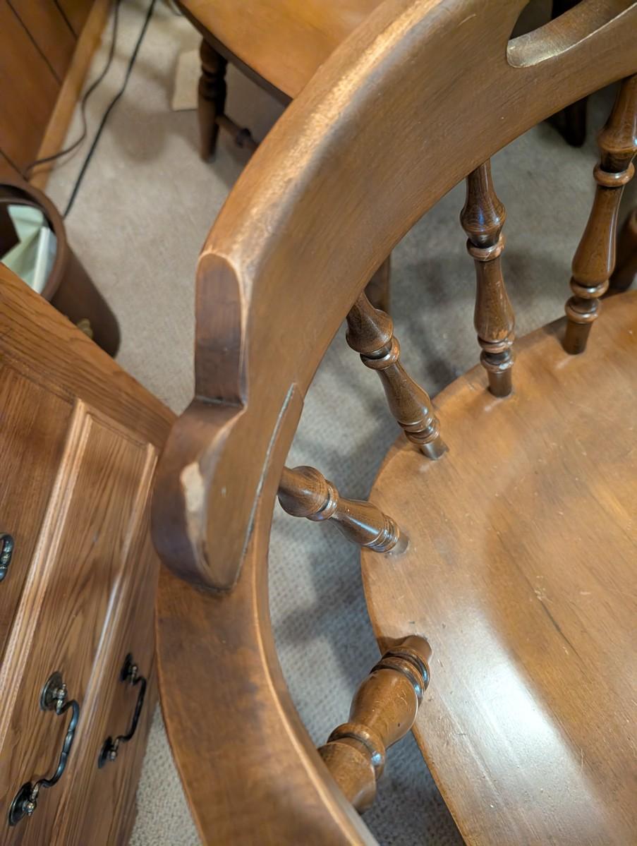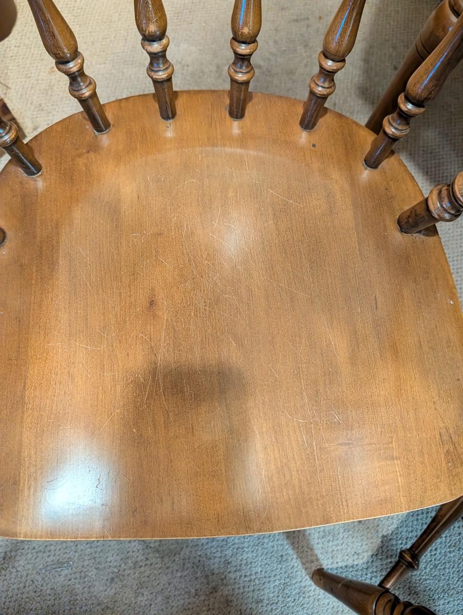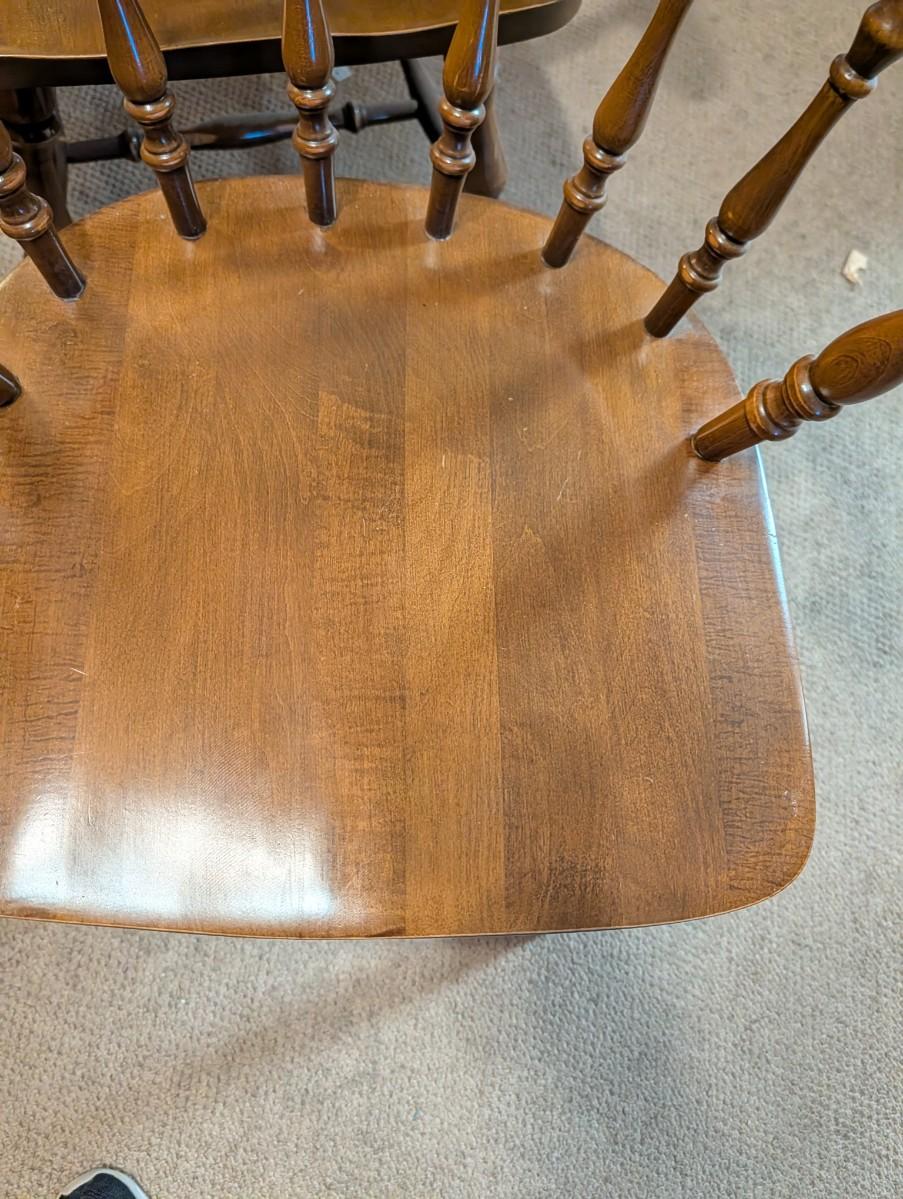 Table and chairs includes 2 leafs. Pictures show the sizes the table can be, and the places where there is wear.