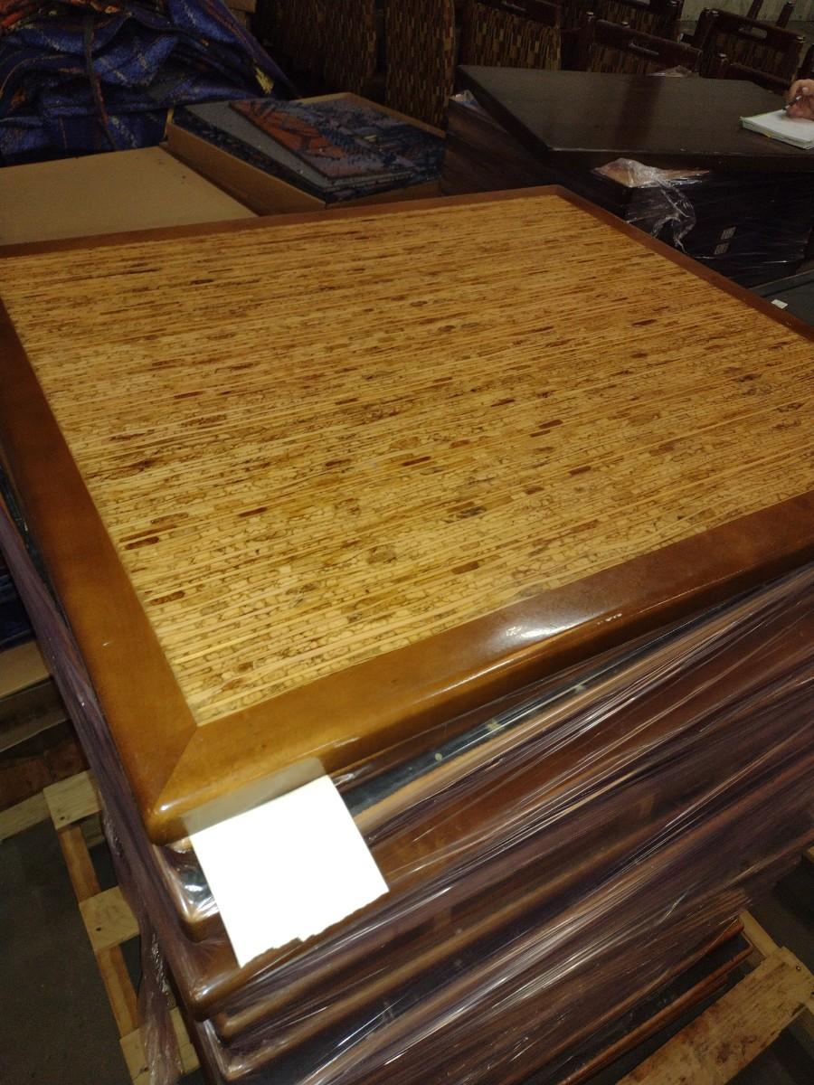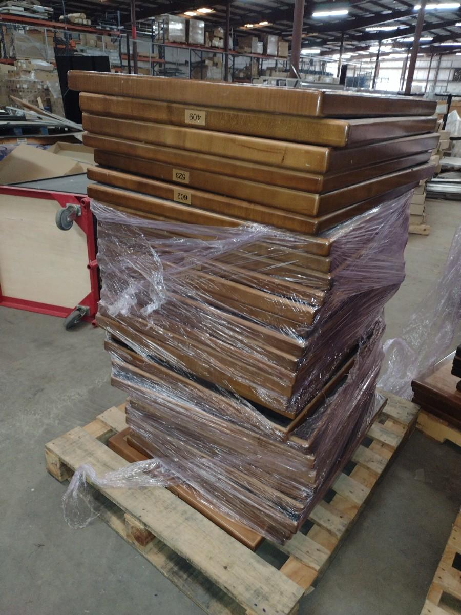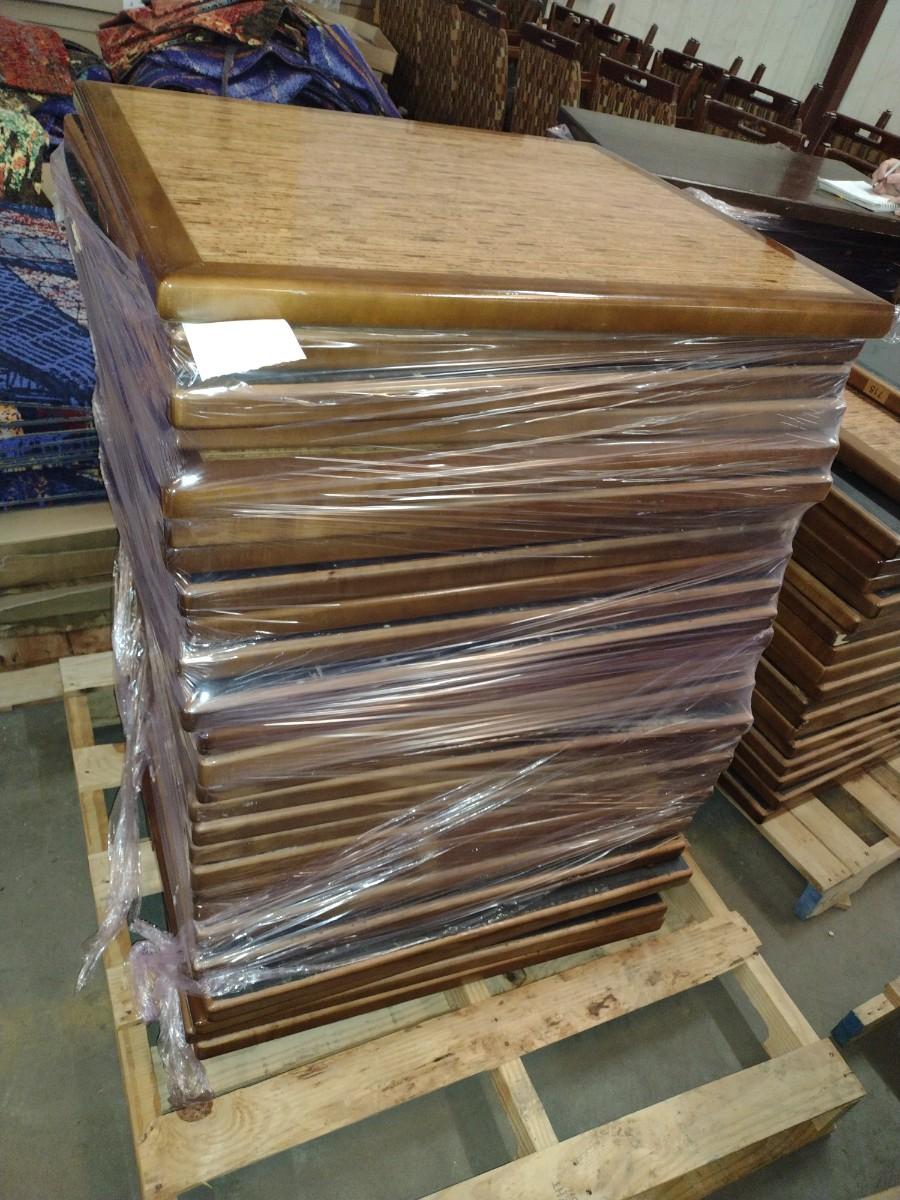 Solid Wood Tabletops Various Shades of Finish Choice B approximately 40 pcs Forklift driver available Shipping option via freight or local mover is Buyer's responsibility and expense. Buyer must have all shipping scheduled within the stated dates and times of pickup. Recommended local movers are Beaty Bros. Moving 828-201-2982 and Carolina Pack n Go 828-489-9773