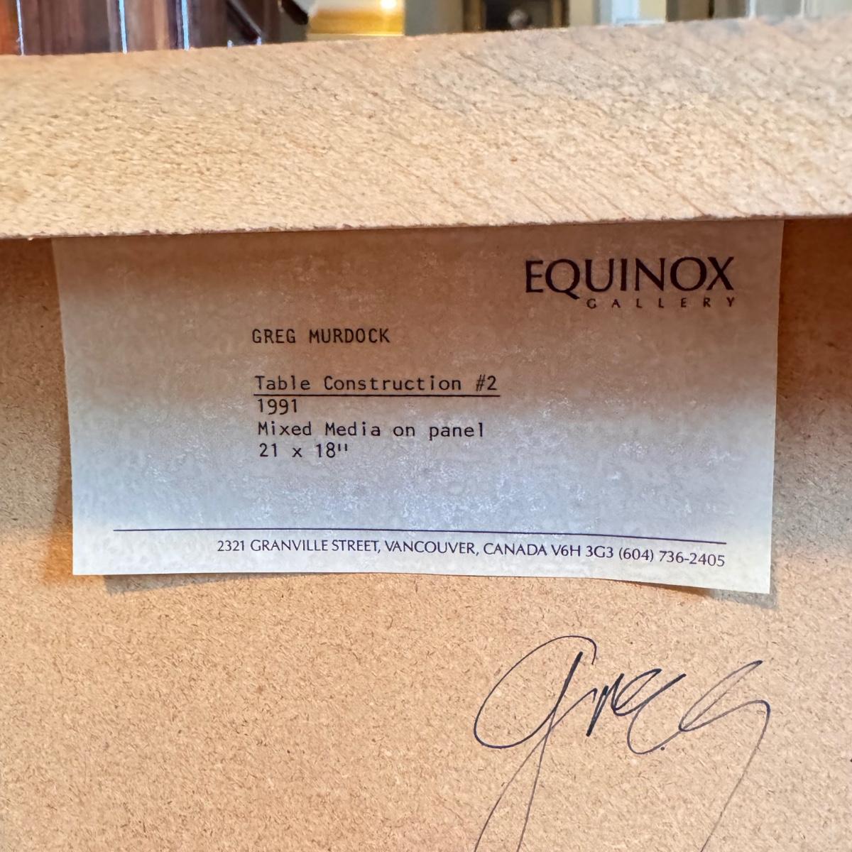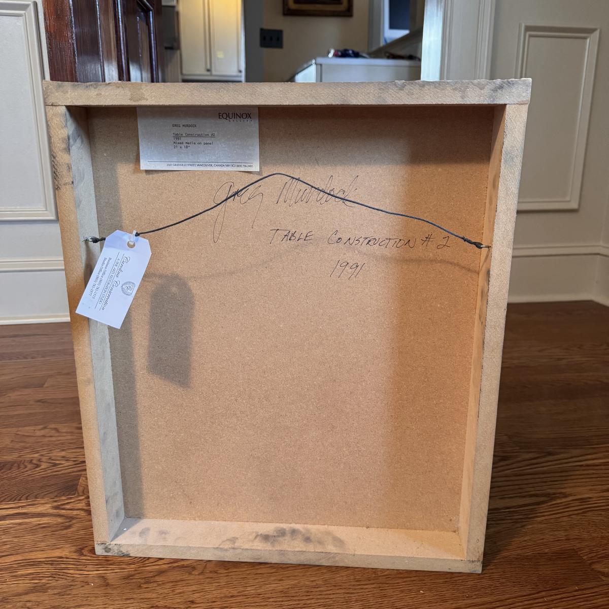 This Greg Murdock piece is titled “Table Construction #2” and appears to be an original mixed media on panel. It also appears to be signed and dated with 1991 on the back. It measures 18” x 21”H. Shipping Available. Shipping can be costly. We suggest contacting our preferred local shipping provider, Postage Express, with dimensions and getting an estimate before bidding: 828-255-9250 or shipping@postageexpressnc.com