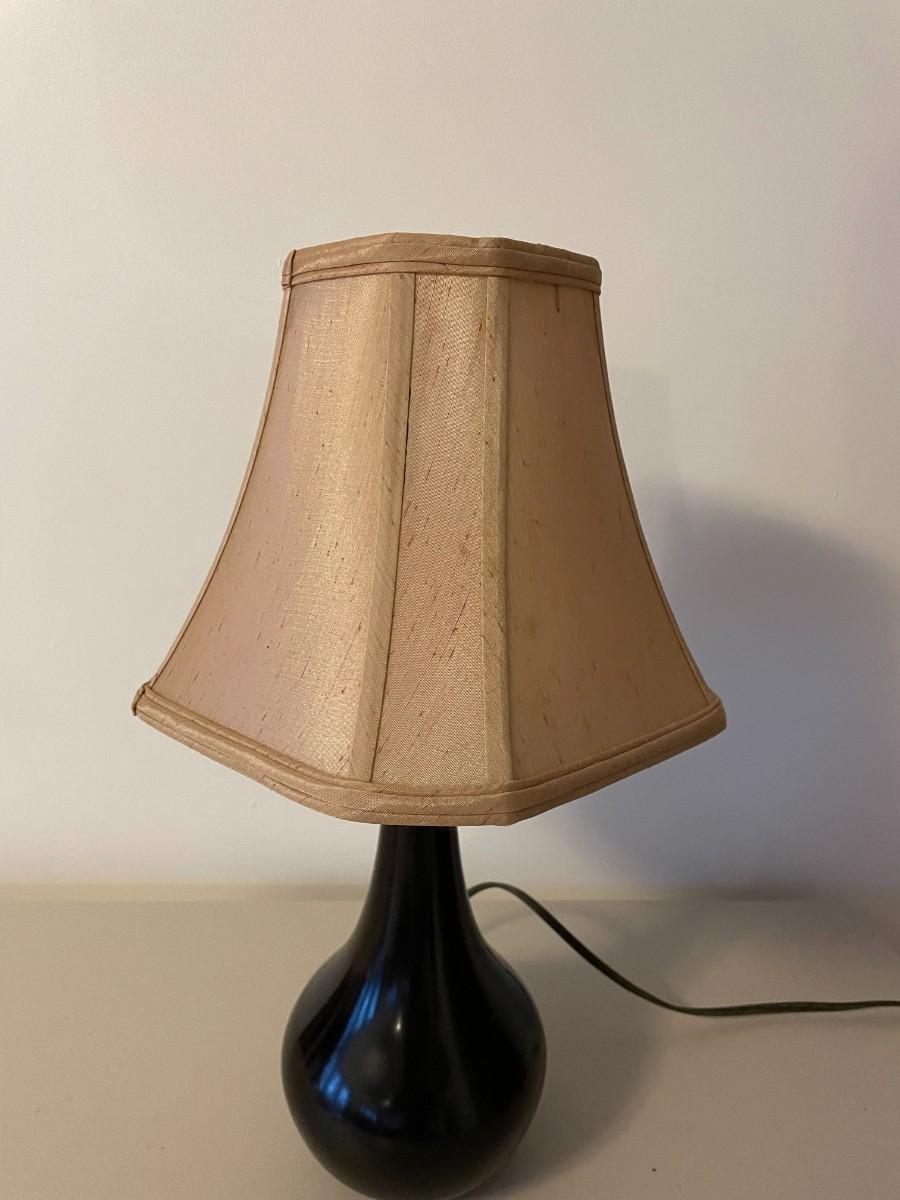 Black base. May want to replace the shade. 20"(h) x 6"(w)