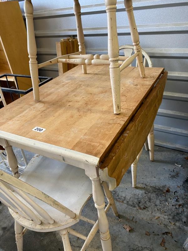 Lot 200 Table, Drop Leaf with 3 Chairs