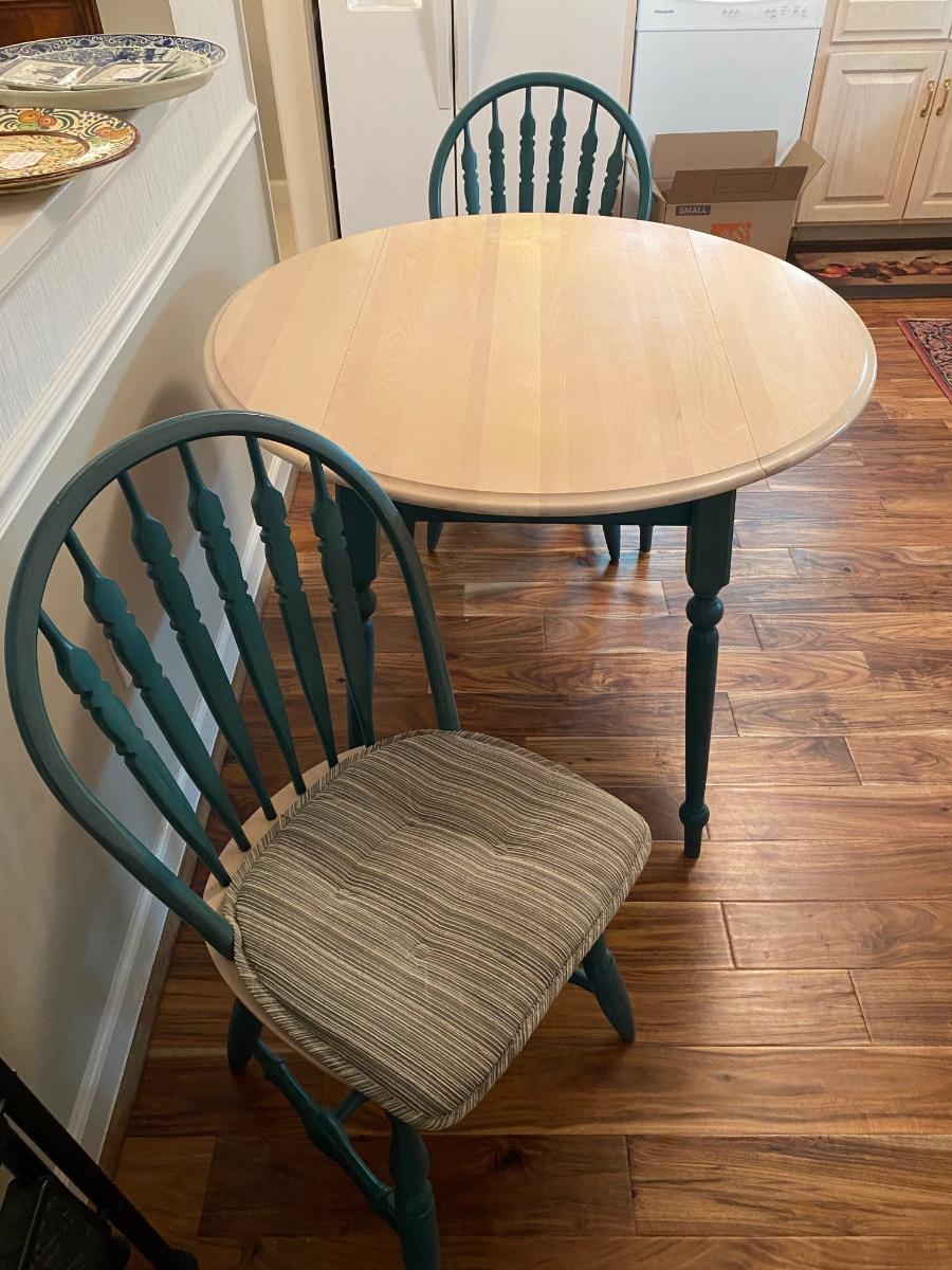 Table for two Drop Leaf Bleached and Green solid wood