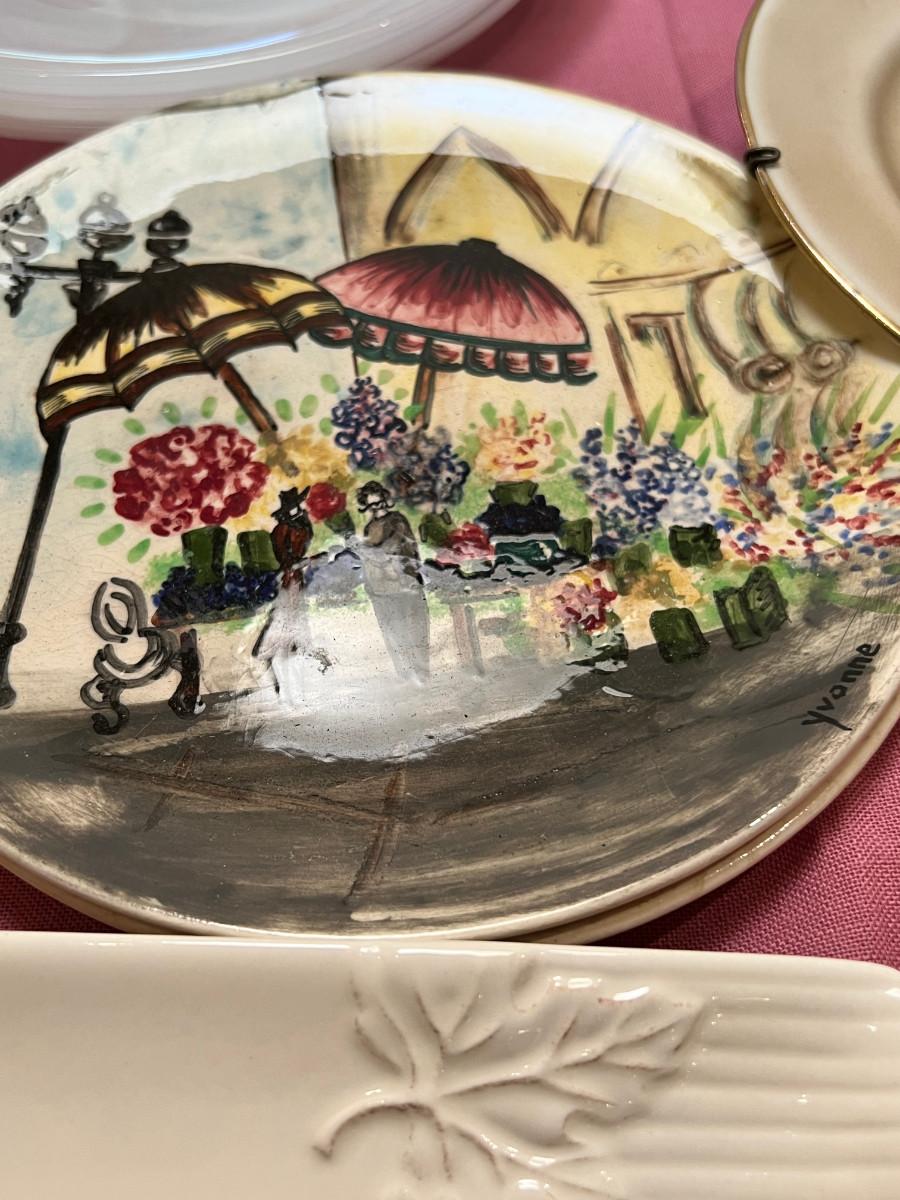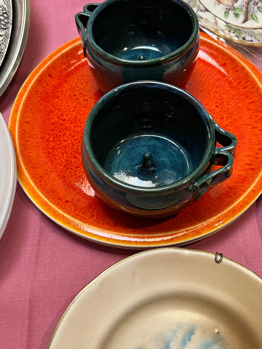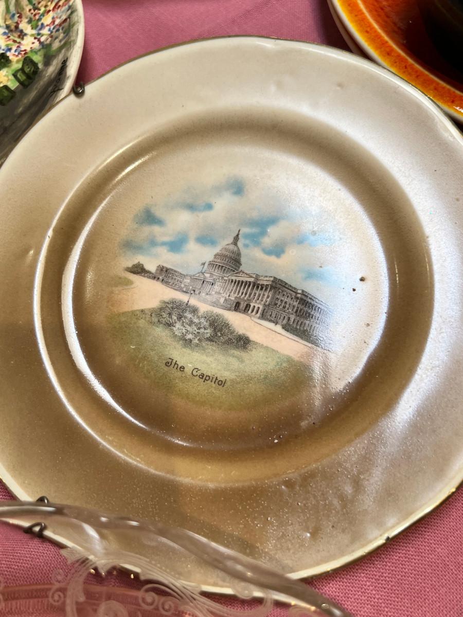 Table full of collectible glass and ceramics,  Noritake Quail plate with COA