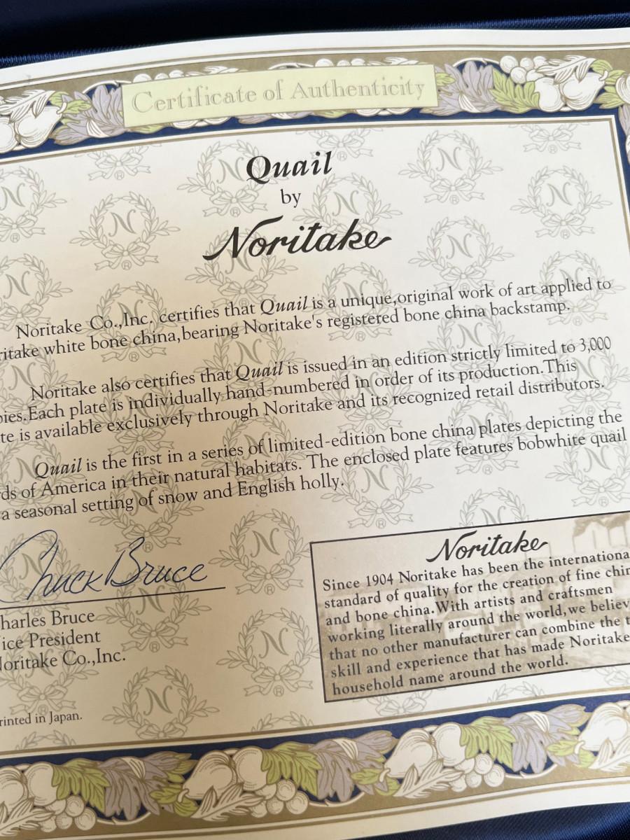 Table full of collectible glass and ceramics, Noritake Quail plate with COA