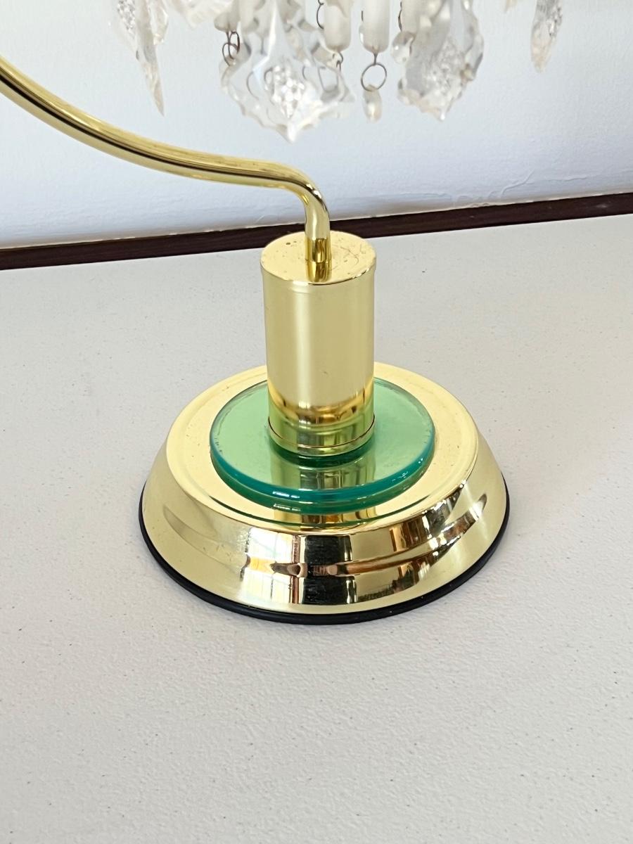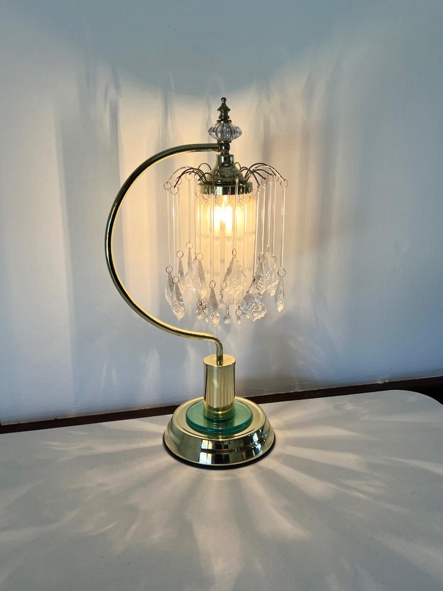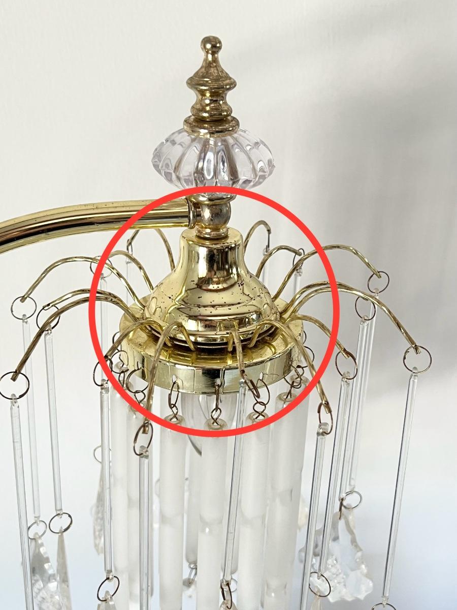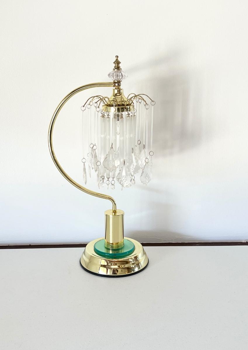Lamp is a combination of metal & plastic ~ Tube pieces in middle are glass, the tear drop looking crystals are plastic ~ Has wear from age, see photos for condition ~ 21” H x 11” W x 7” D