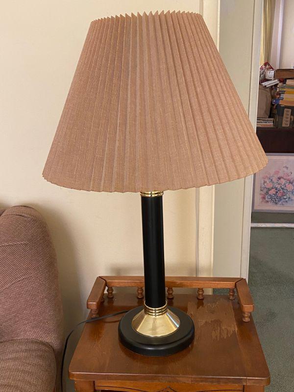 29" table lamp. Shade is in good condition, dusty.