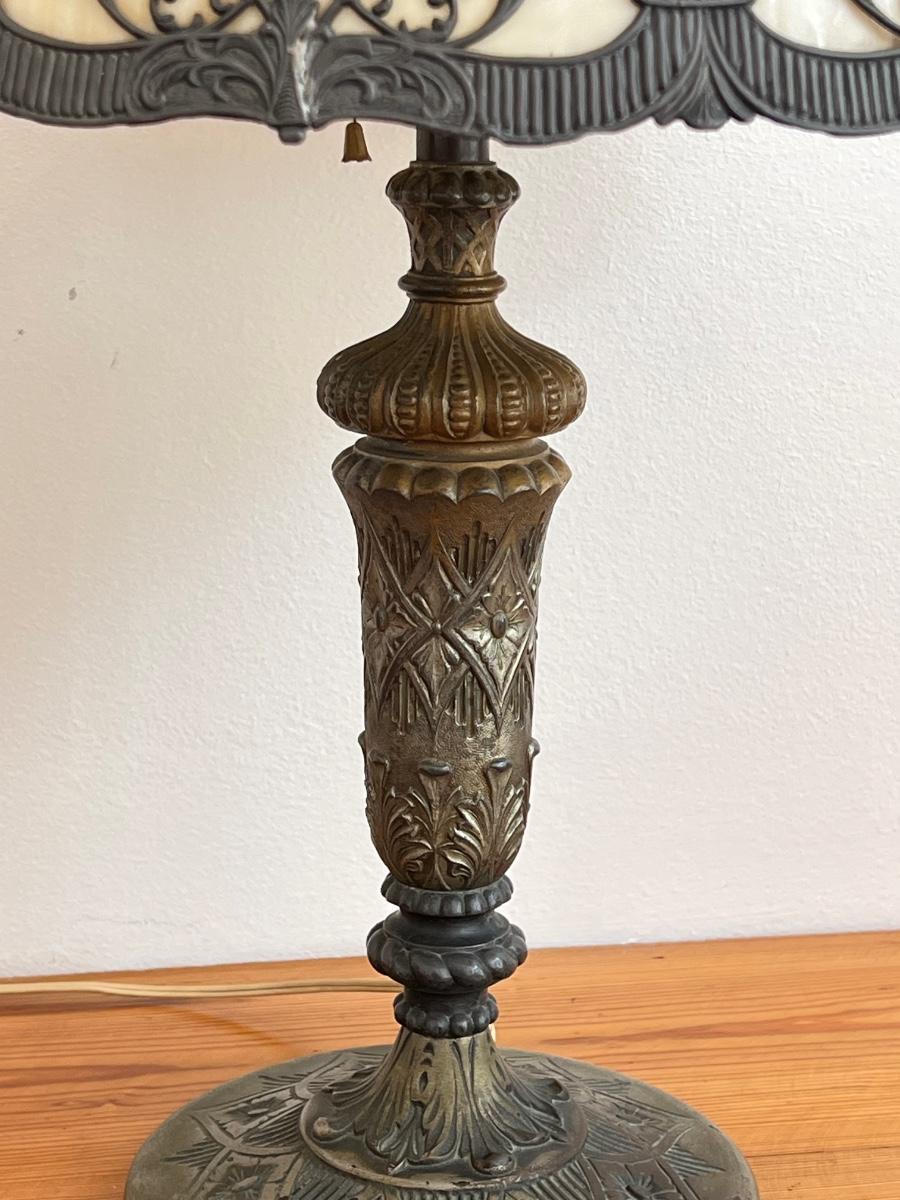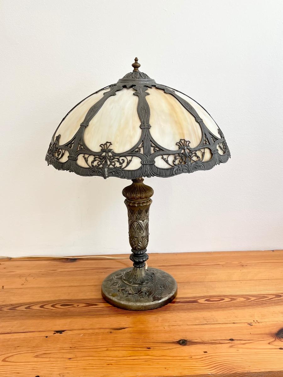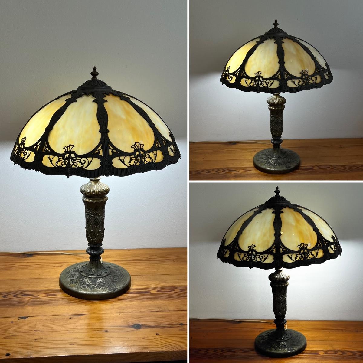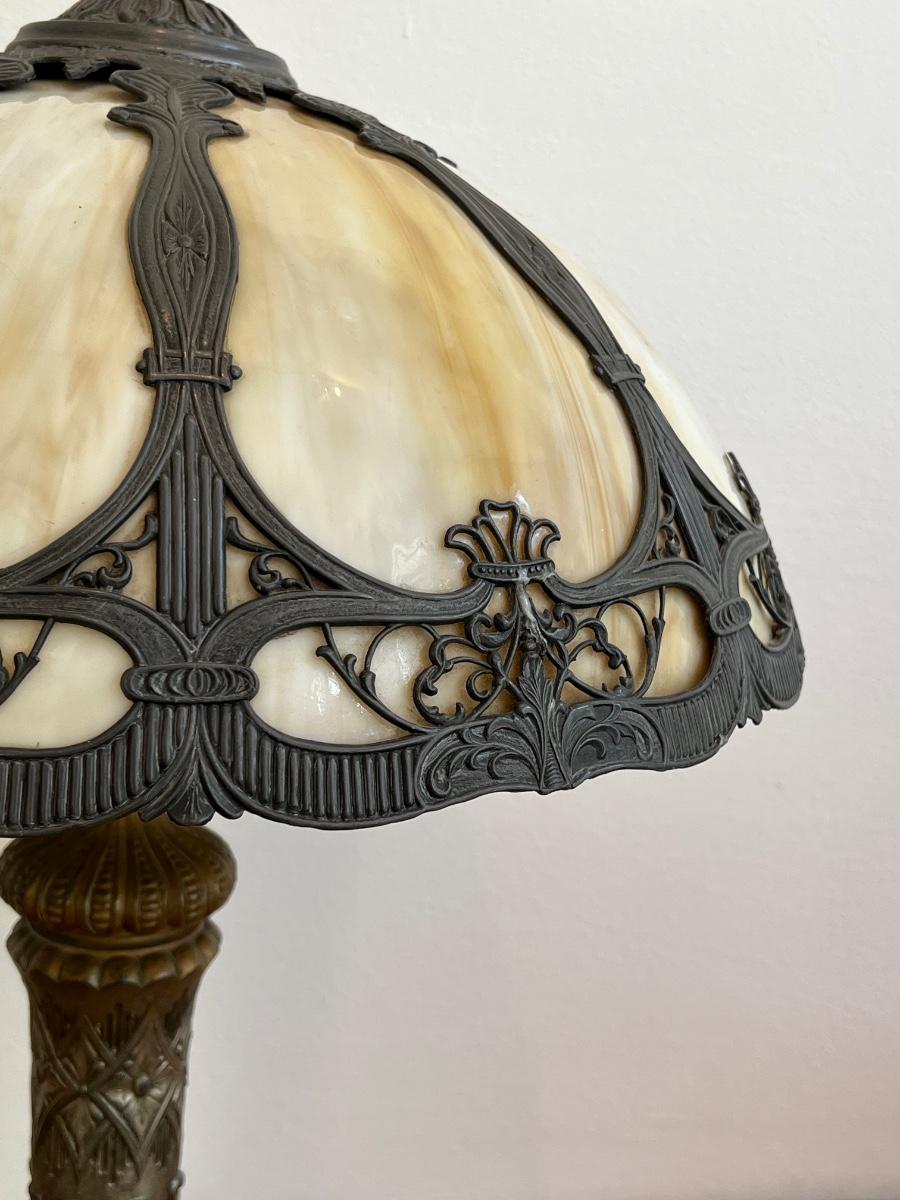 LAMB BROS & GREENE ~ Antique Glass / Metal Tiffany Style Table Lamp
