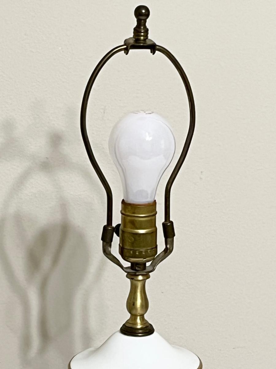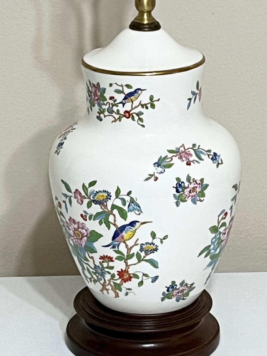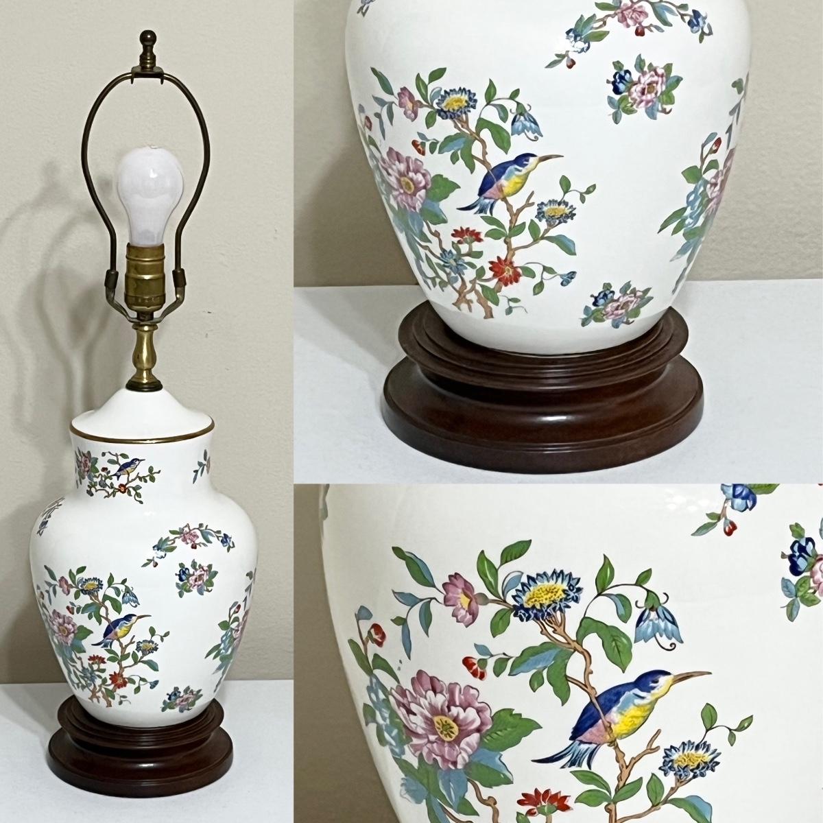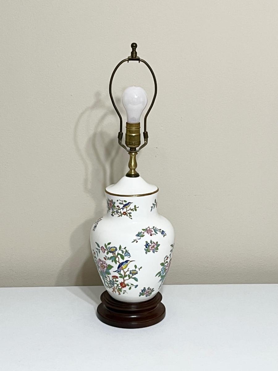 Porcelain Table Lamp With Gold Trim/Wood Base
