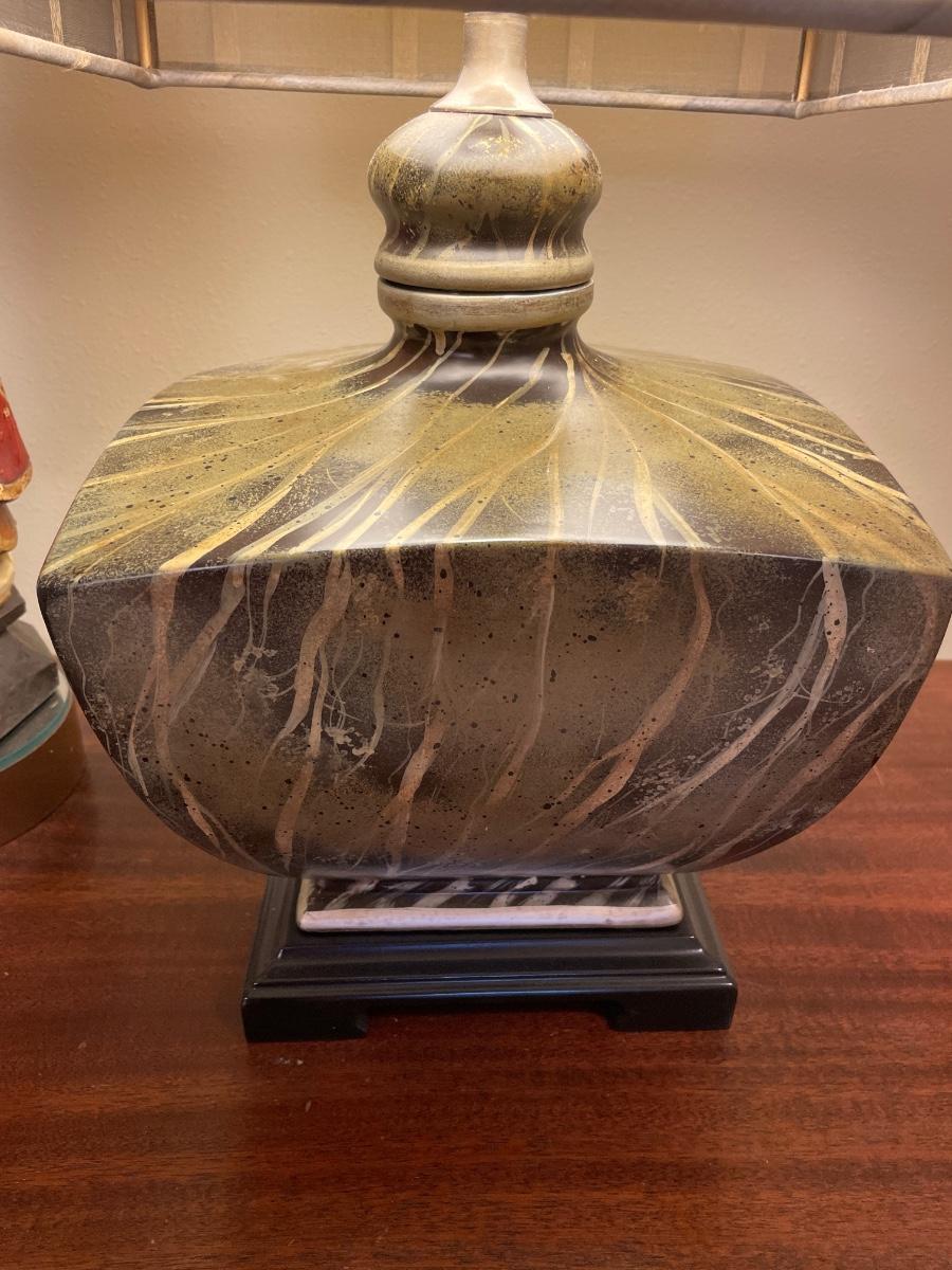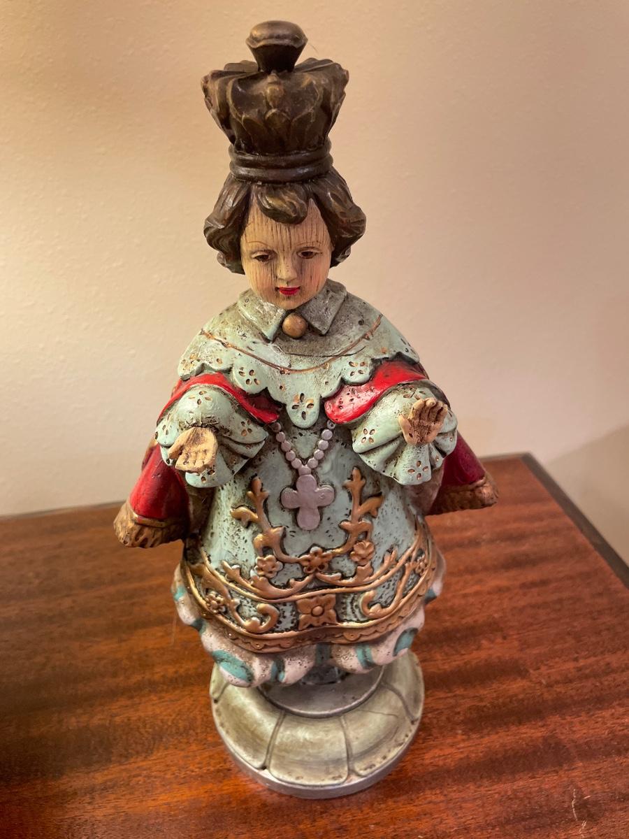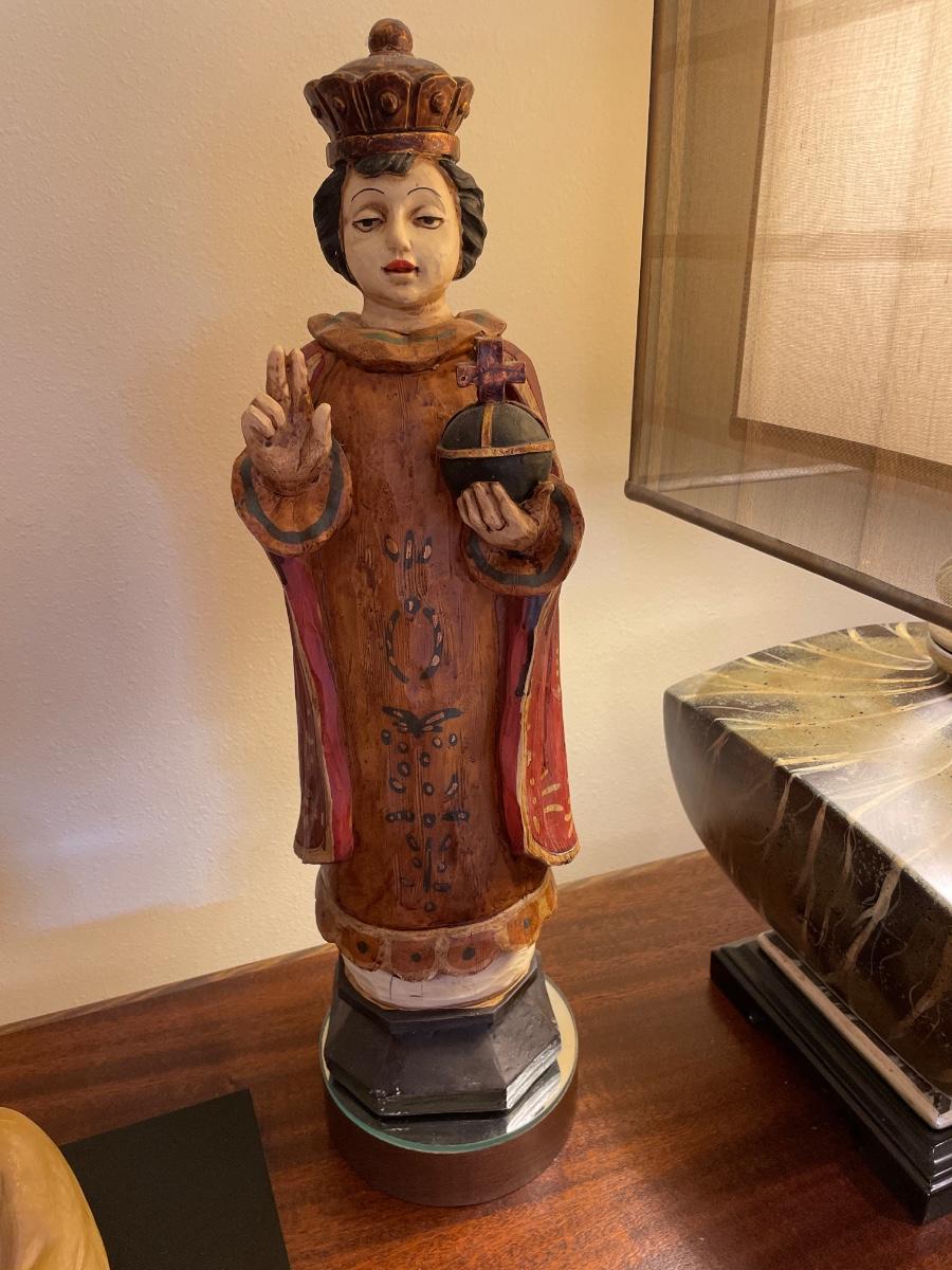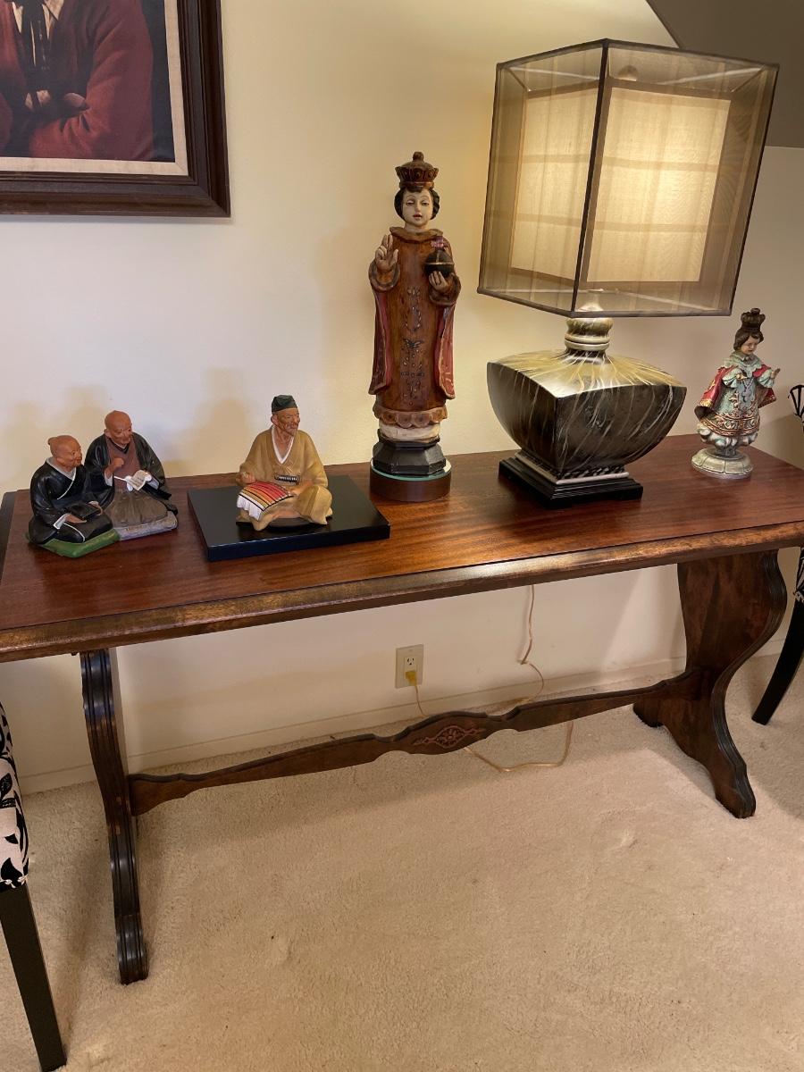 Beautiful vintage table with Napco figures , wood deities and lamp