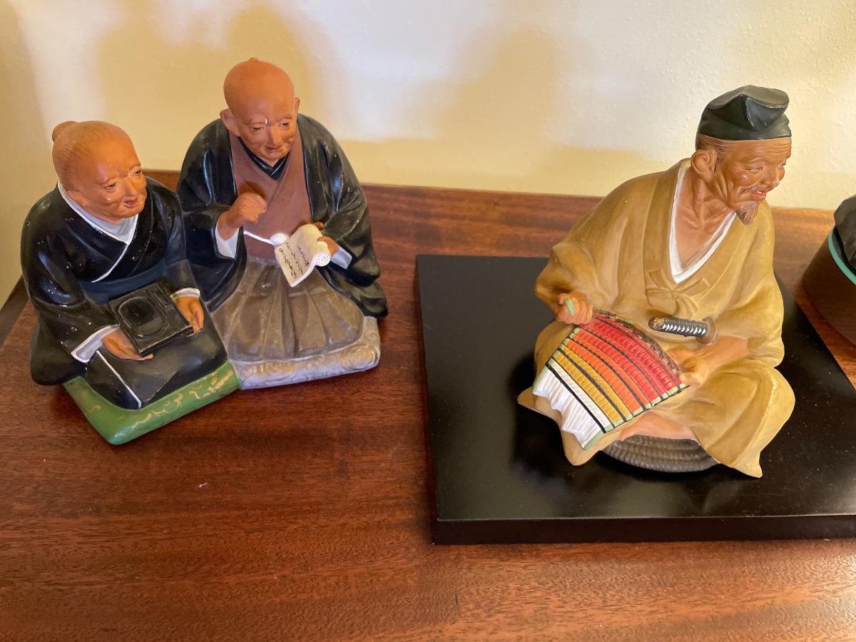 Table, lamp and 4 figurines