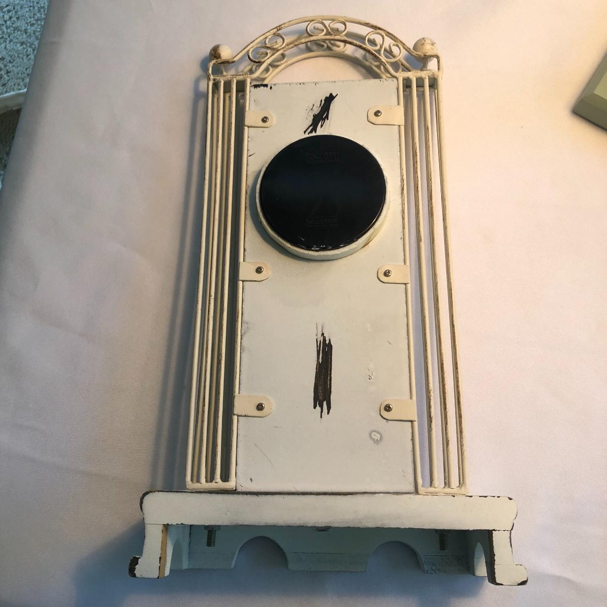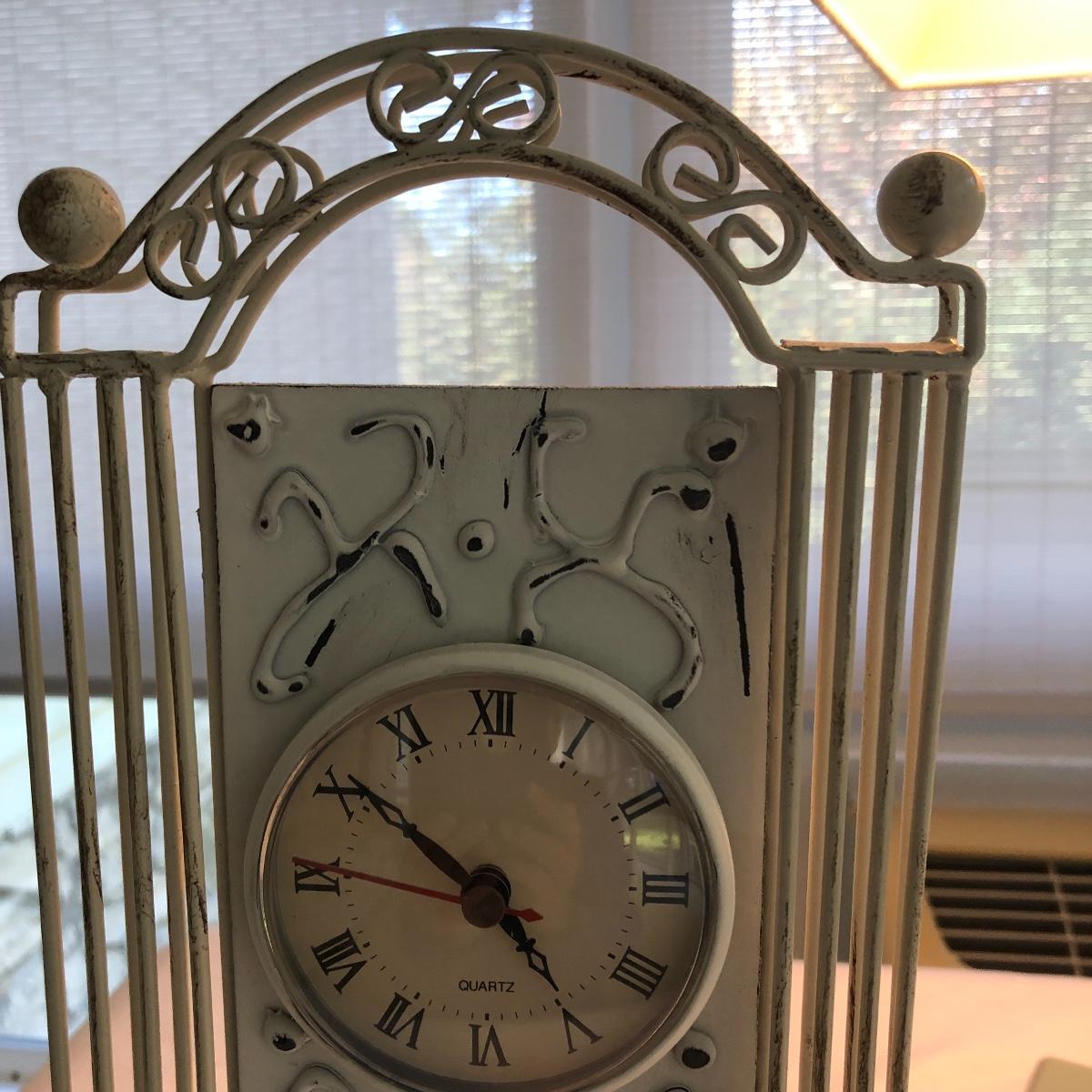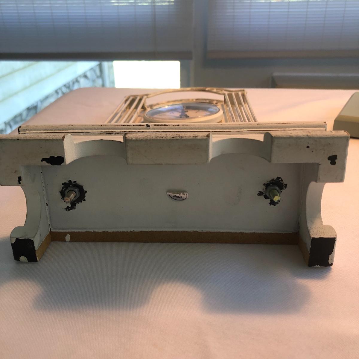 This lot includes a wooden table lamp and metal distressed looking table clock. Not able to test the clock as it needs a new battery. It is 13.5" tall. The lamp stands approximately 22” tall and operates when plugged in. Local pick up only.
