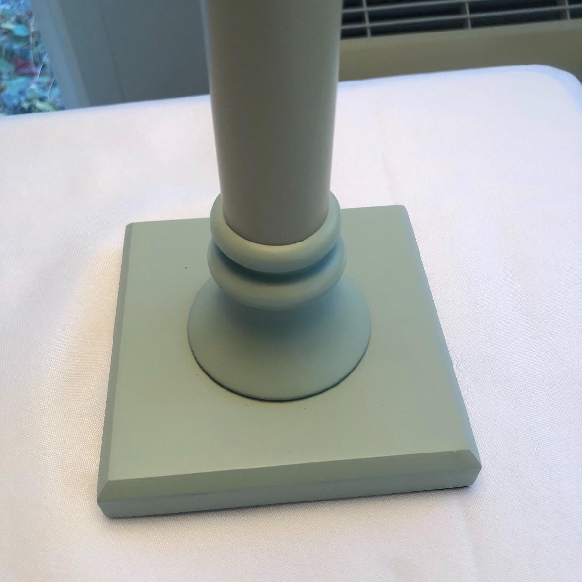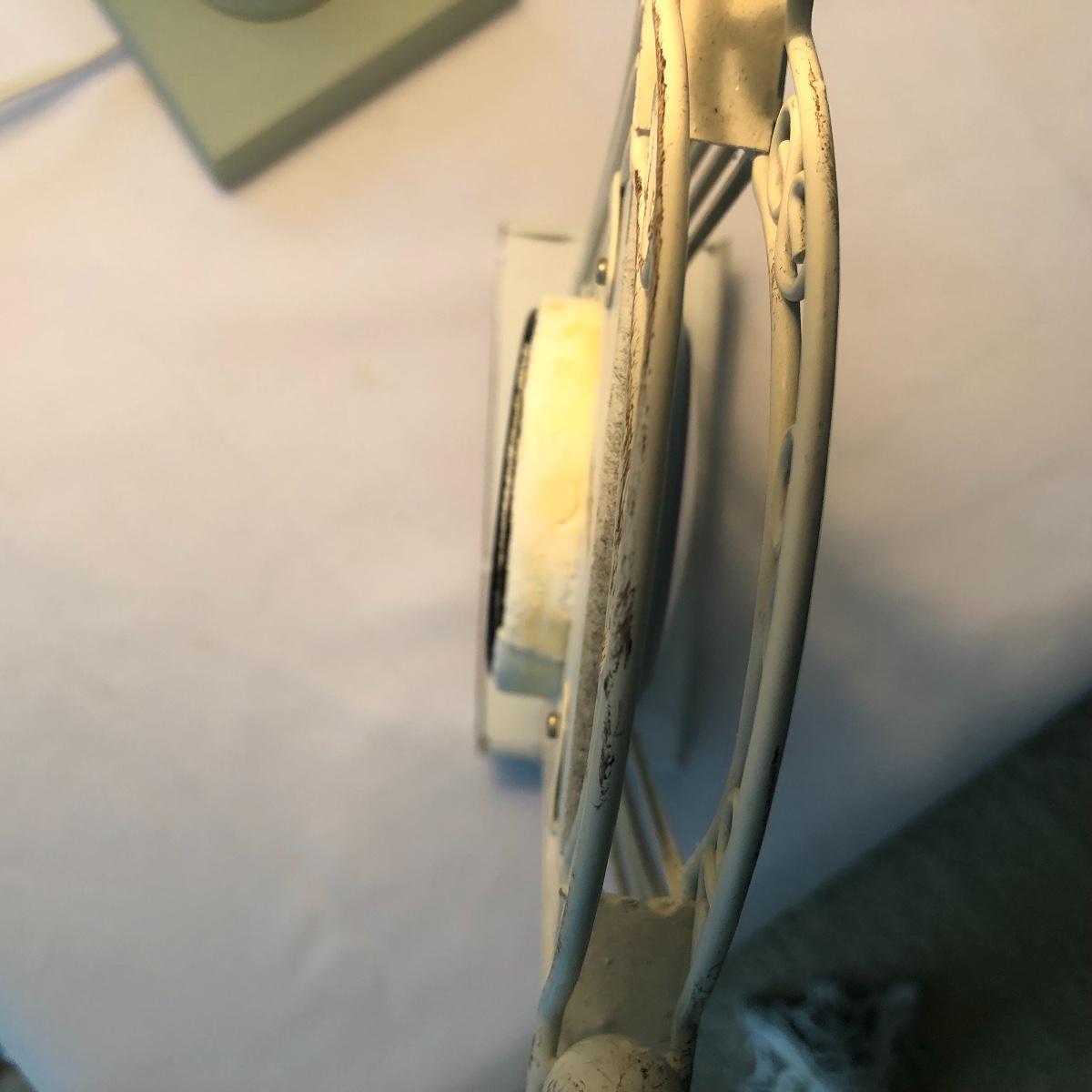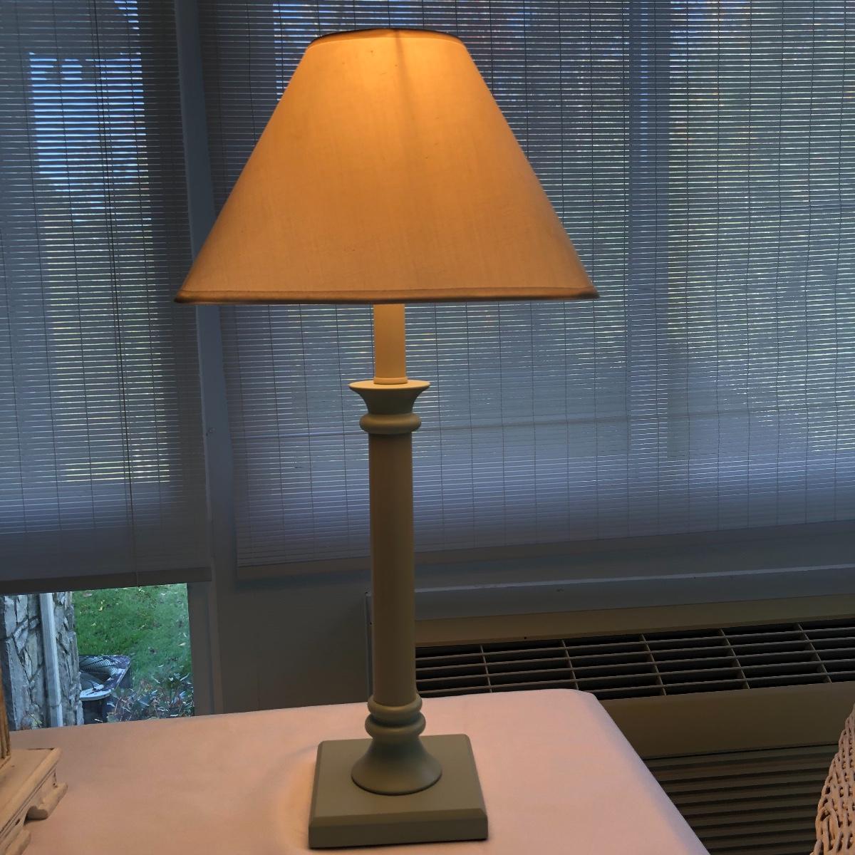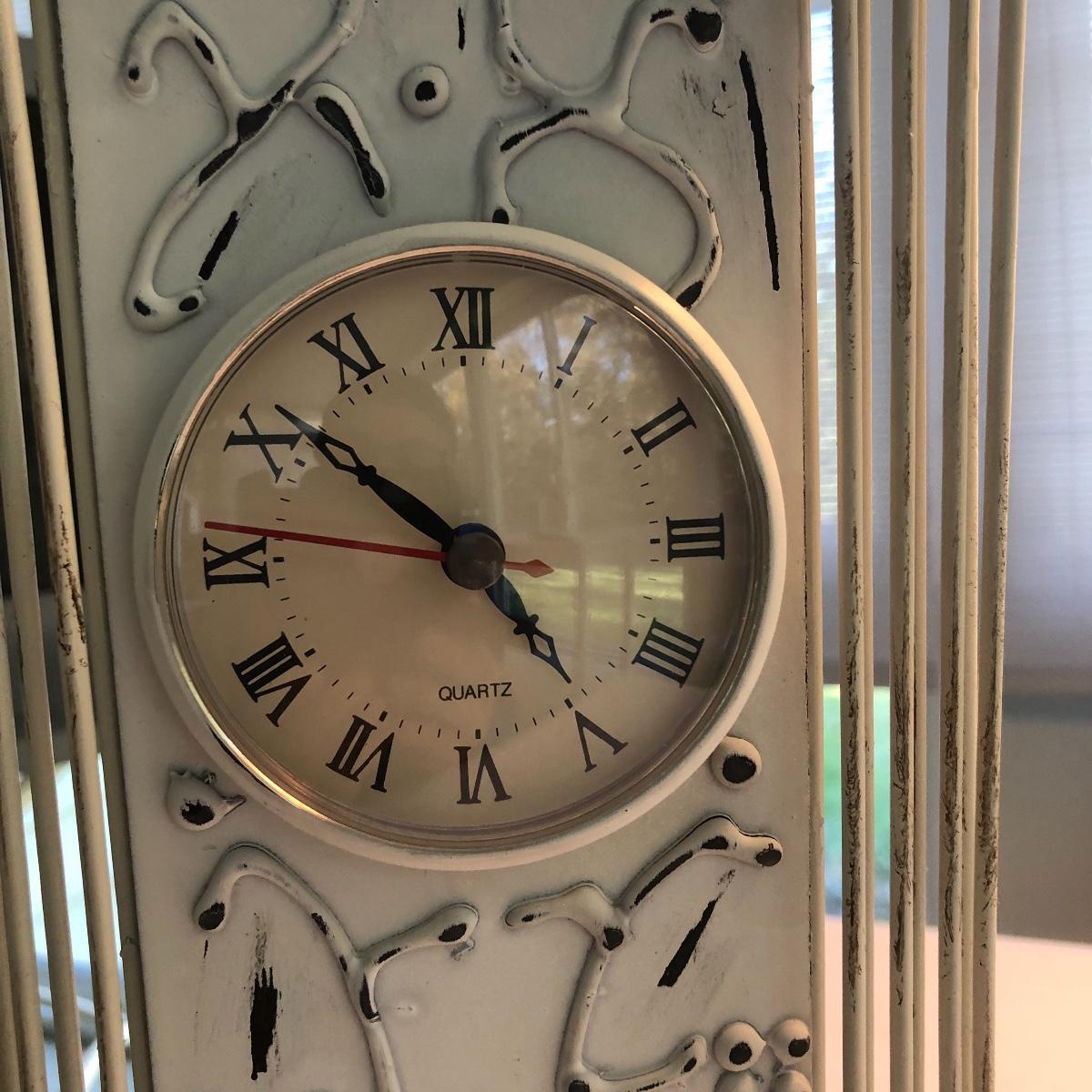 This lot includes a wooden table lamp and metal distressed looking table clock. Not able to test the clock as it needs a new battery. It is 13.5" tall. The lamp stands approximately 22” tall and operates when plugged in. Local pick up only.