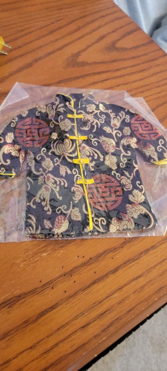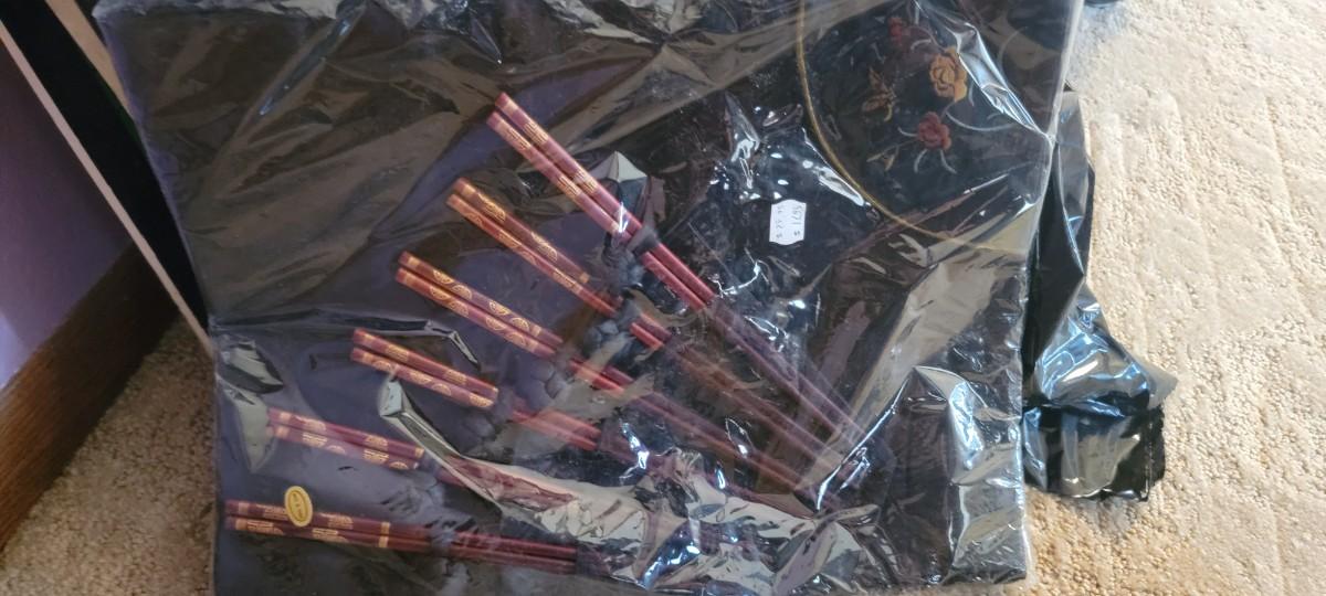 Cool table lamp. Placemats with chopsticks. Small kimono.