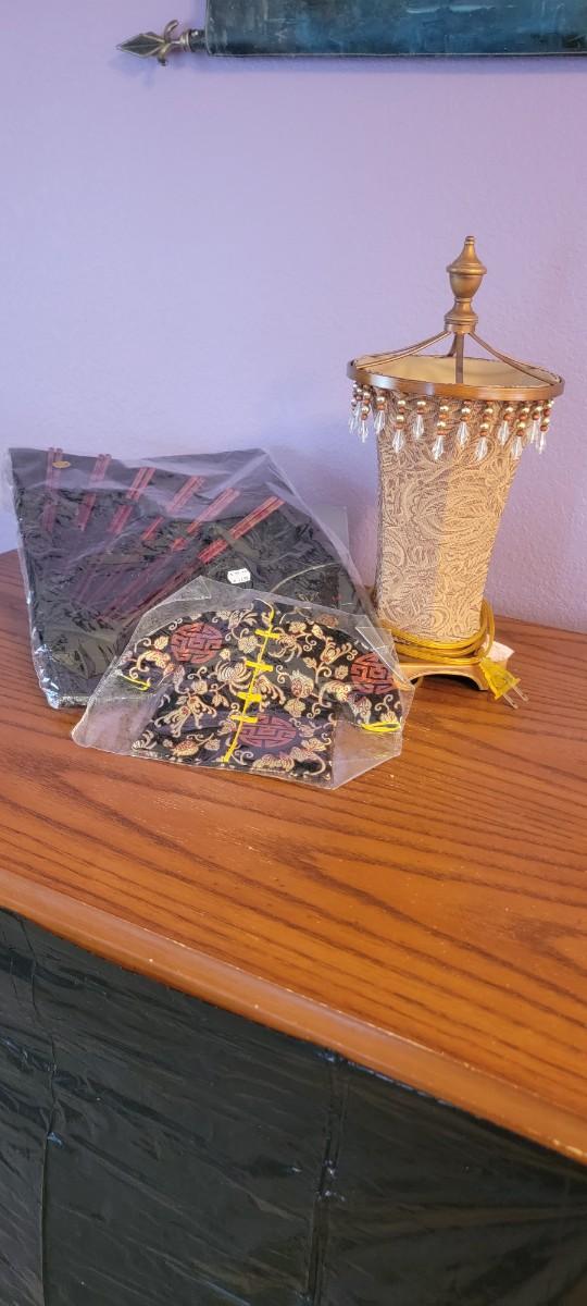 Table lamp, placemats with chop sticks