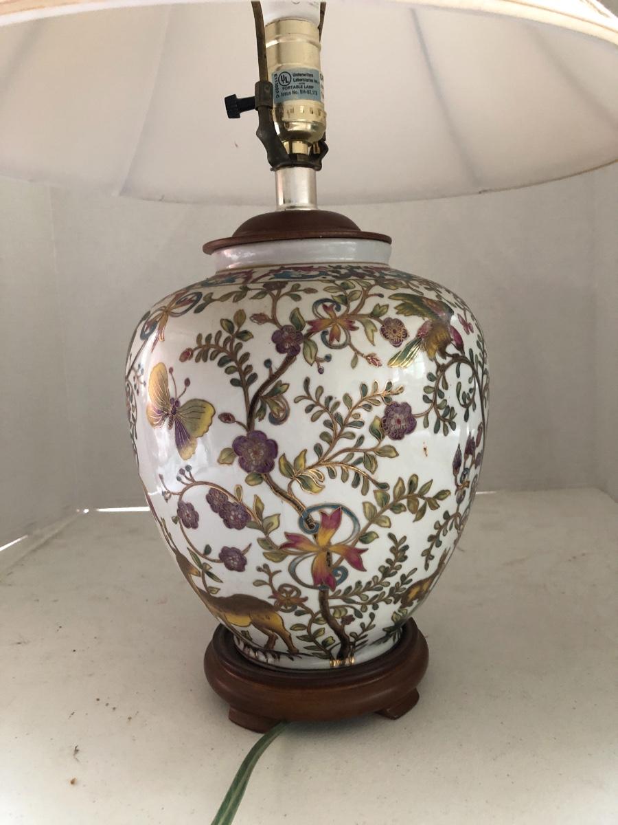 Table Lamp & Shade w/ Wooden Base