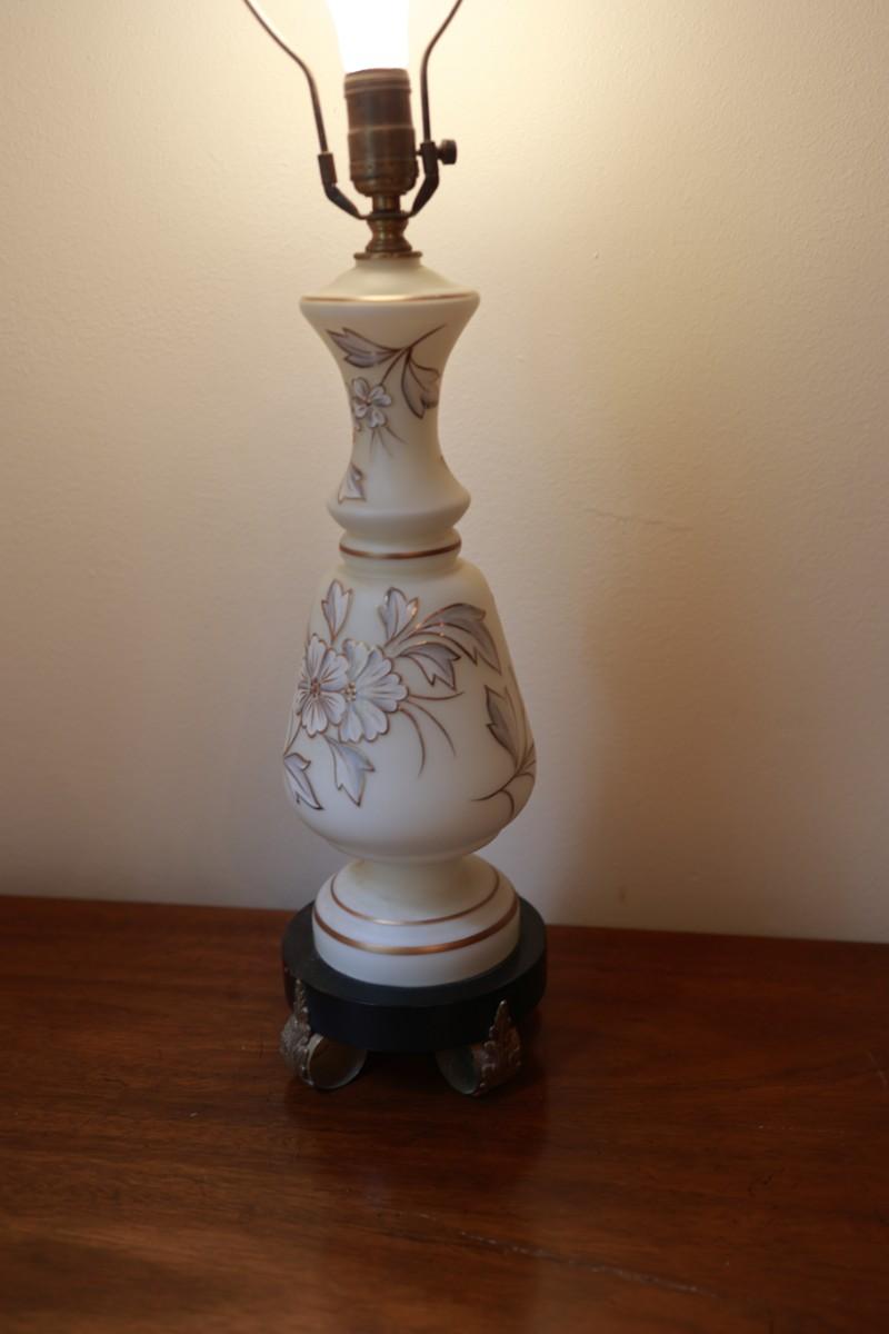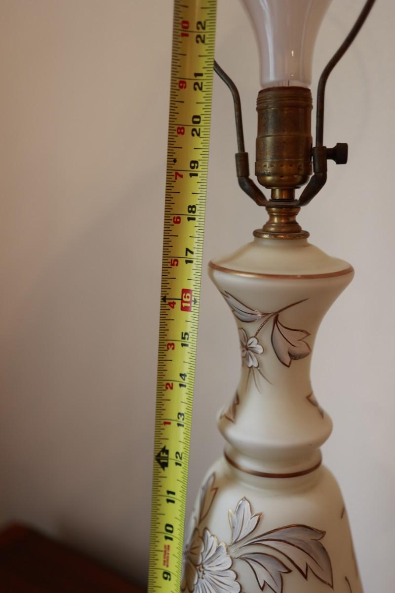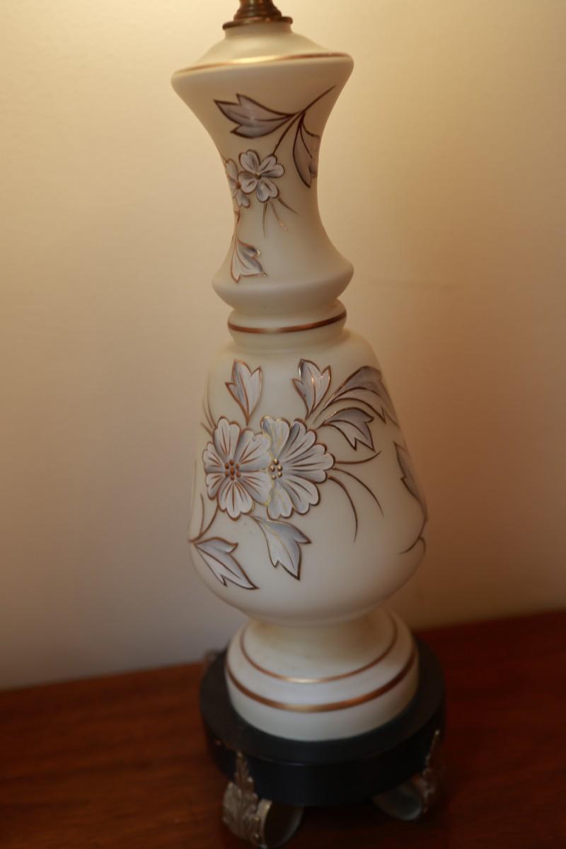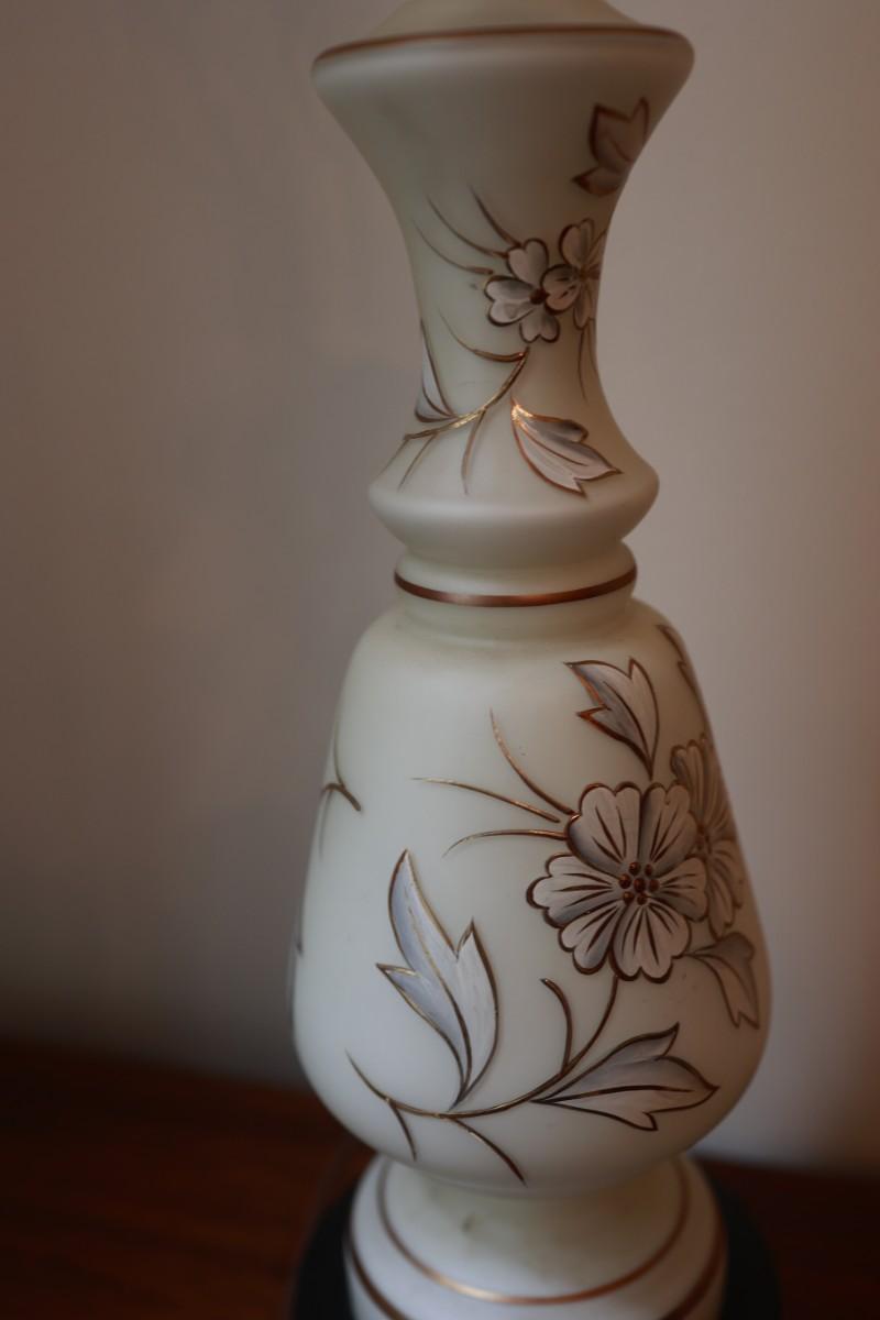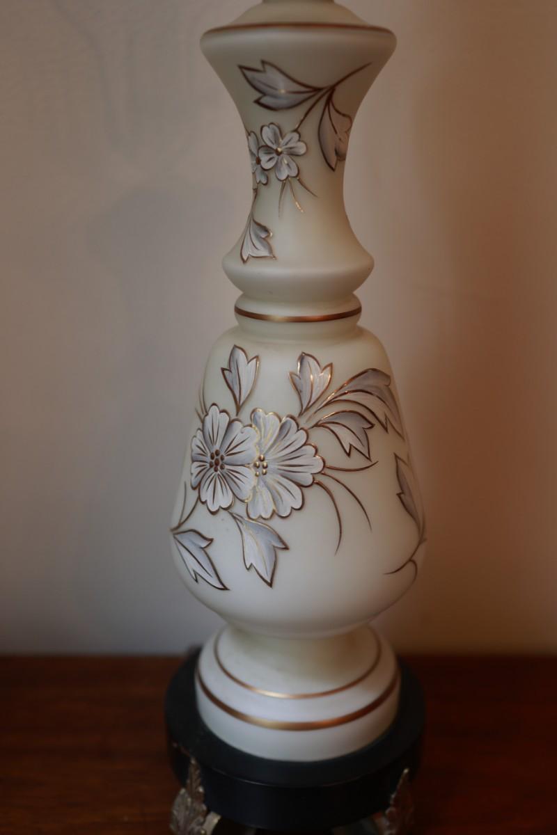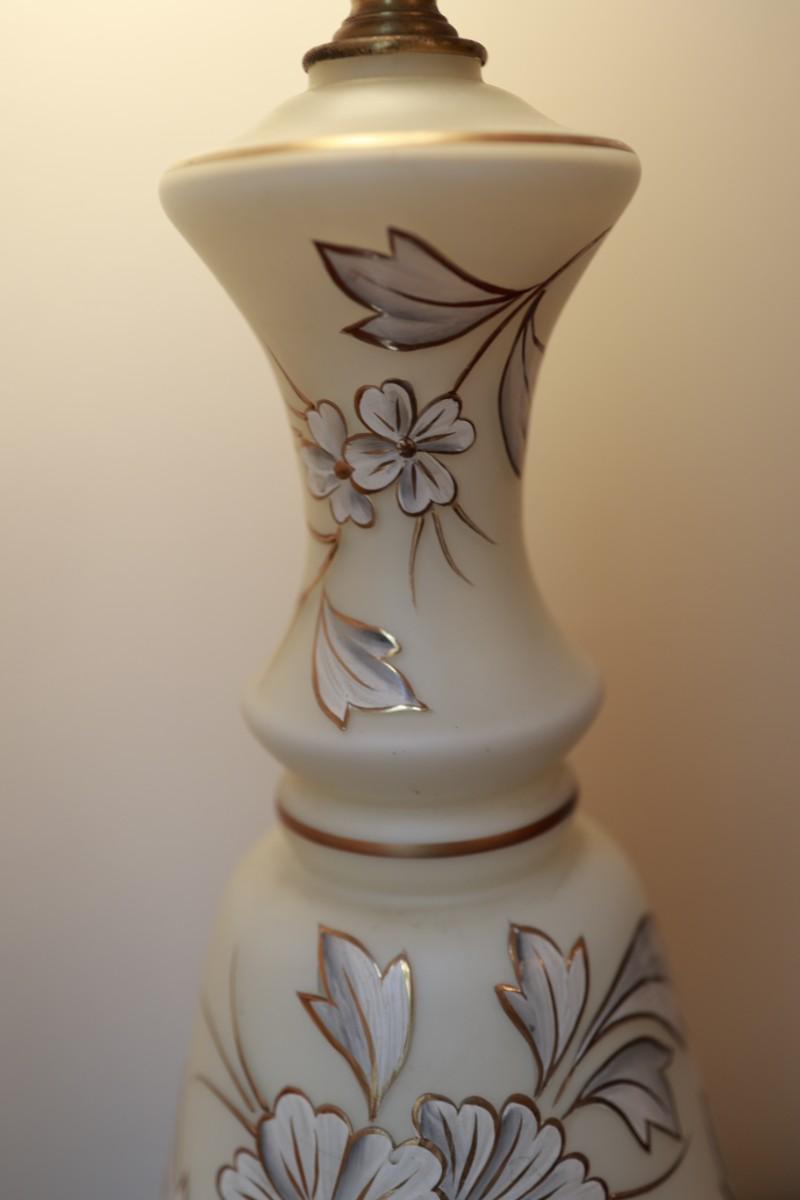 Satin Glass with Gold And White Floral Hand Painted Table Lamp