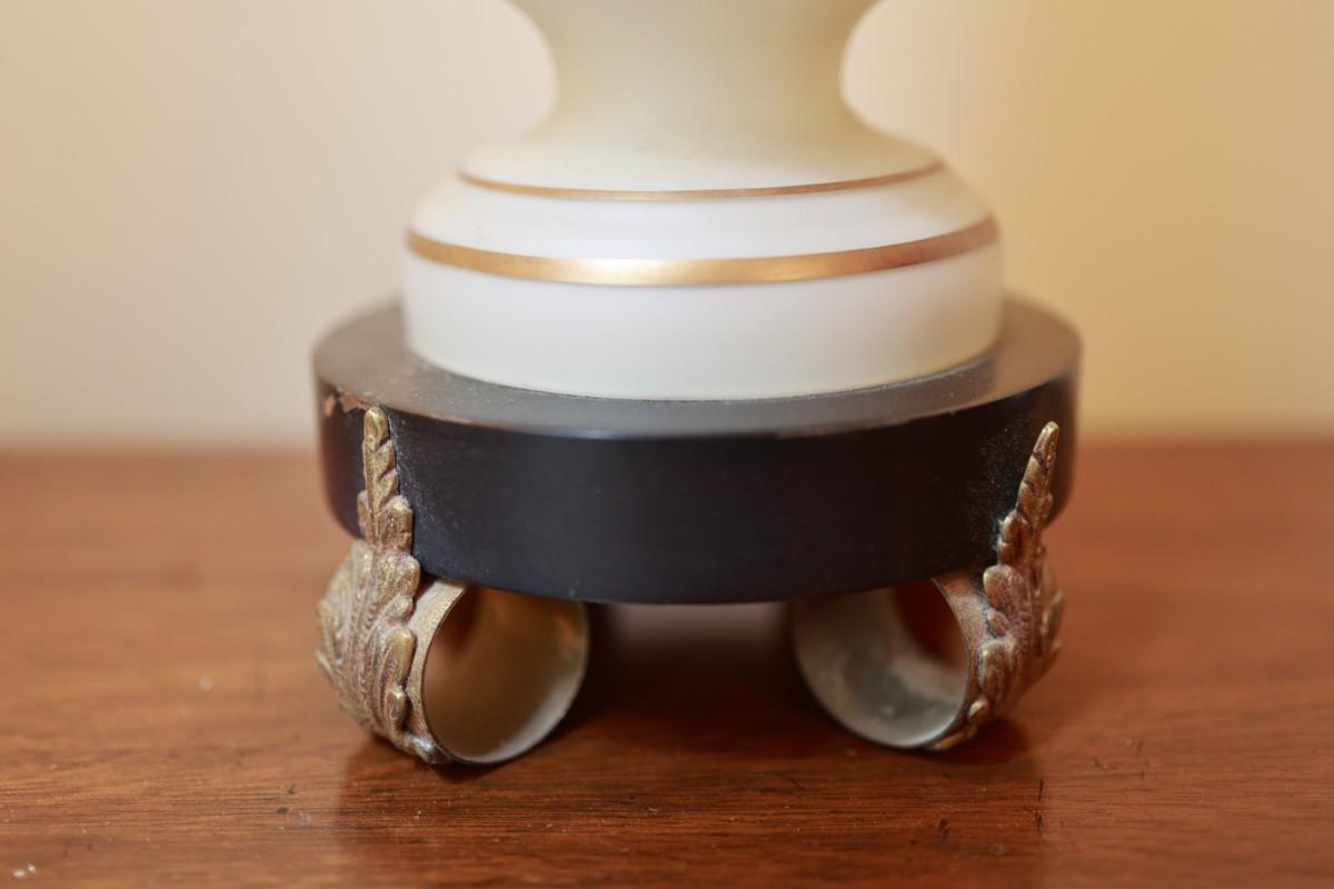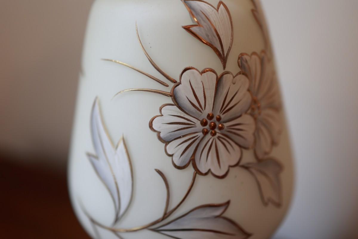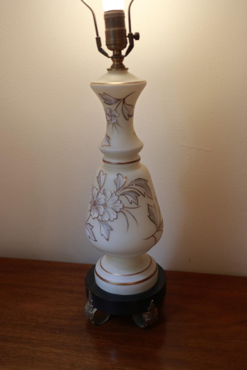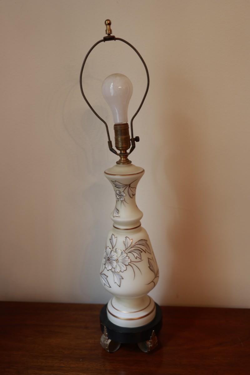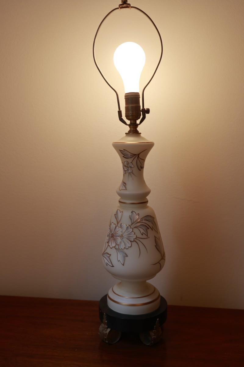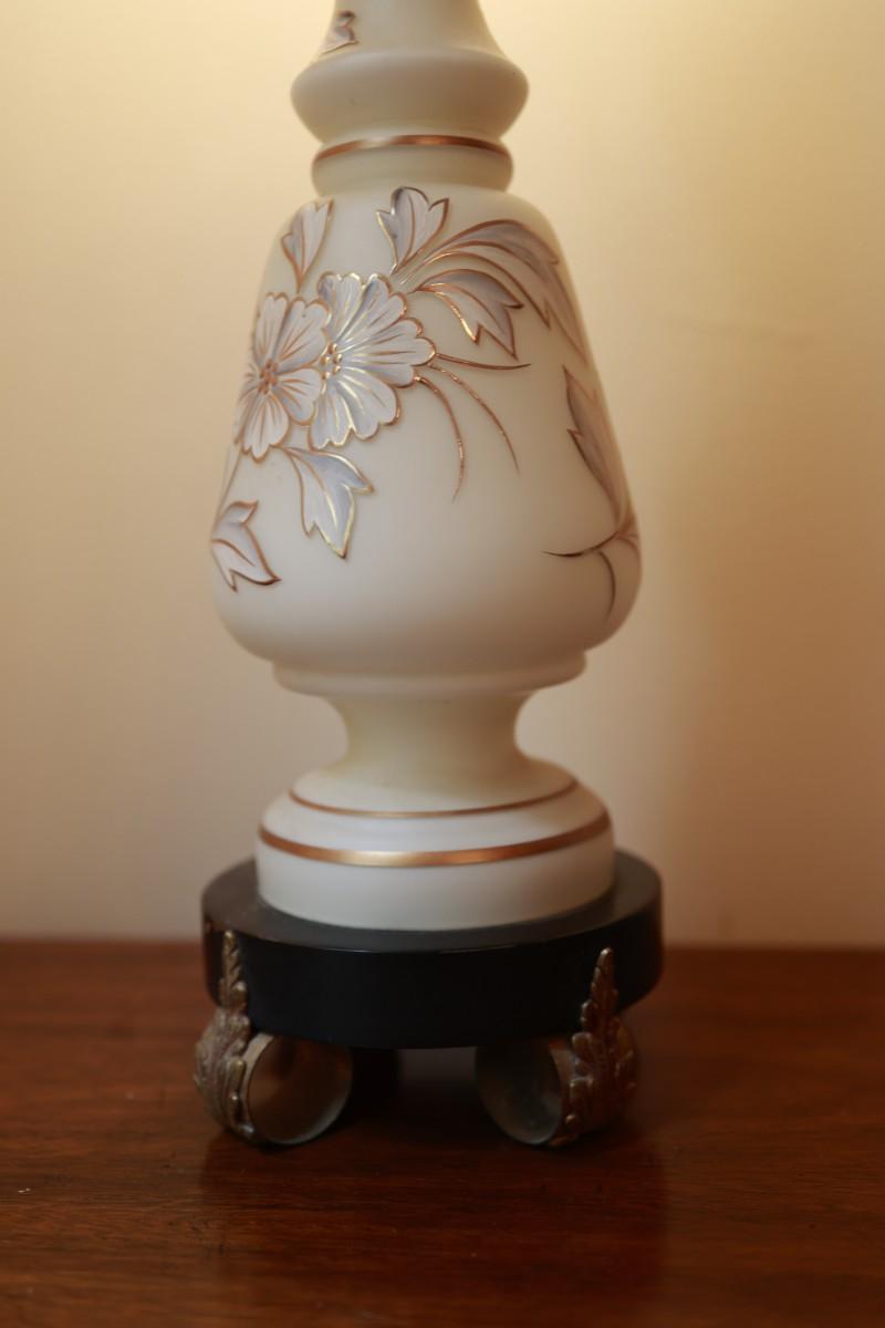Satin Glass with Gold And White Floral Hand Painted Table Lamp