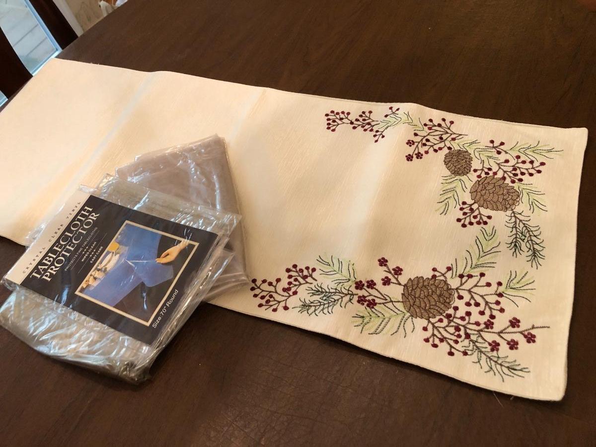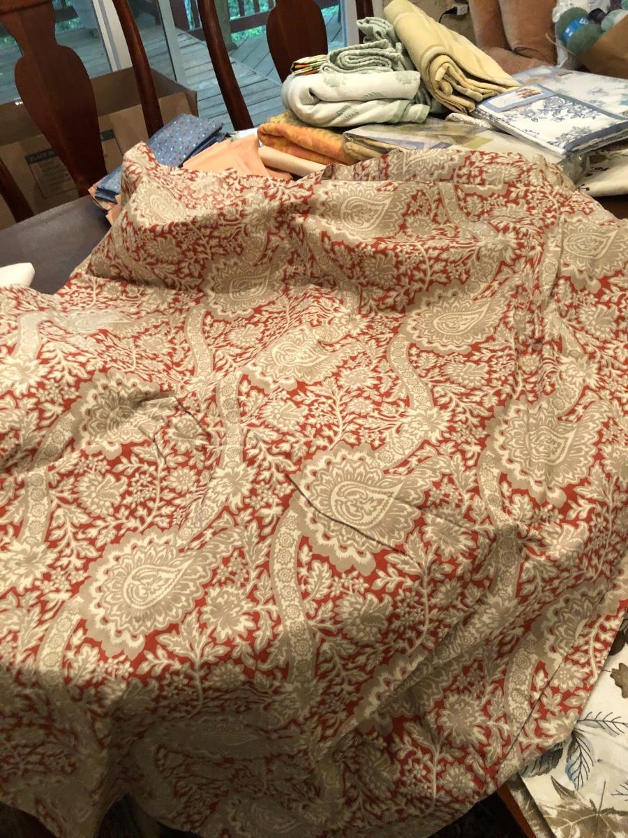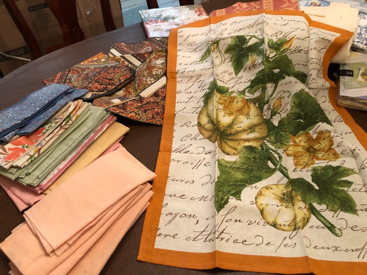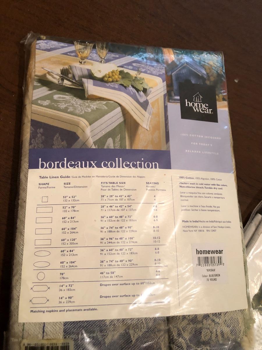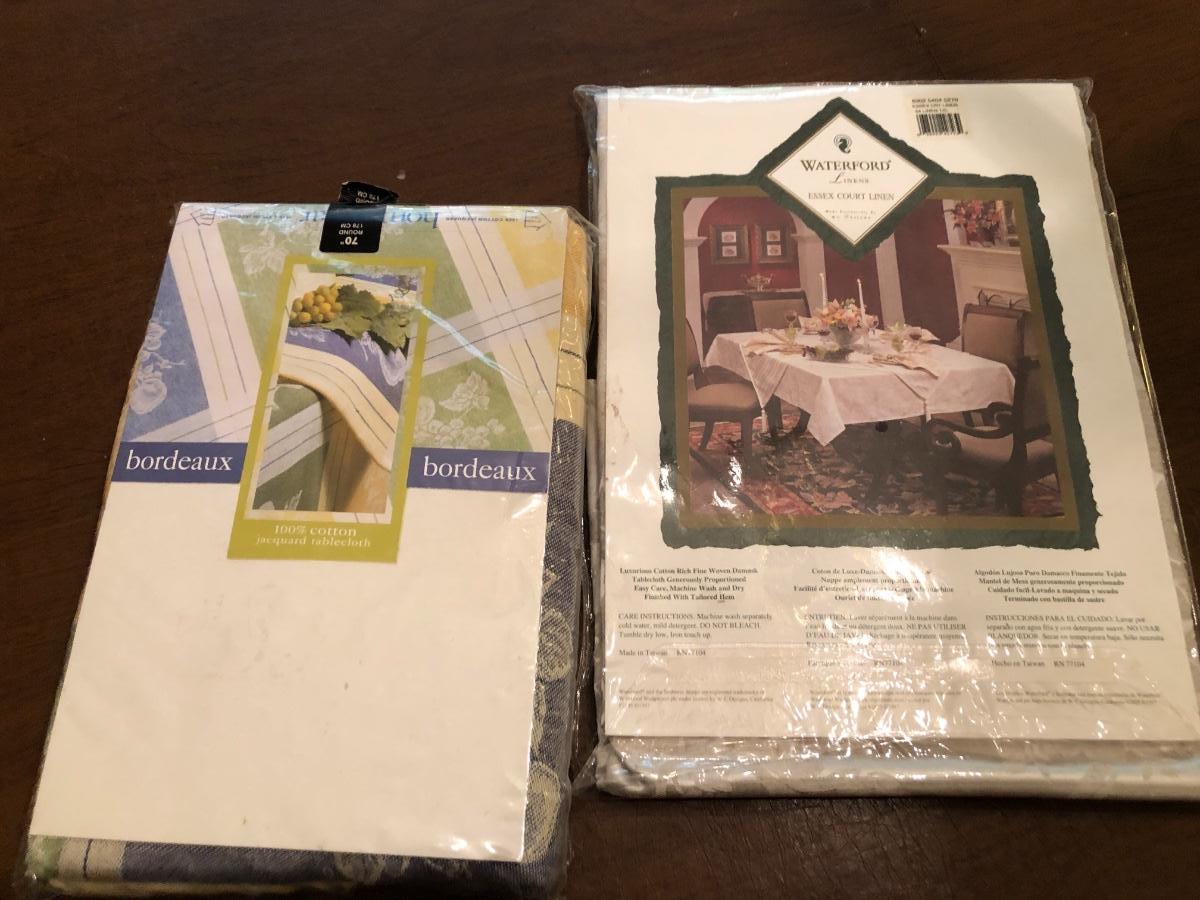 We have added many quality photos for each lot showing content, condition, & dimensions. Feel free to e-mail or text any questions. All items are sold as is, as found in the estate. Please see all photos for content, measurements and condition. Loads of quality new table cloths and more!