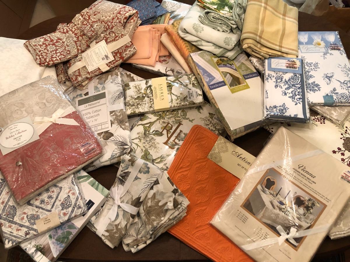 ***HUGE LOT of Table Cloths & More- Many New in Pkg. Williams-Sonoma, Ralph Lauren & More -Lot 299