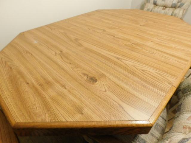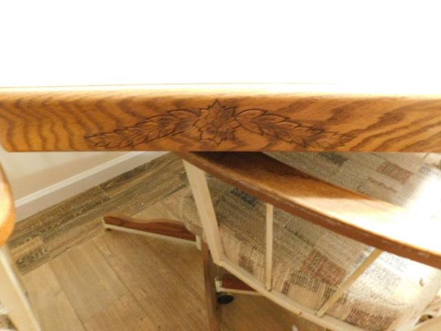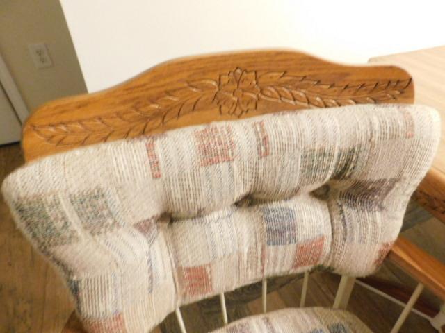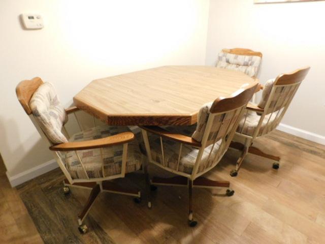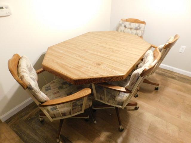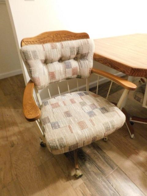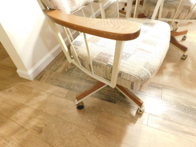Table Set with Four Wood and Wrought Metal Rolling Chairs table has leaf insert as shown. No stairs to the parking area