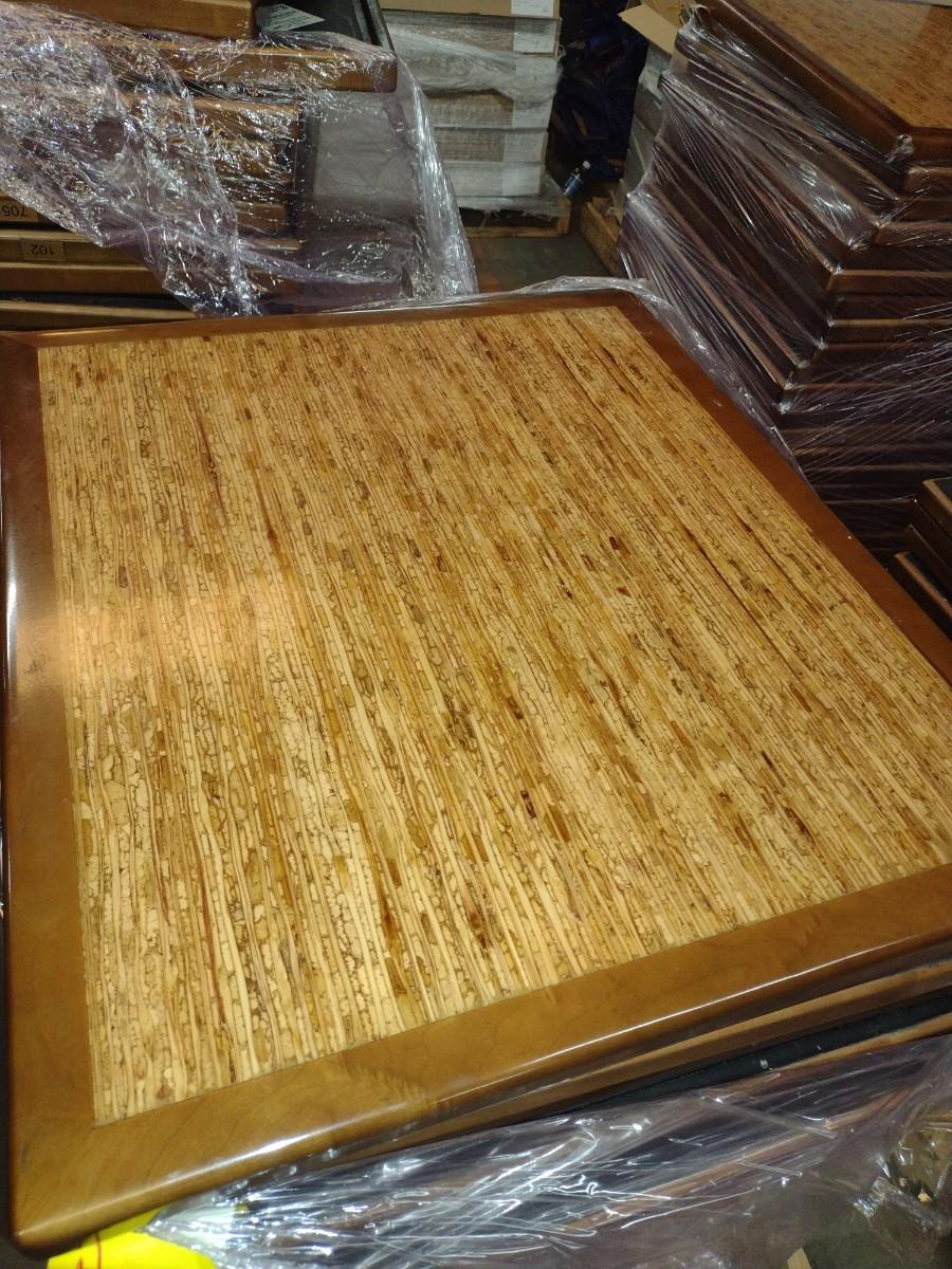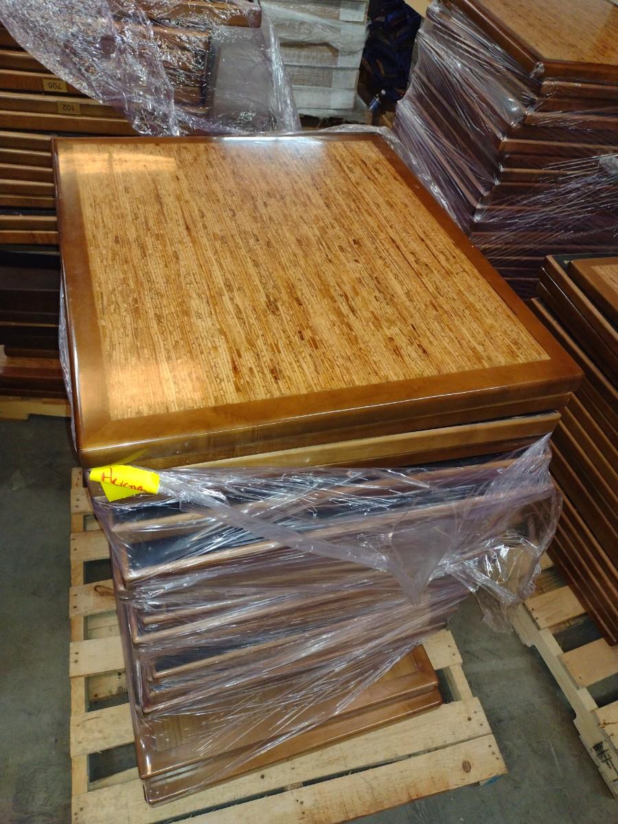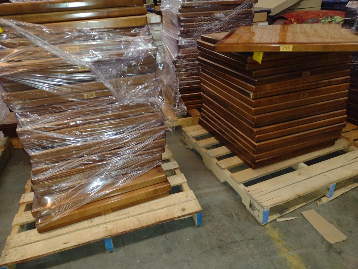 Solid Wood Tabletops Various Shades of Finish Choice A approximately 40 pcs Forklift driver available Shipping option via freight or local mover is Buyer's responsibility and expense. Buyer must have all shipping scheduled within the stated dates and times of pickup. Recommended local movers are Beaty Bros. Moving 828-201-2982 and Carolina Pack n Go 828-489-9773